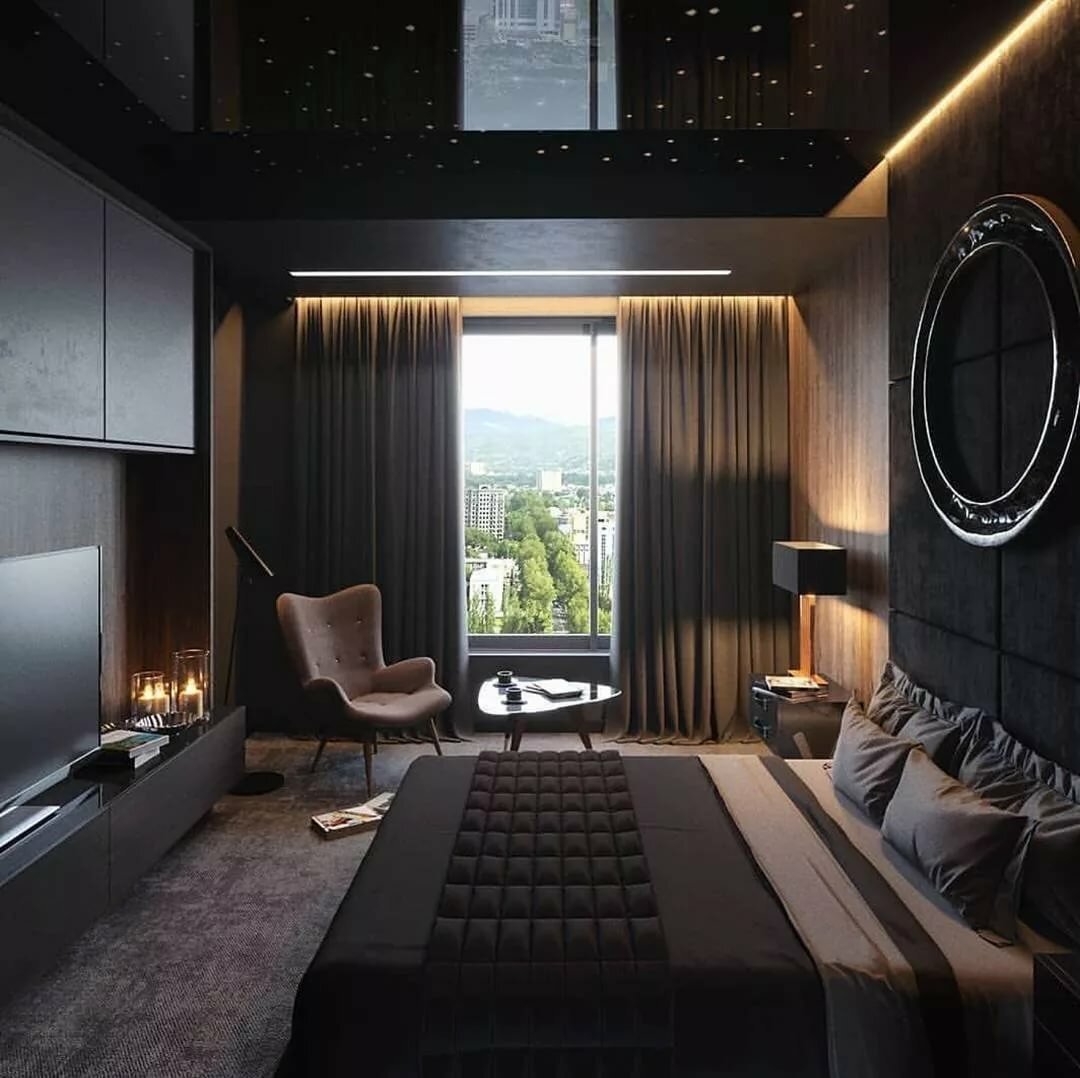 Спальня в темных тонах