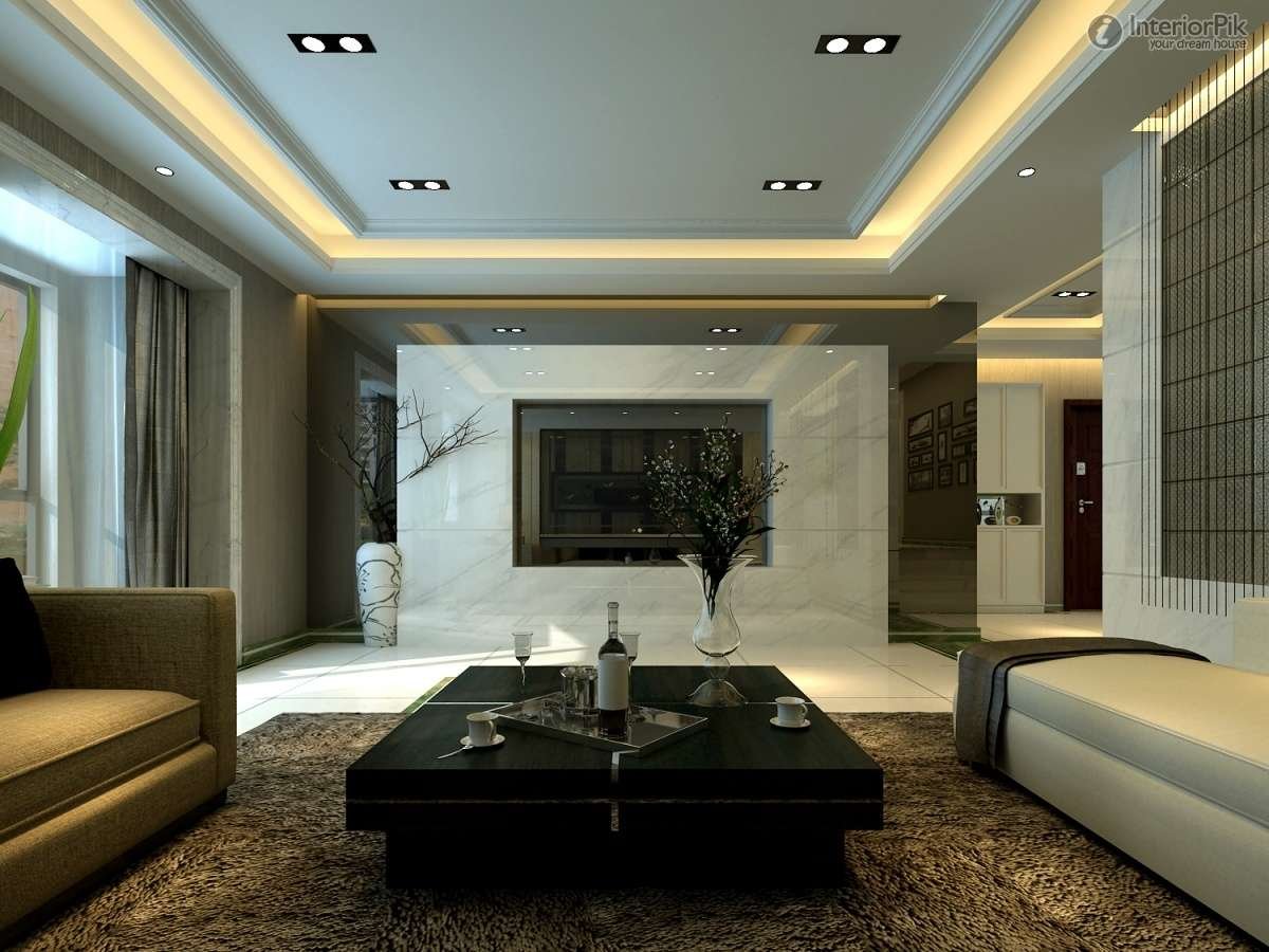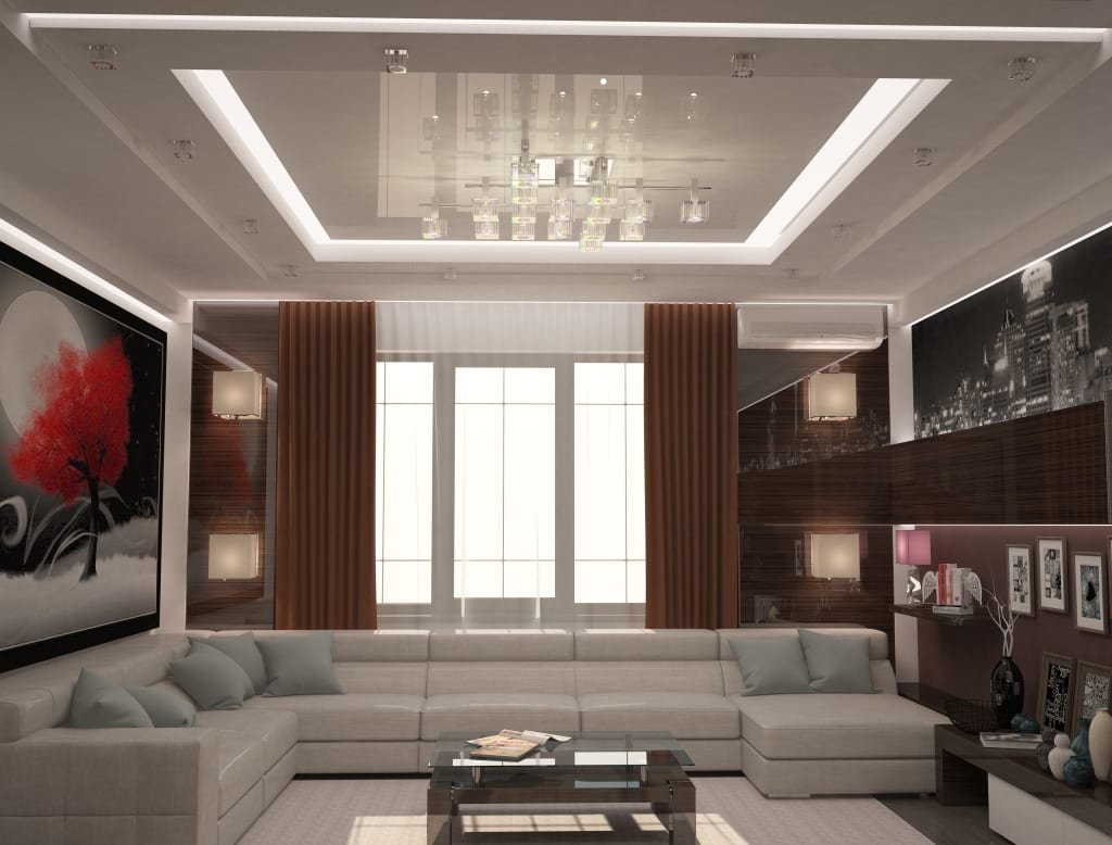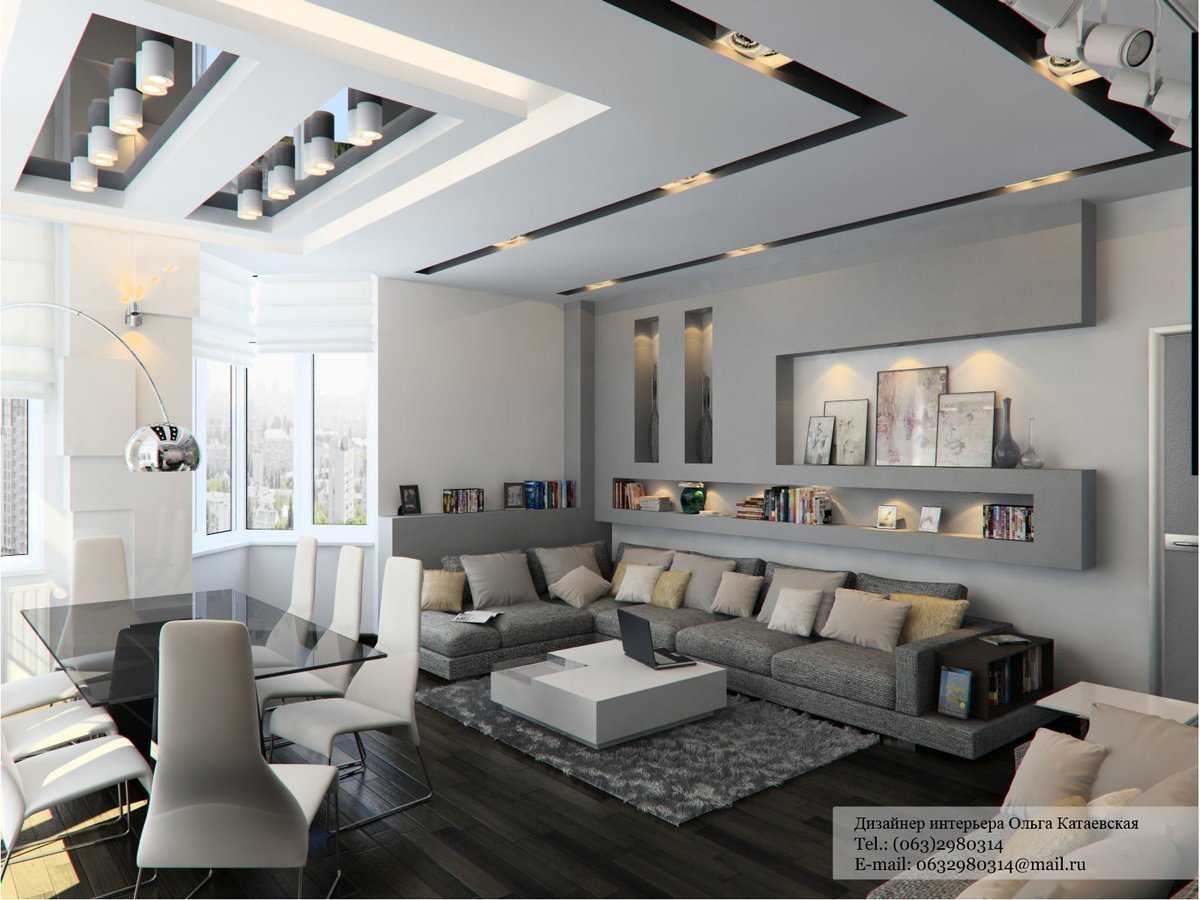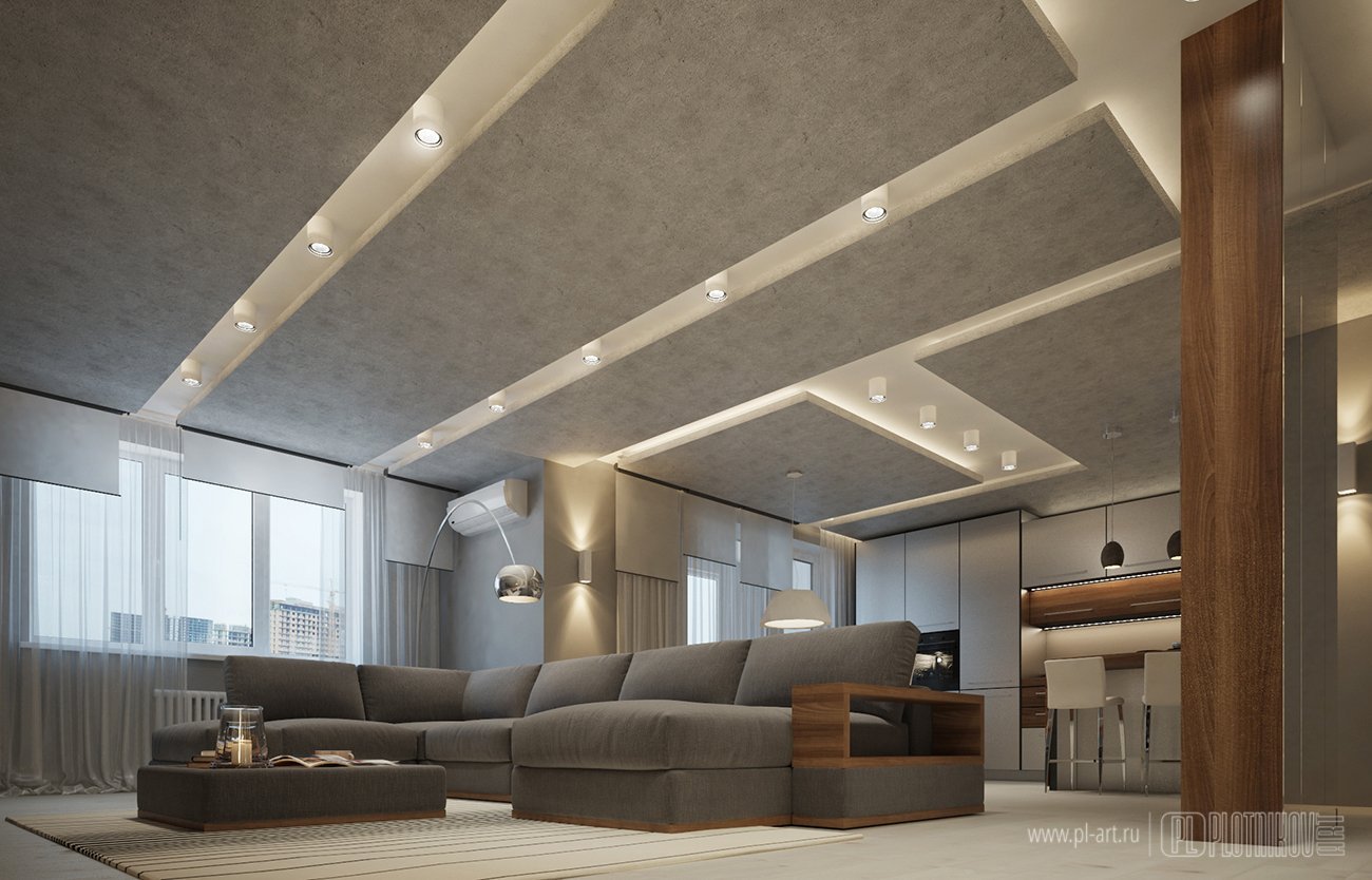 Потолок в гостиной в современном стиле