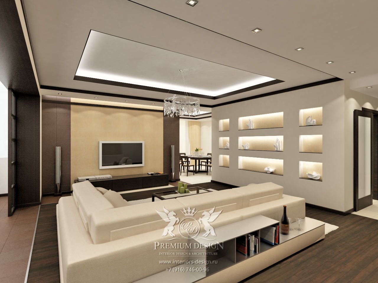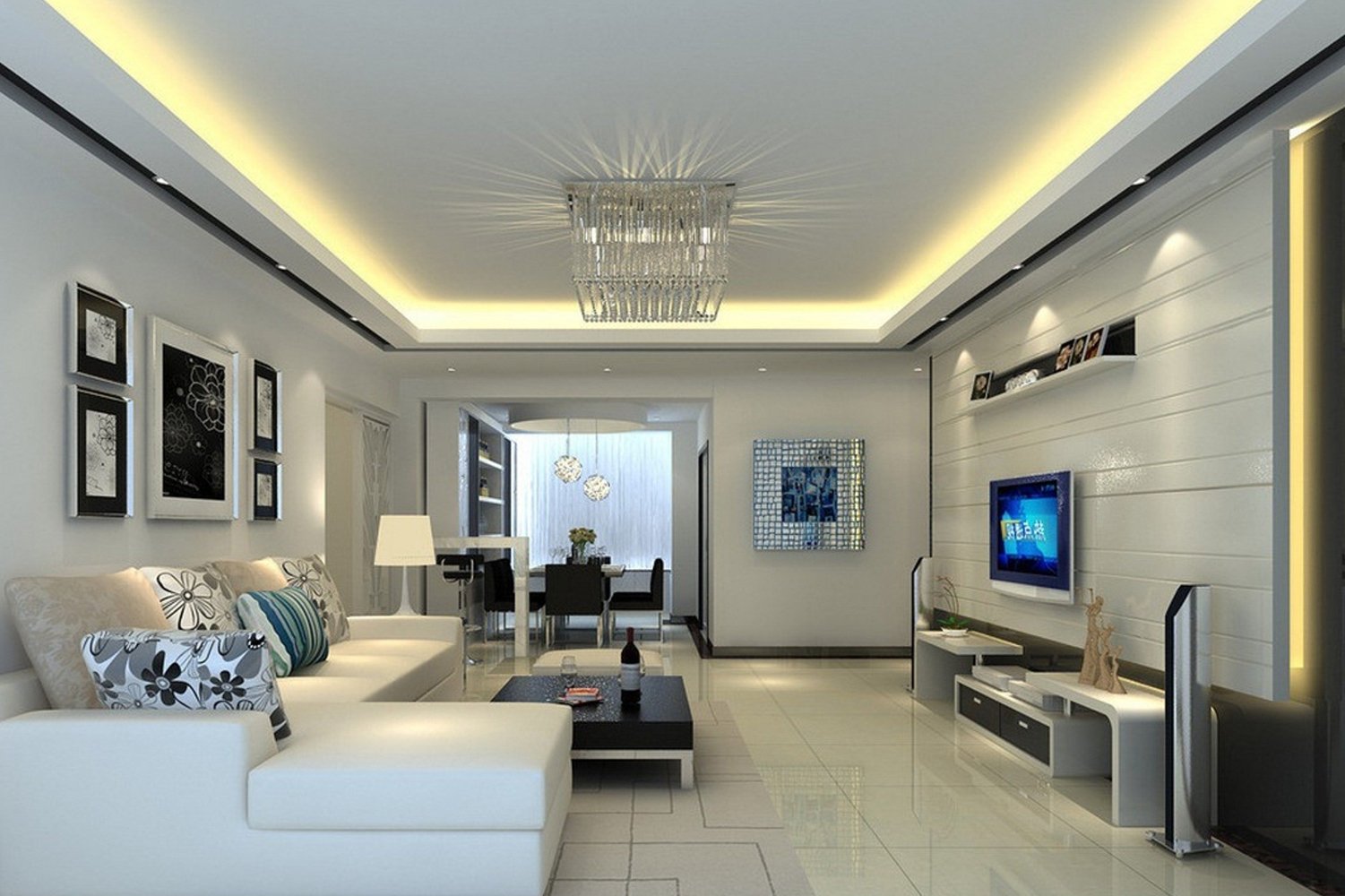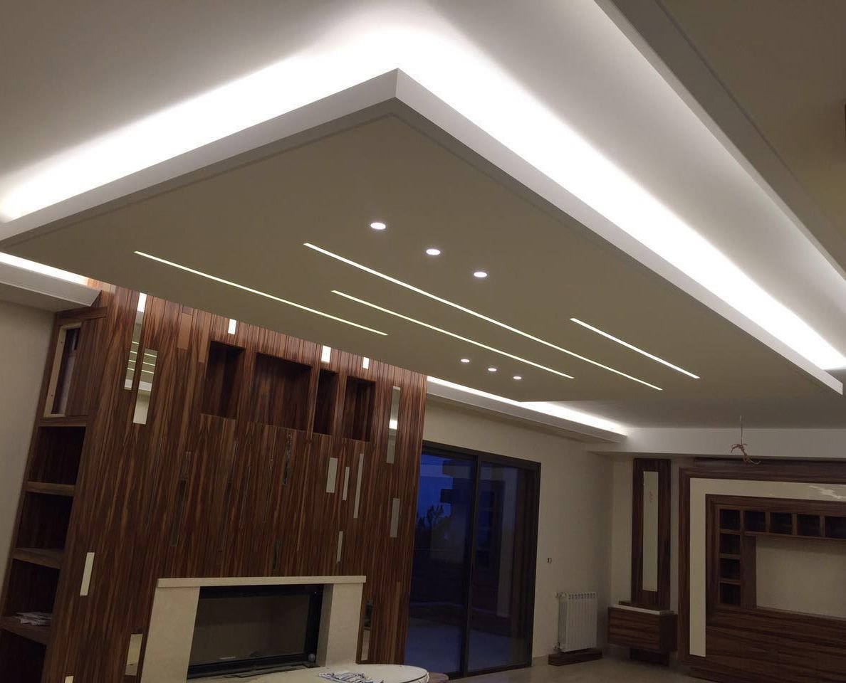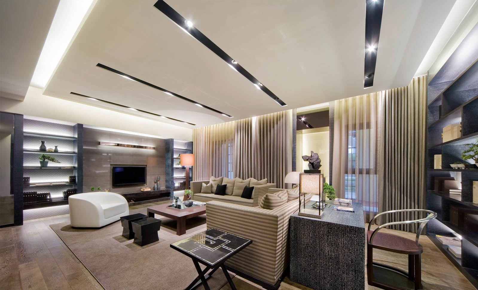 Потолок в гостиной в современном стиле
