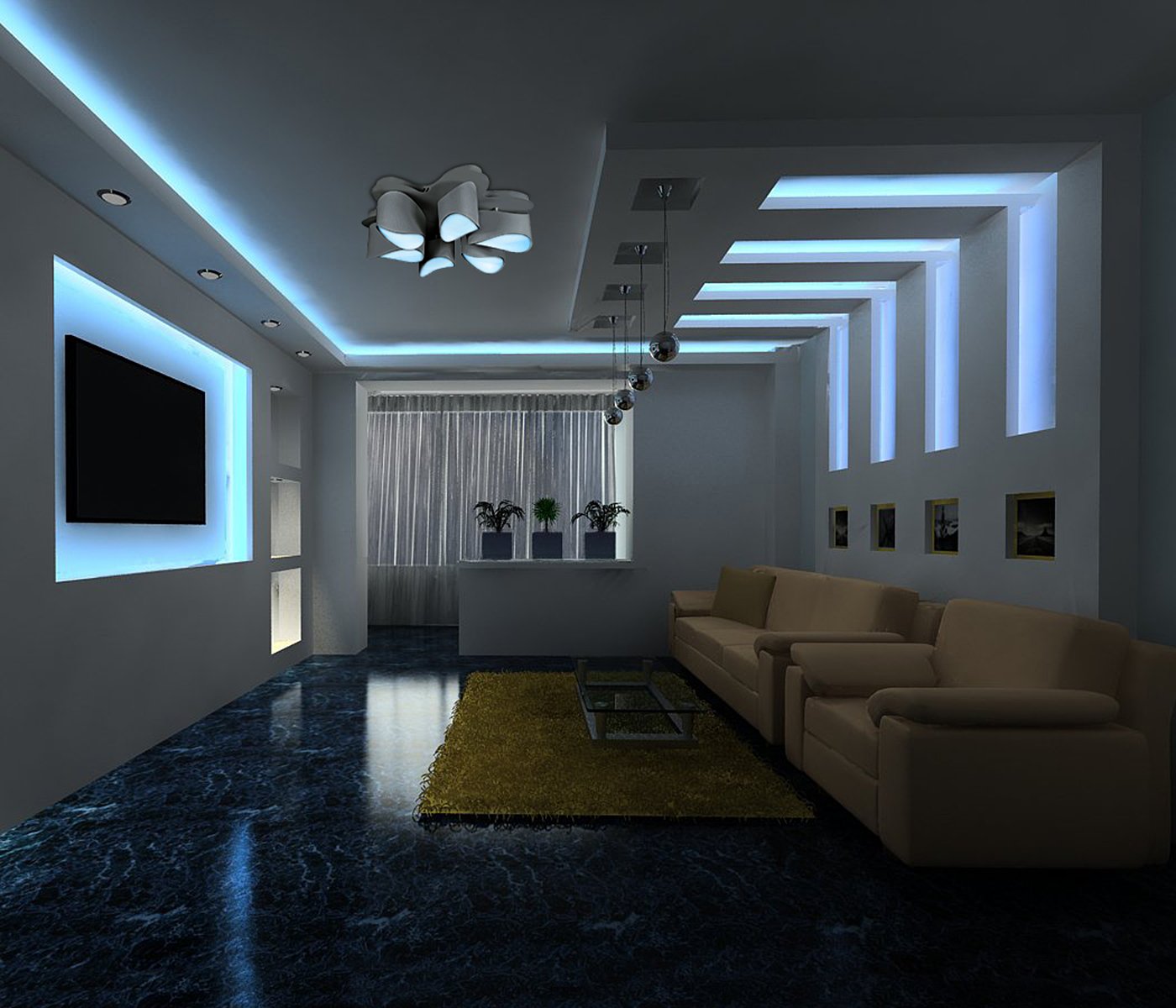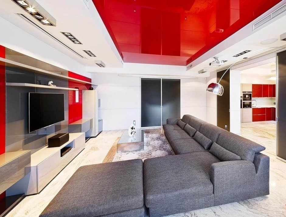 Потолок Хай тек в гостиной