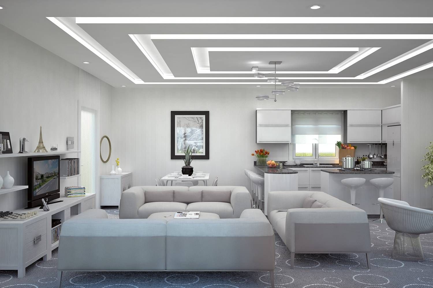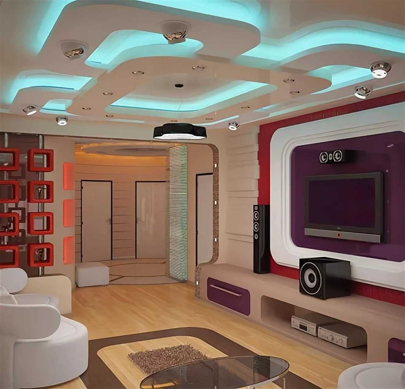 Гостиная потолок хайтек