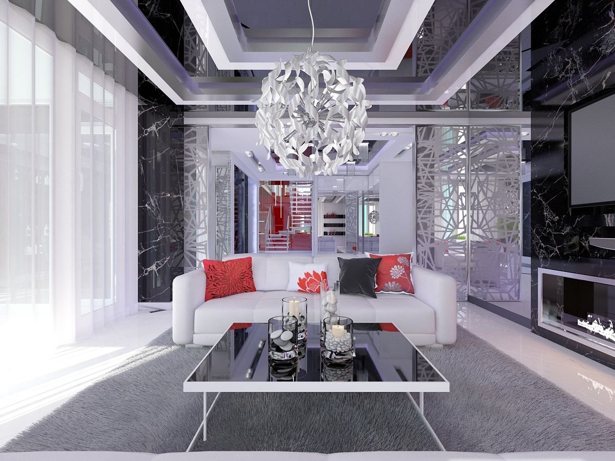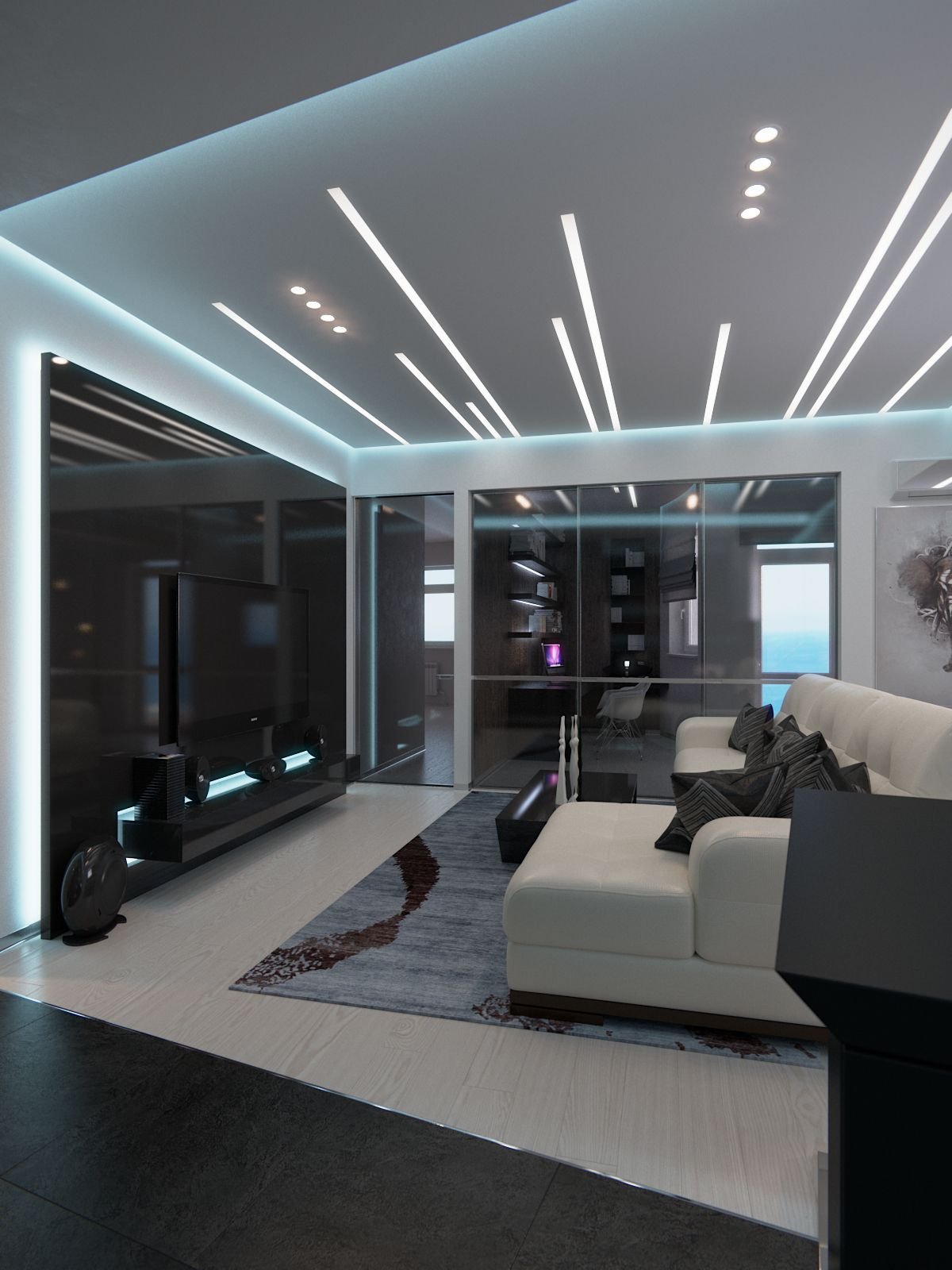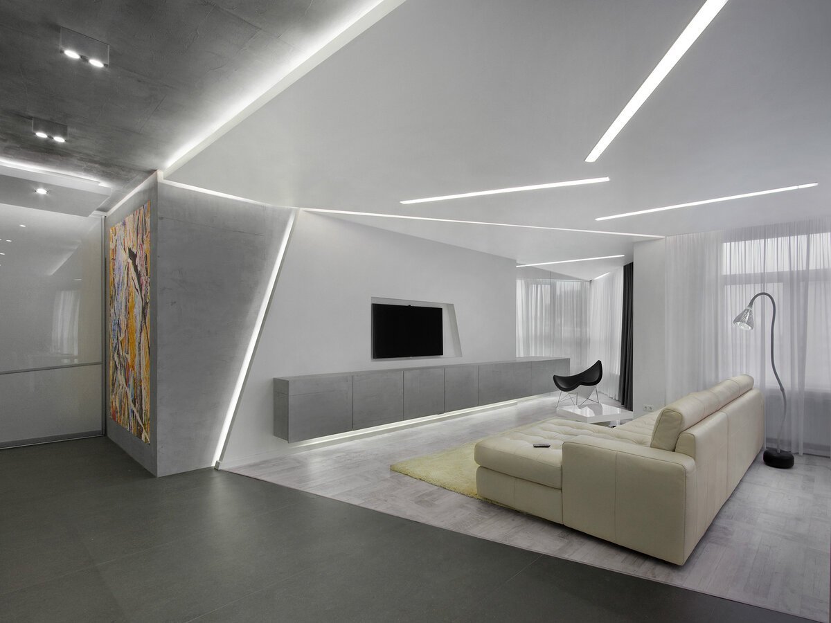 Потолки в стиле хайтек для гостиной