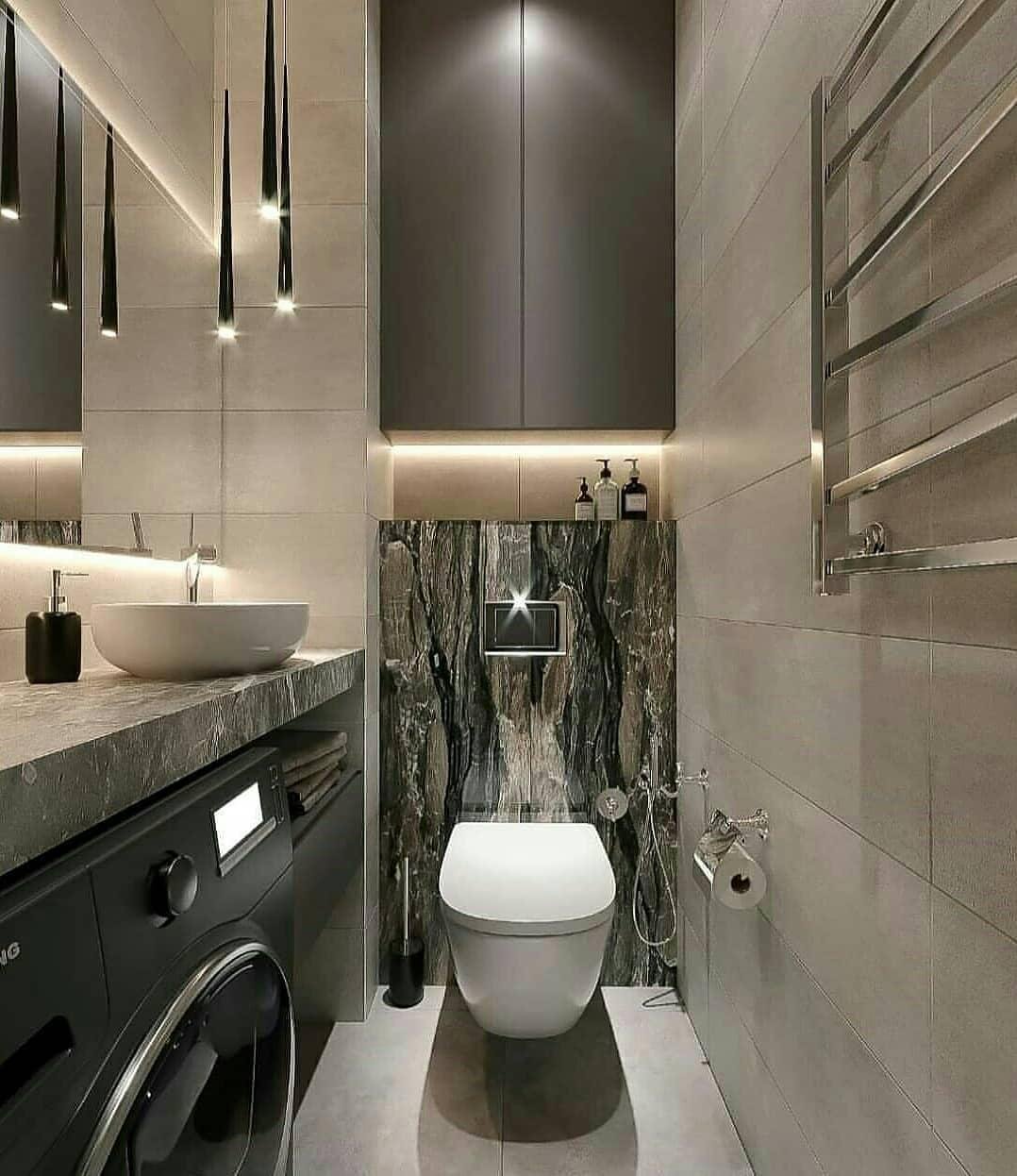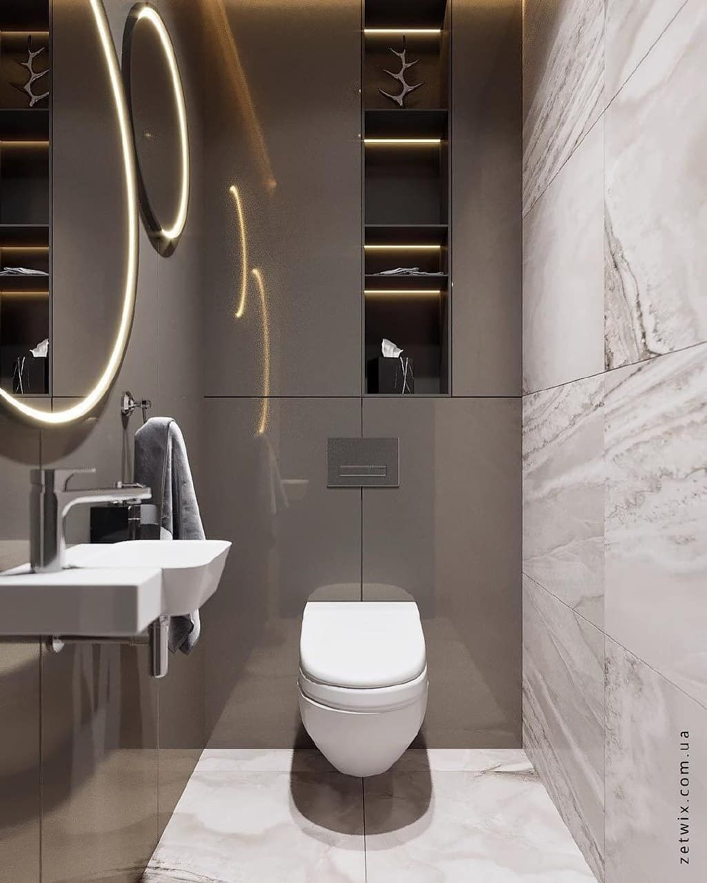 Дизайн туалета и ванной комнаты по отдельности в одном стиле