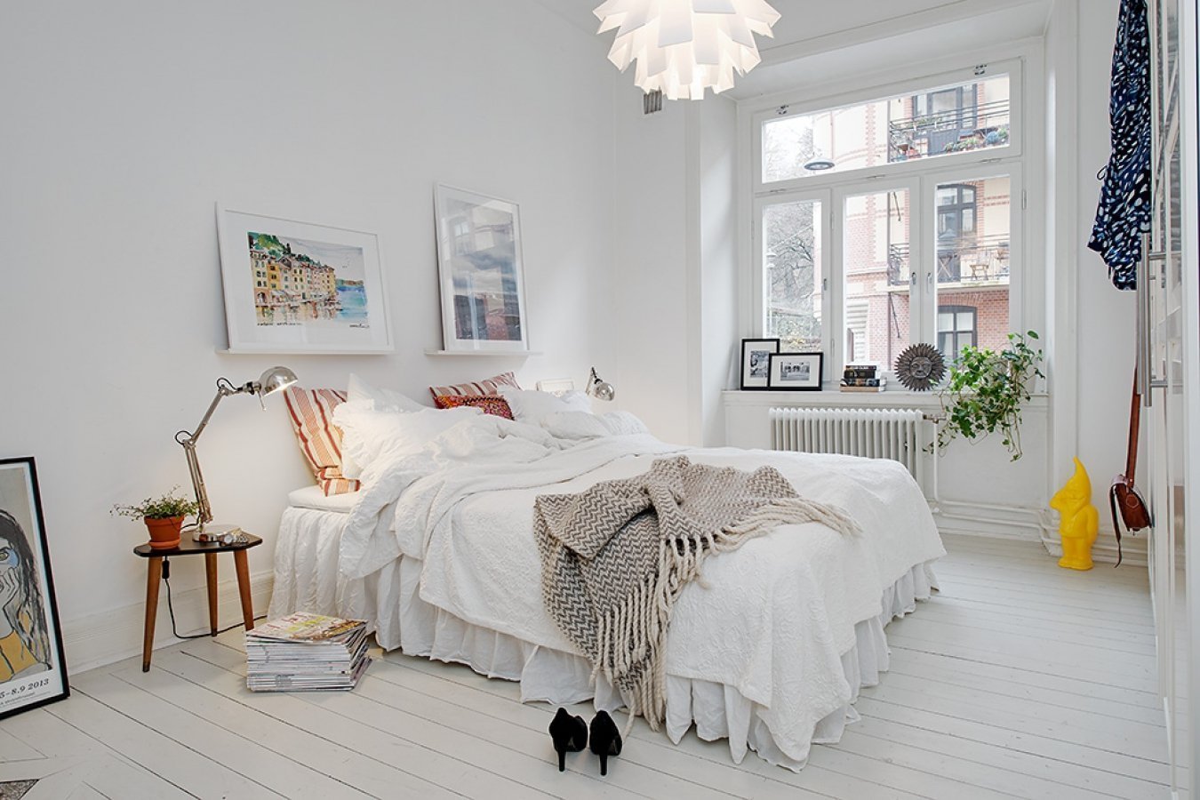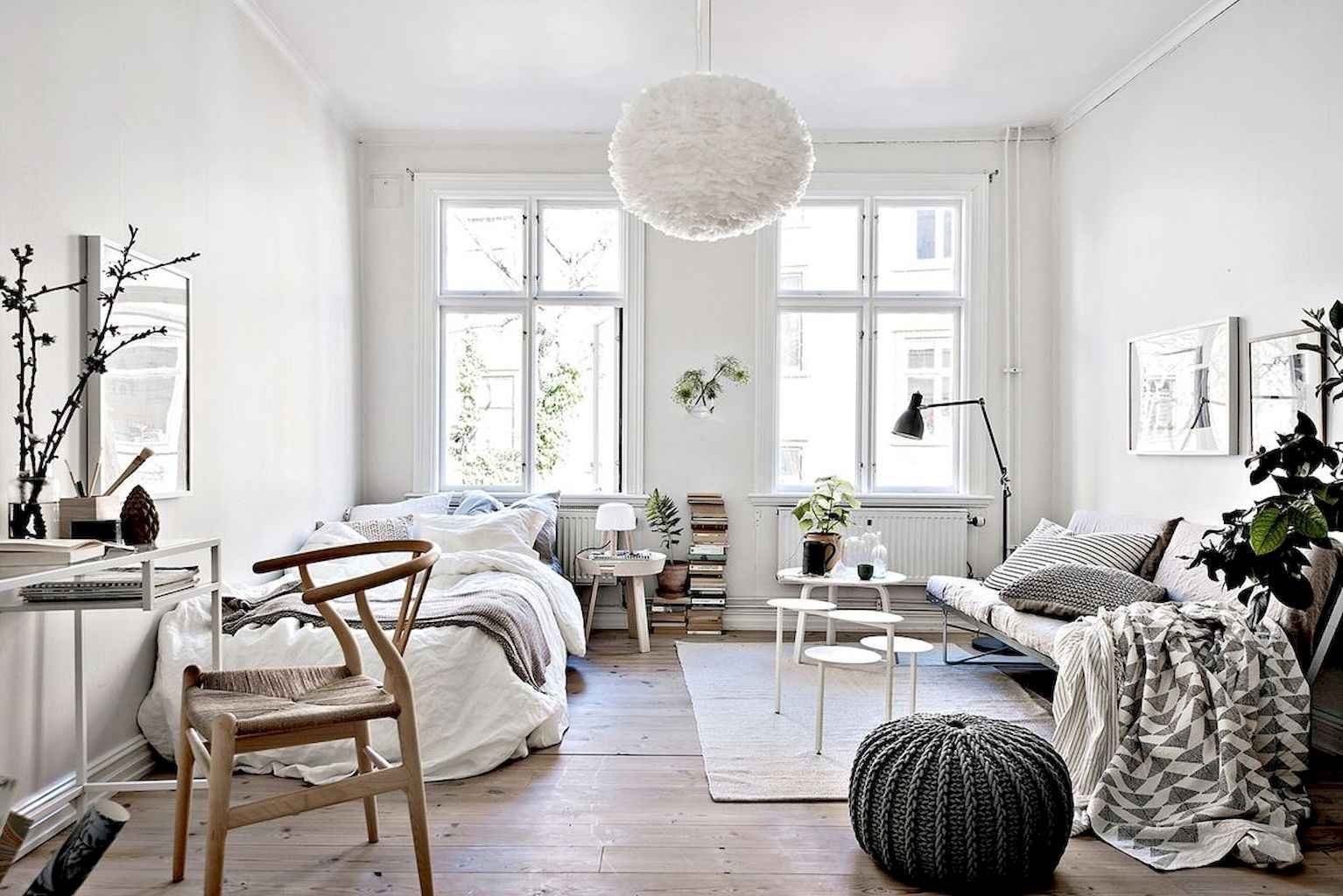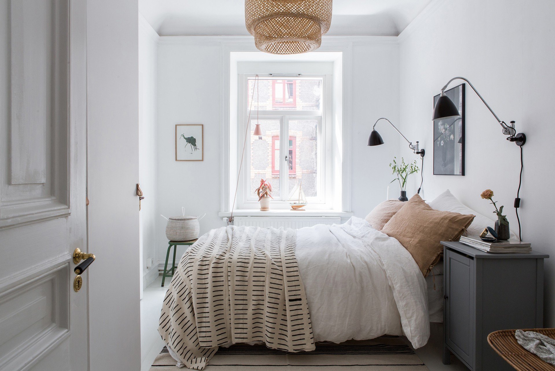 Маленькая спальня в скандинавском стиле с растительностью