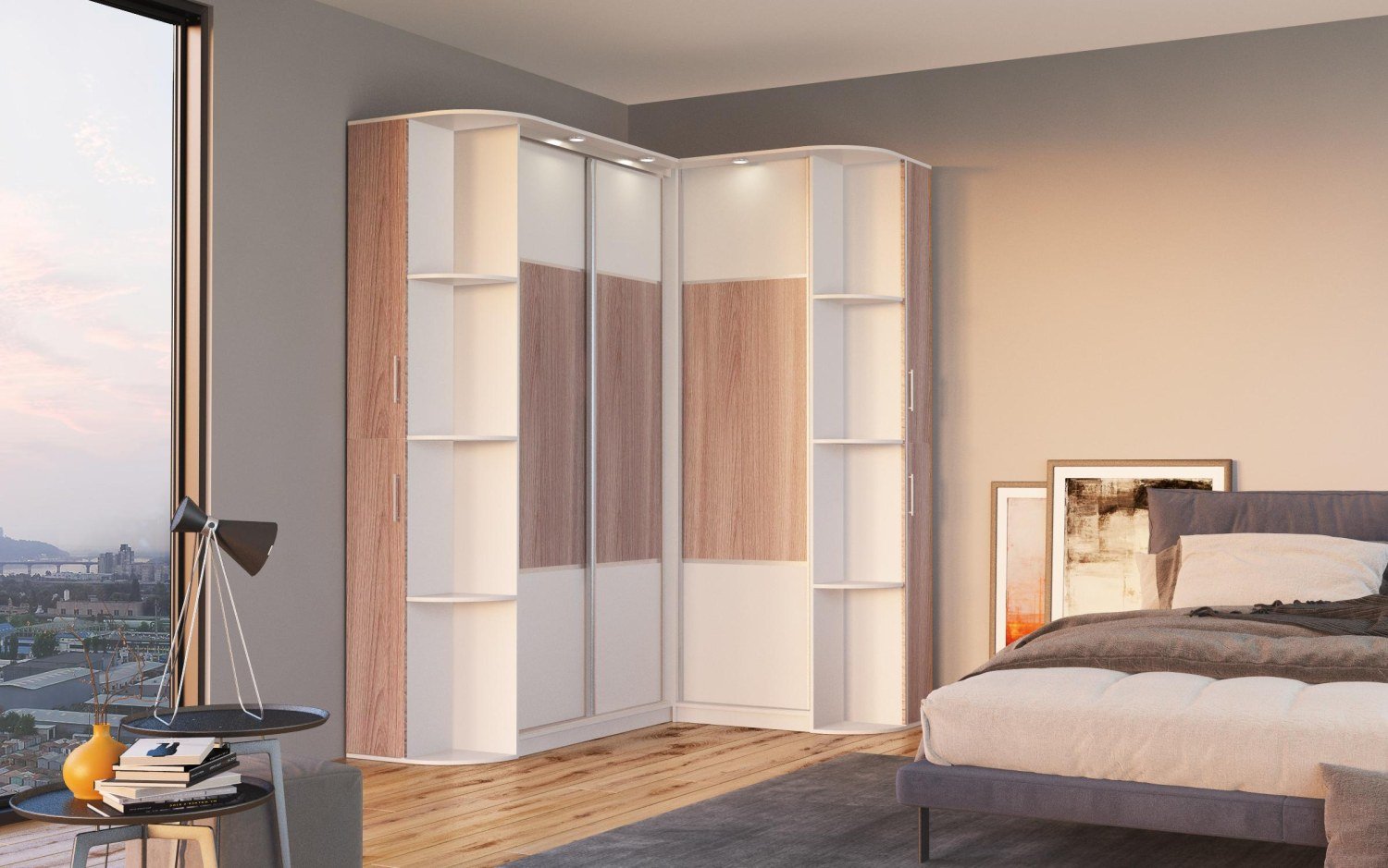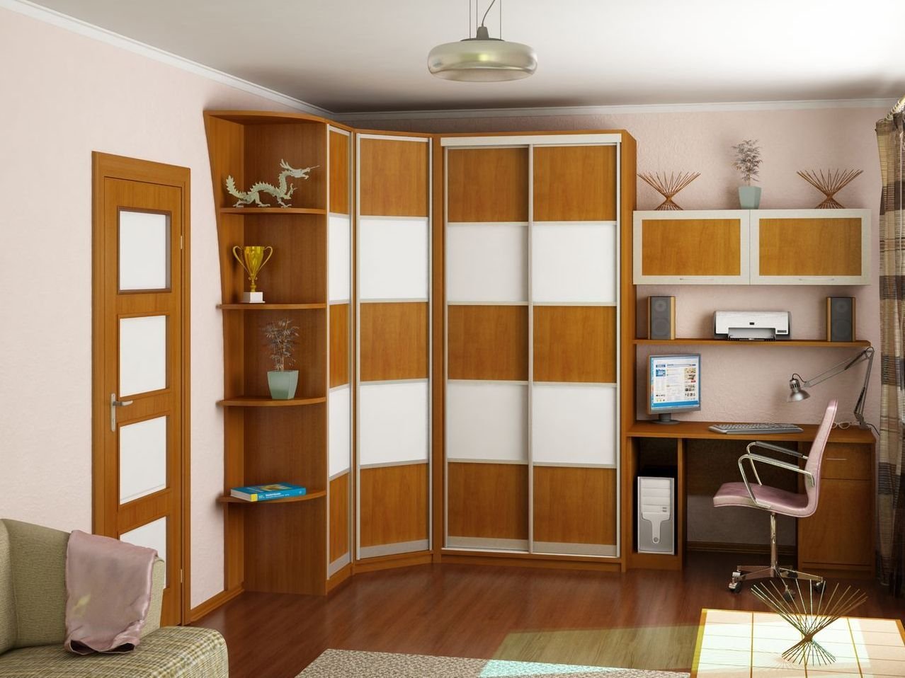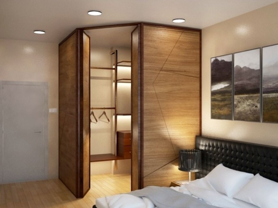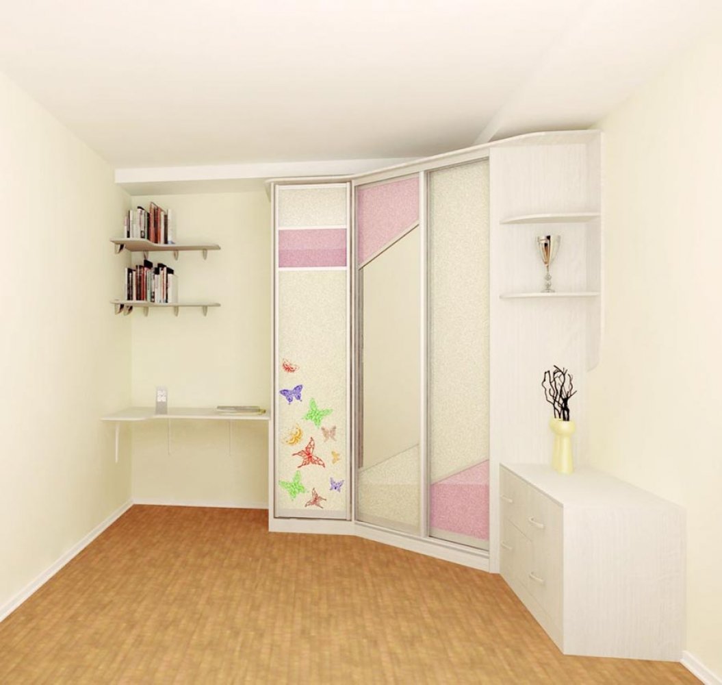 Угловой шкаф купе в маленькую комнату (68 фото)