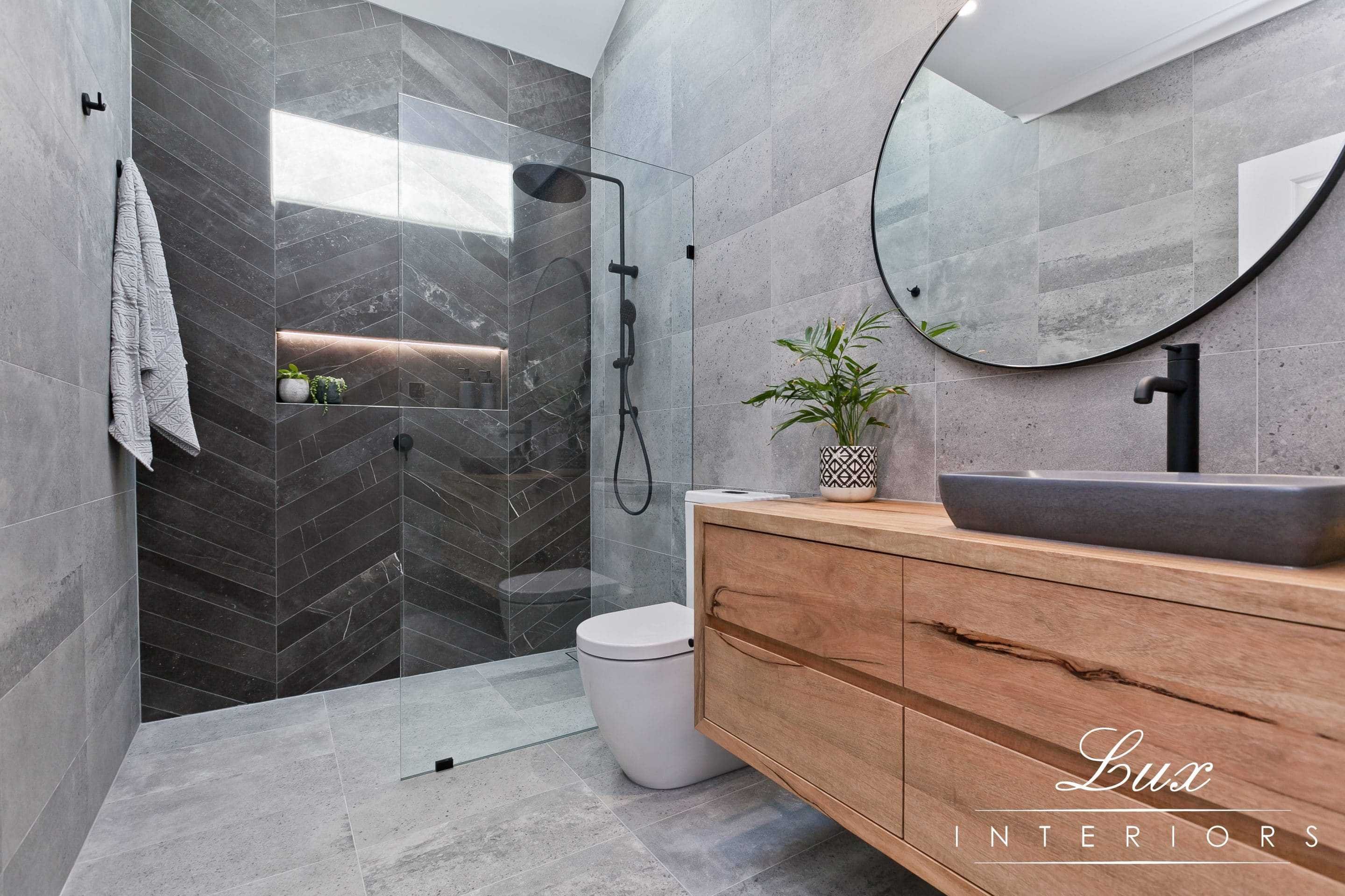 Ванная с черными панелями