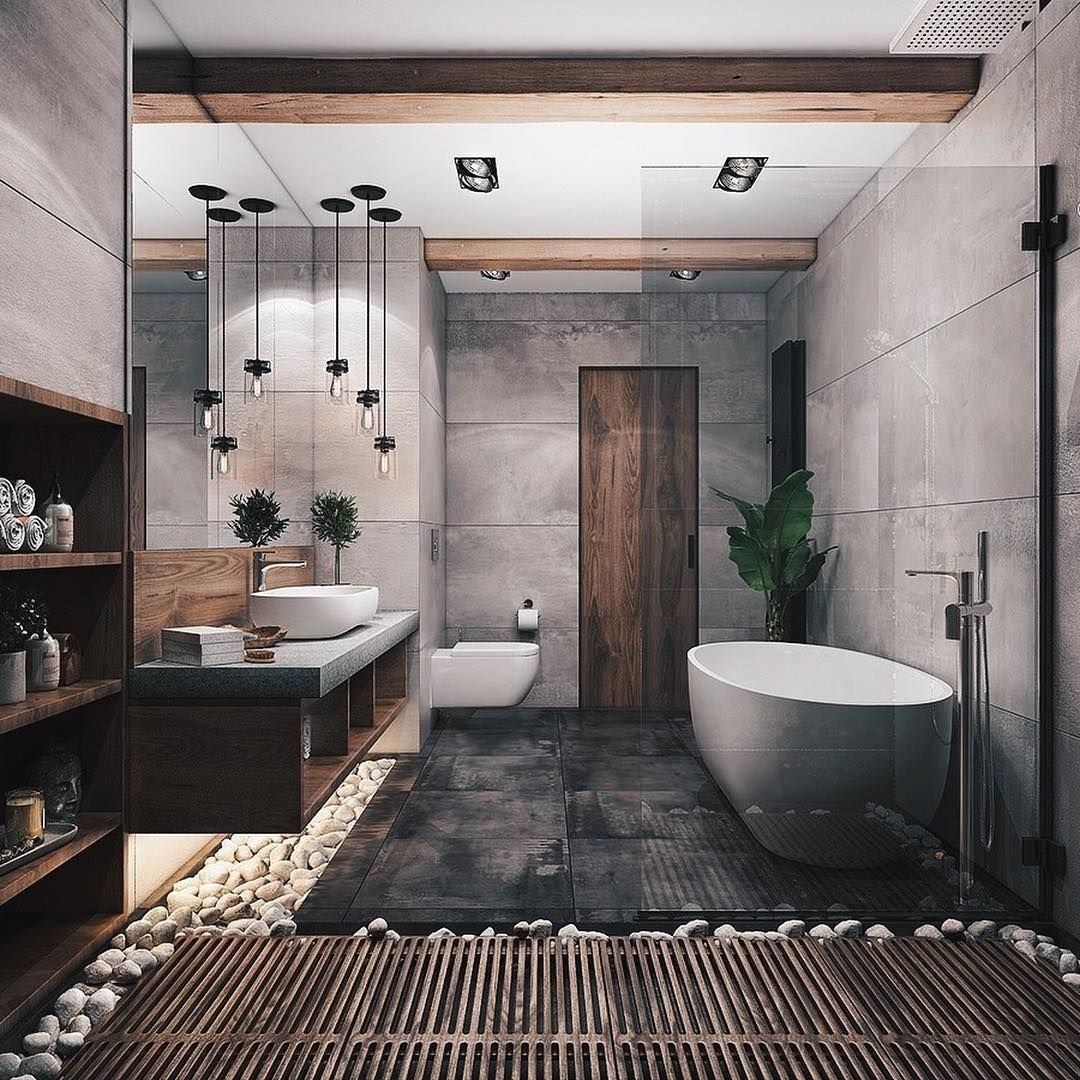 Ванна лофт бетон дерево