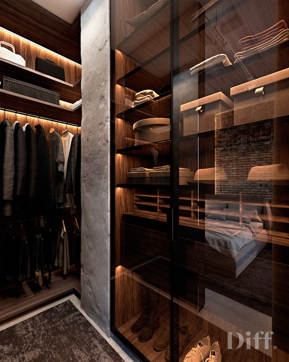 Гардеробные в стиле лофт