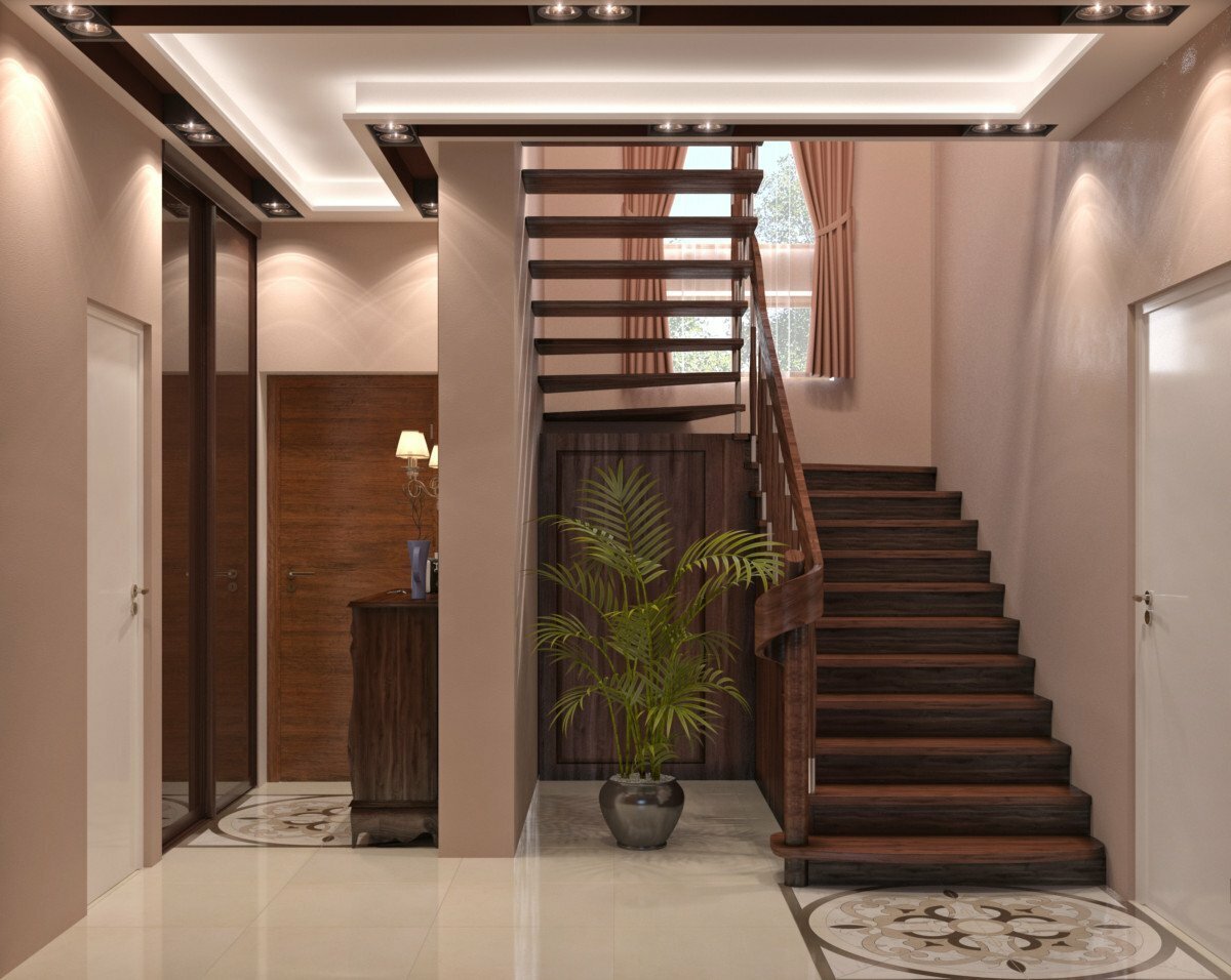 Прихожая с лестницей в частном доме
