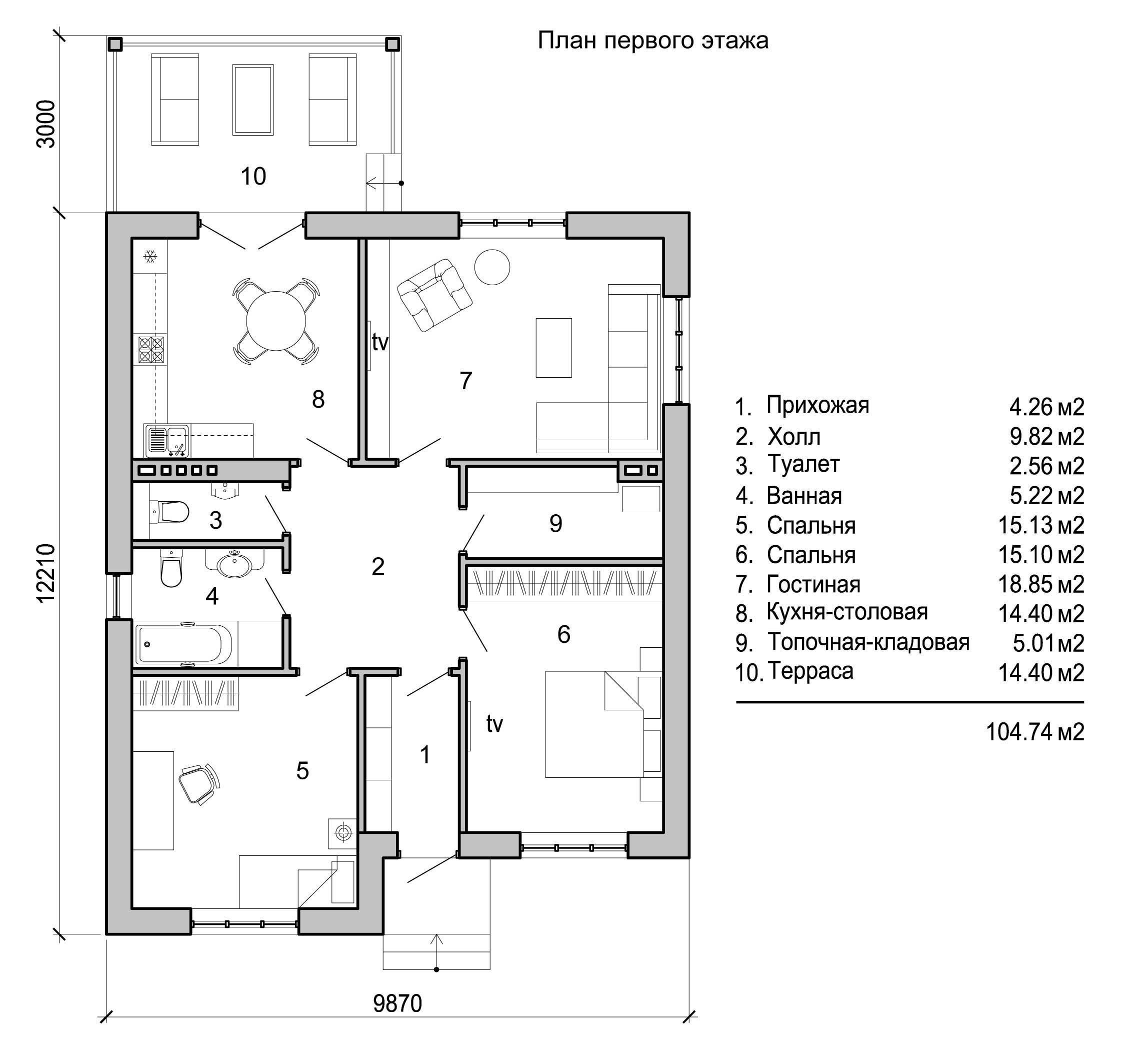 Одноэтажный дом с двумя санузлами 120 м 2 планировка