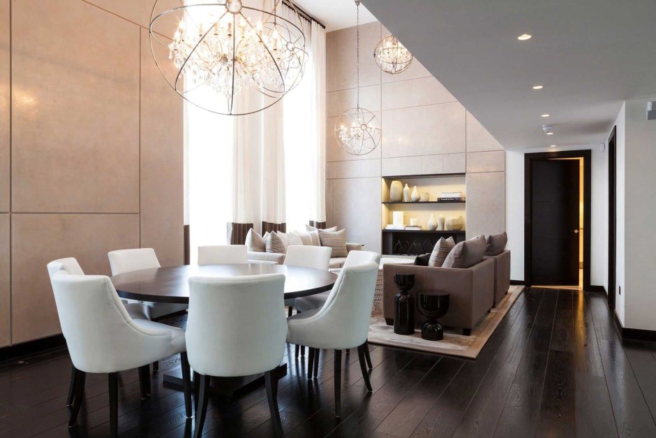 55. Гостиная столовая в светлых тонах