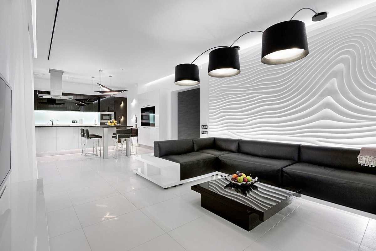 29. Черно белый интерьер гостиной