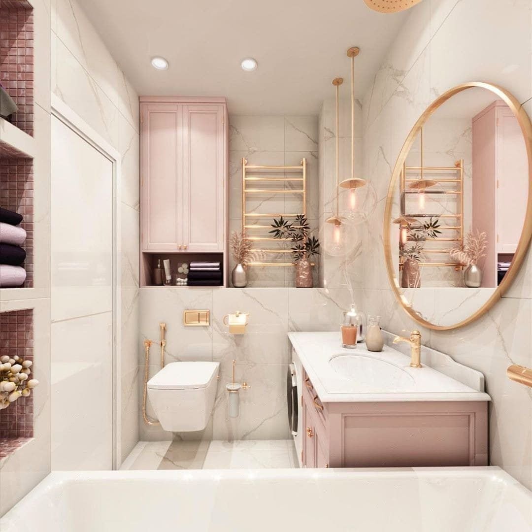 53. Розовый мрамор в ванной