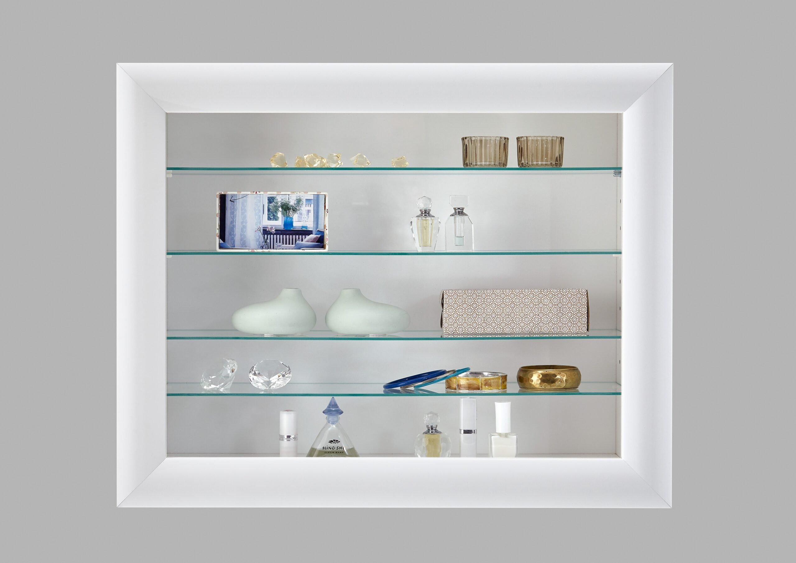 55. Стеклянные полки на белом фоне