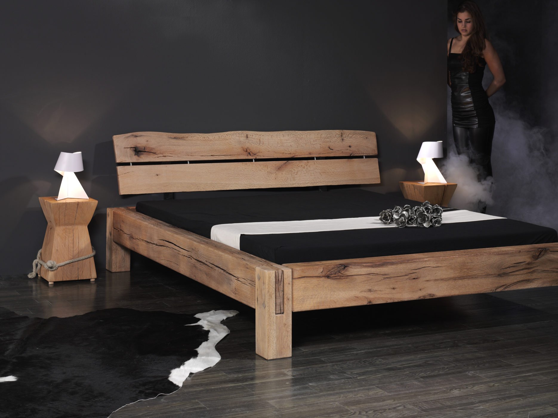 23. Кровать из обожженного дерева