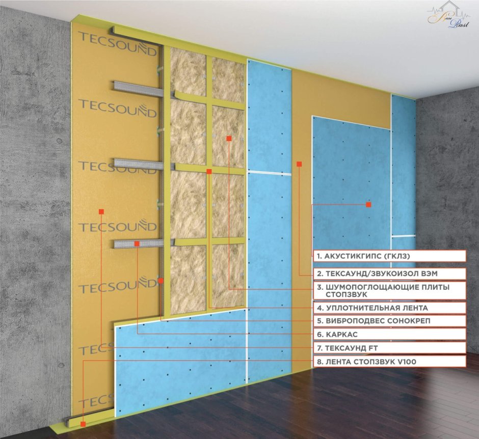 4. ЗИПС-Синема. Звукоизоляционная бескаркасная облицовка