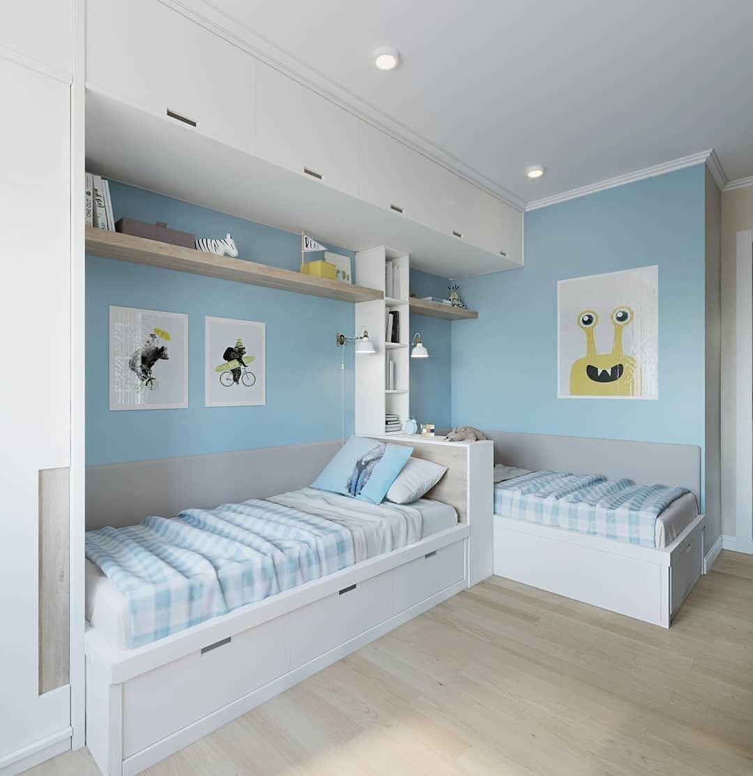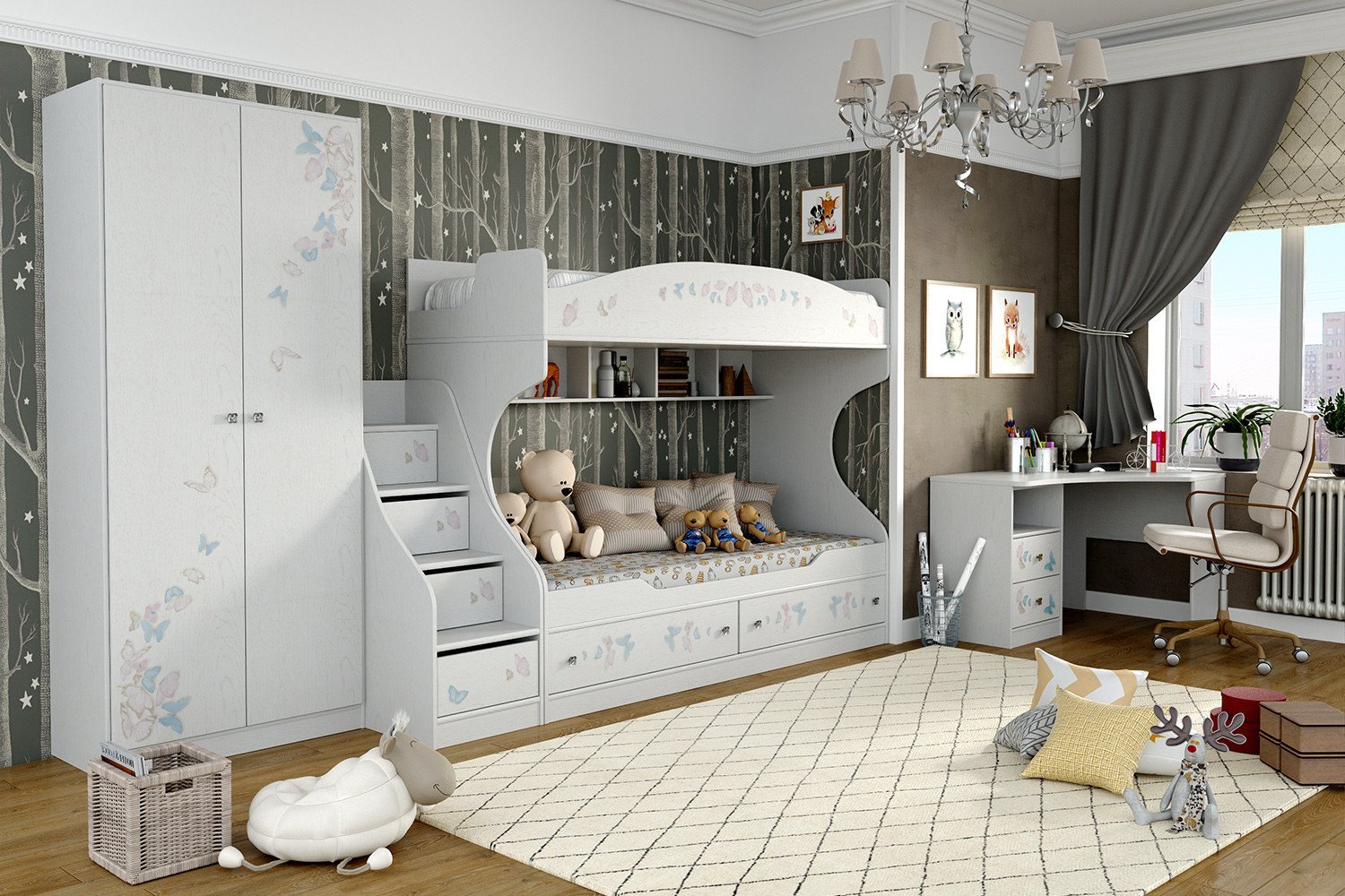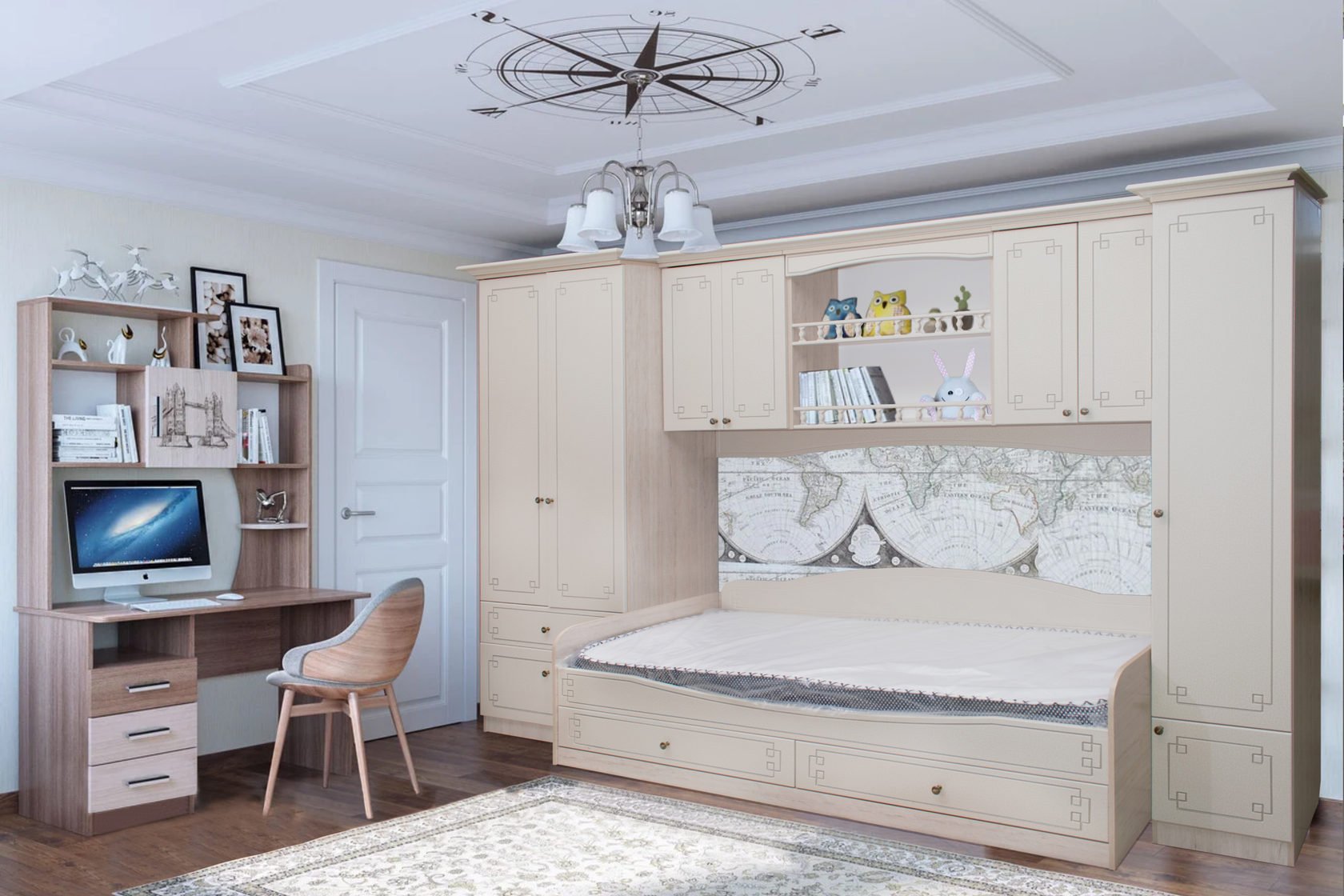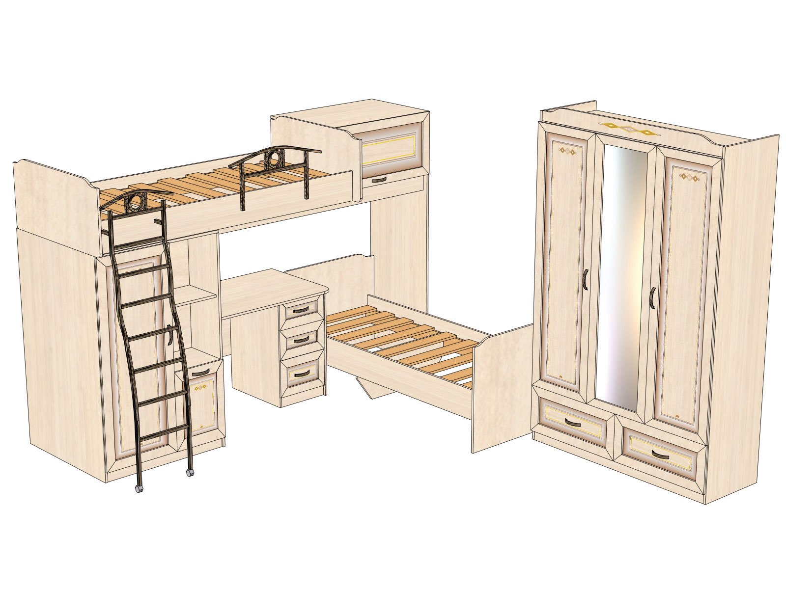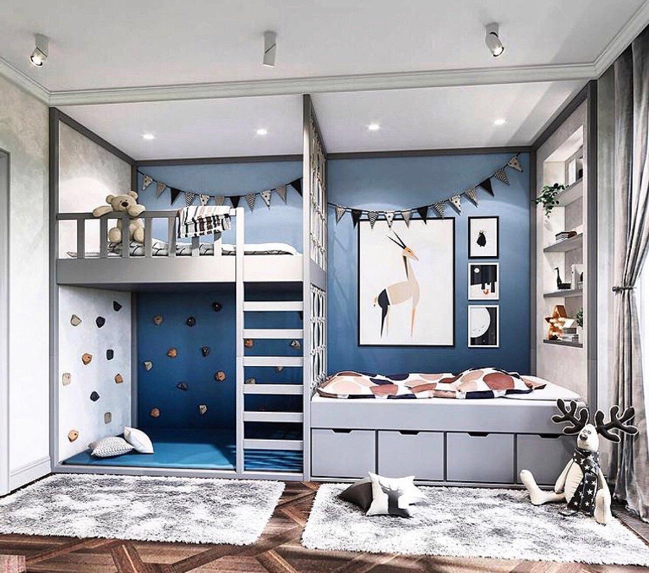 61. Детская мебель для двоих мальчиков с рабочей зоной