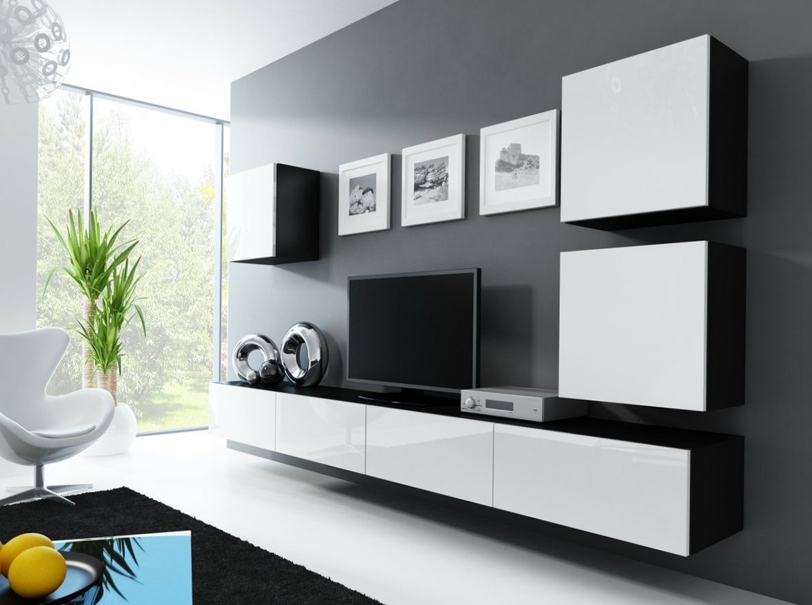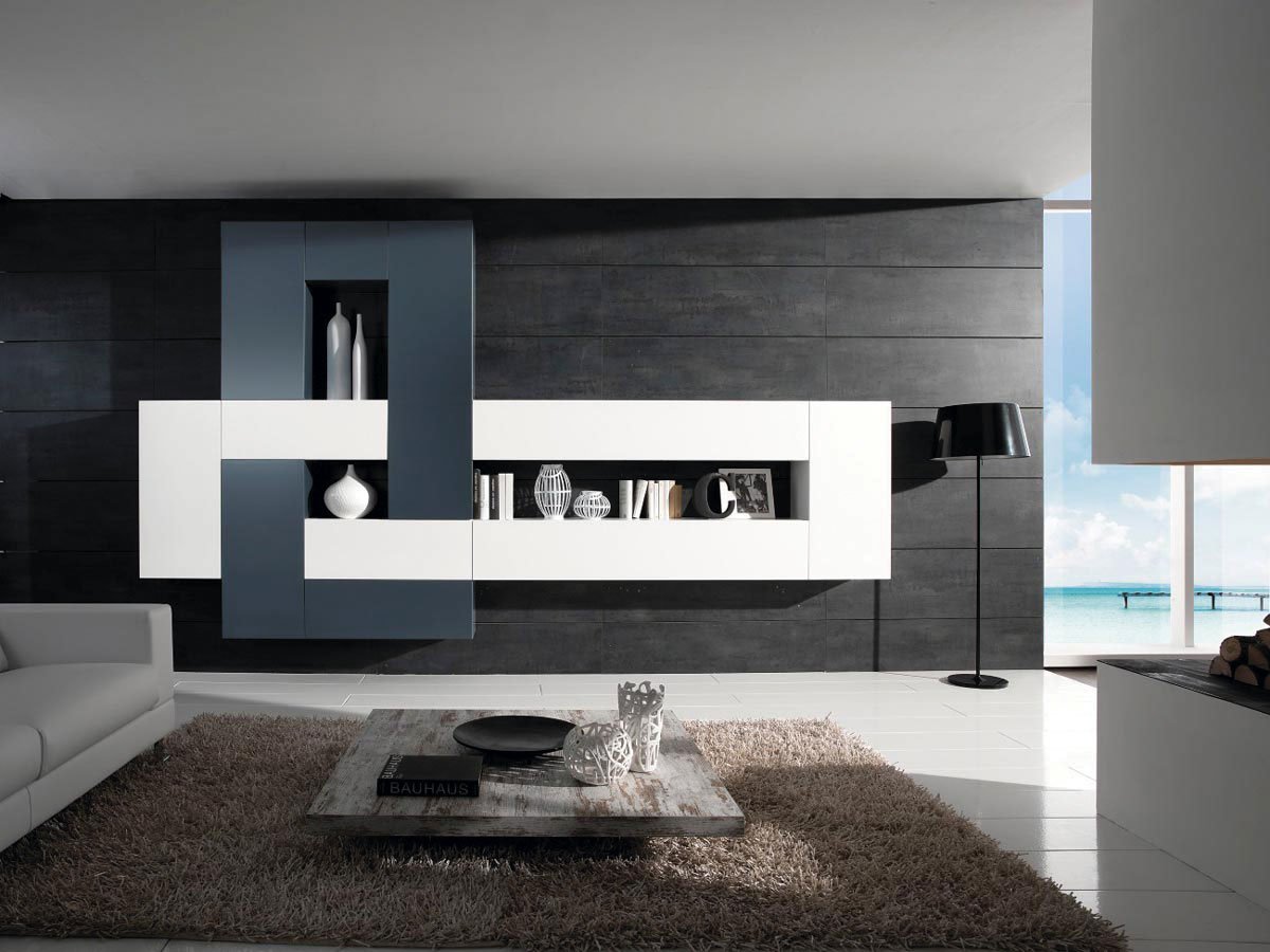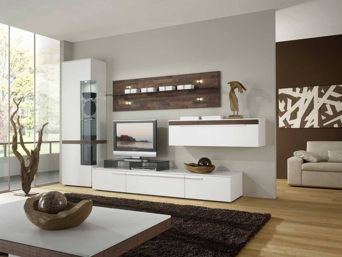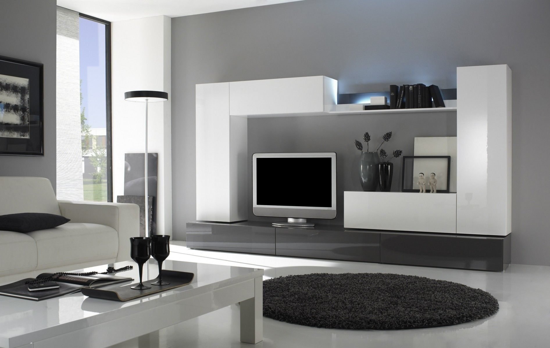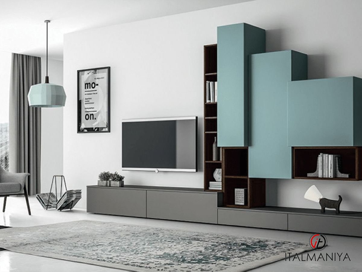 44. Горка в гостиную в современном стиле с телевизором на стене