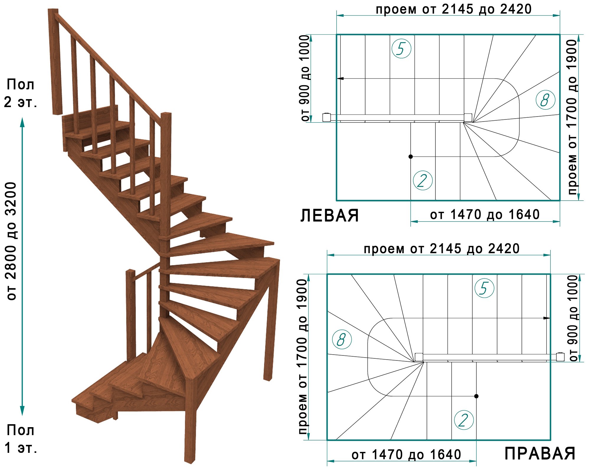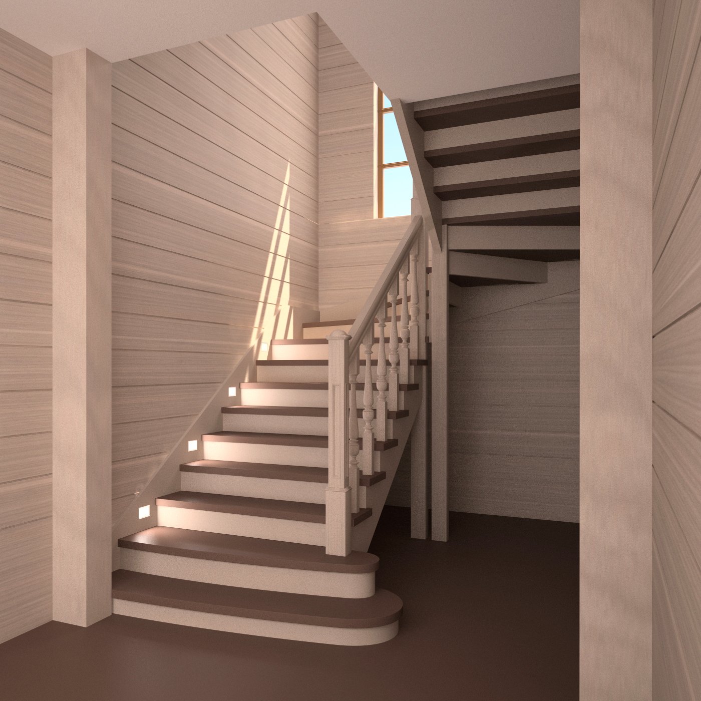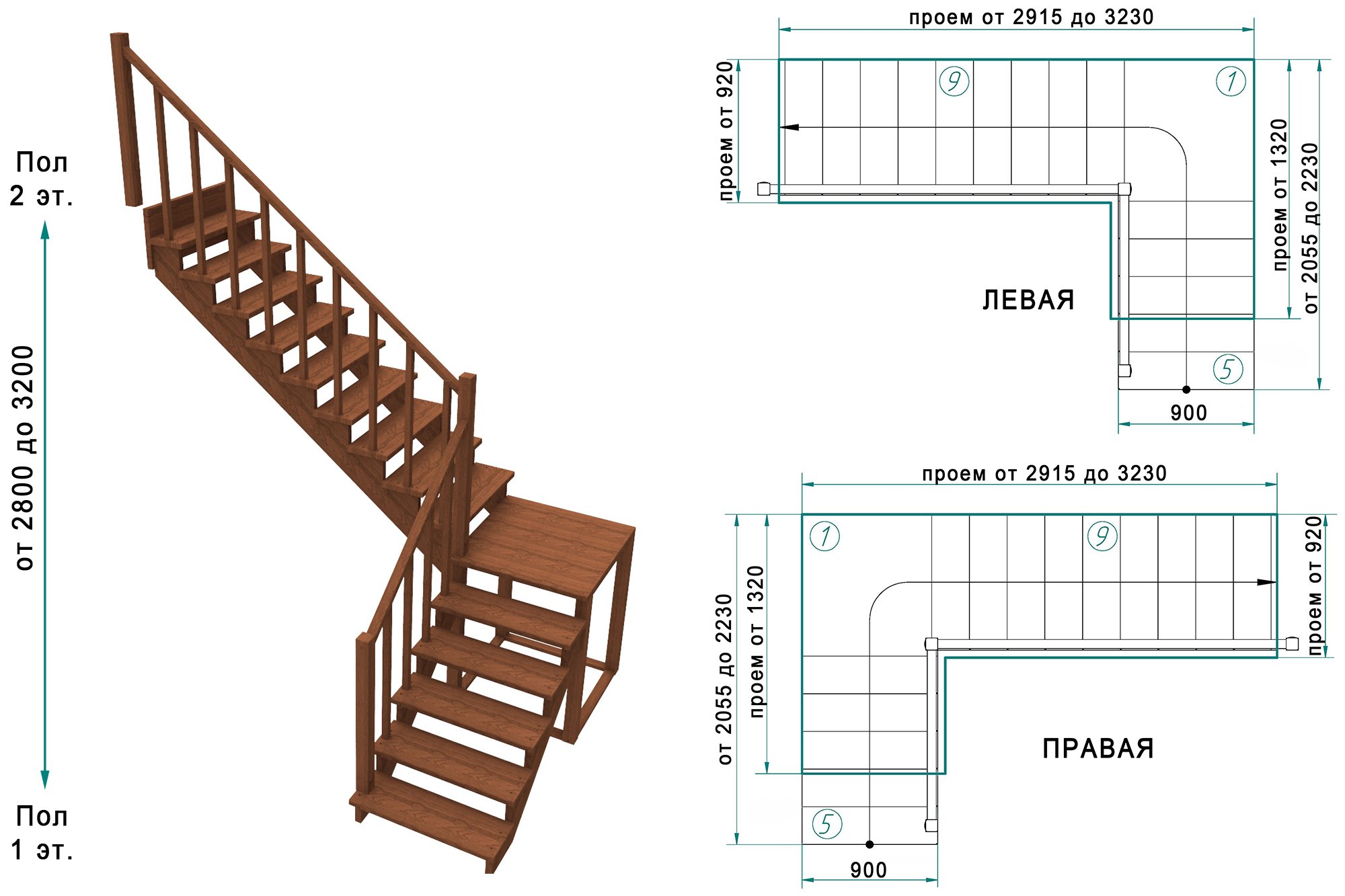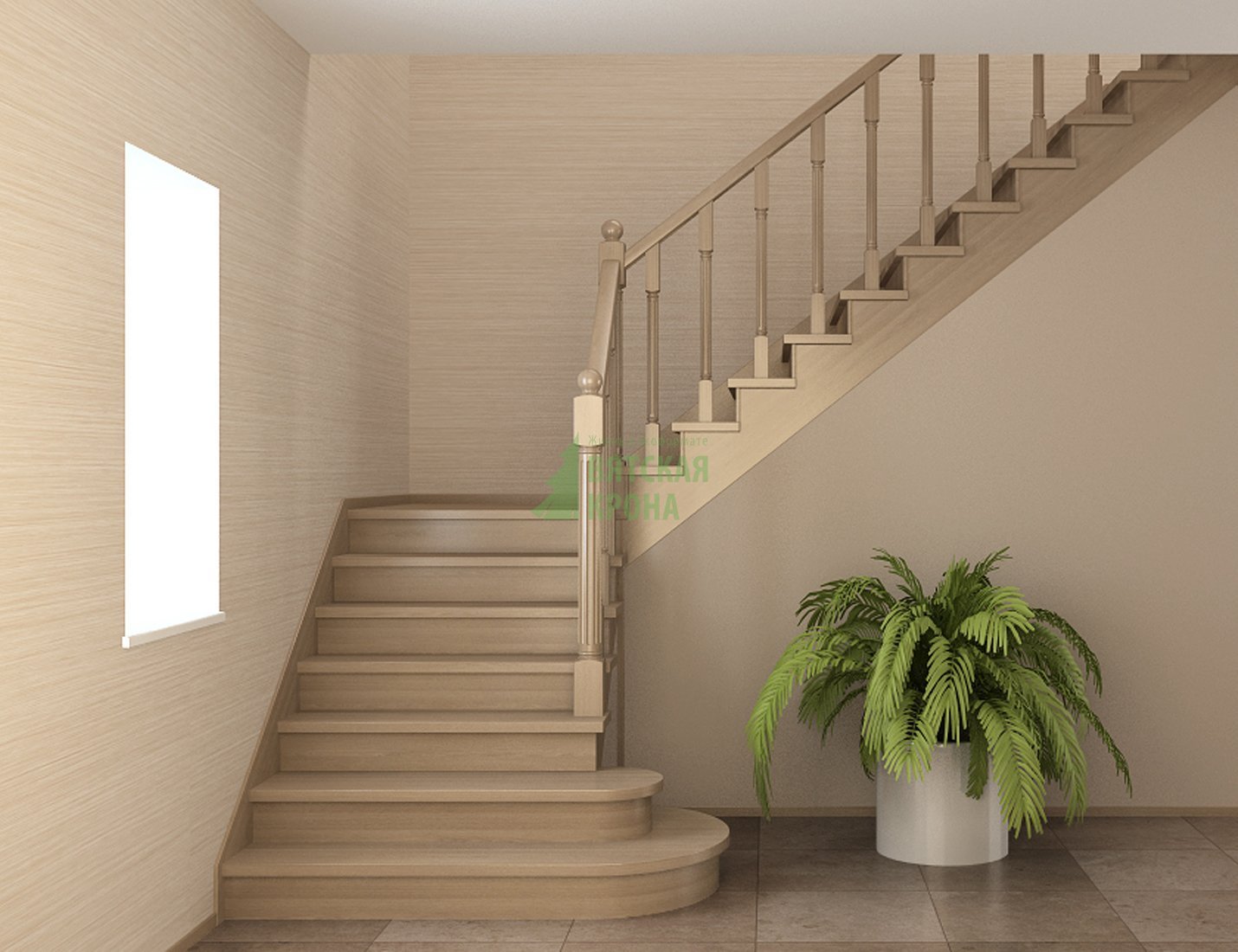 40. Лестница на 2 этаж с поворотом на 90 и забежными ступенями