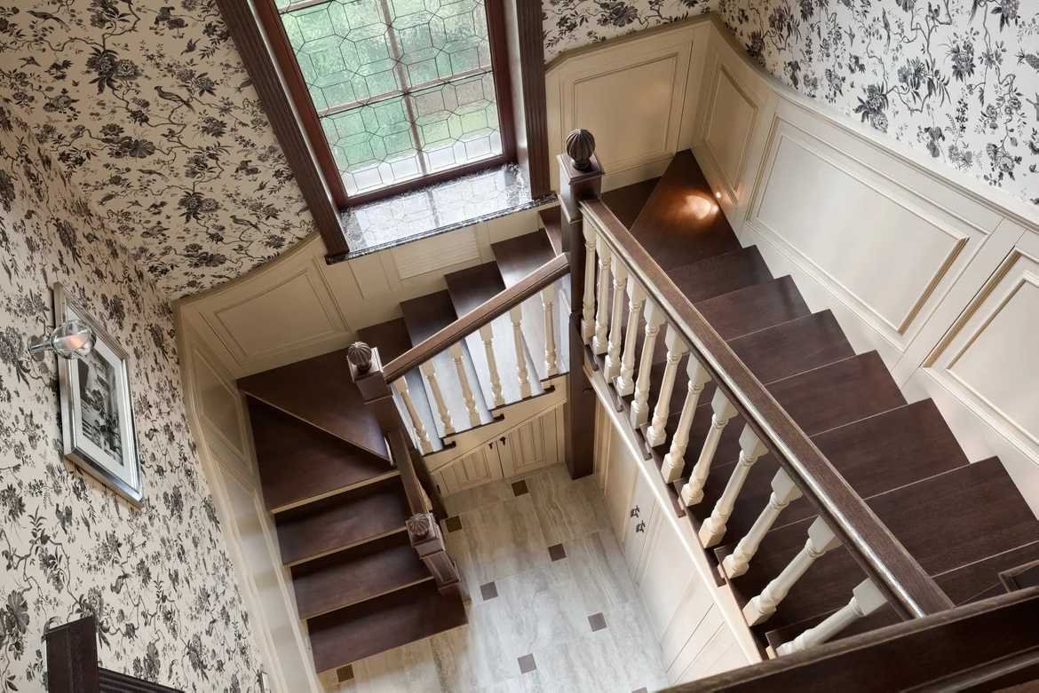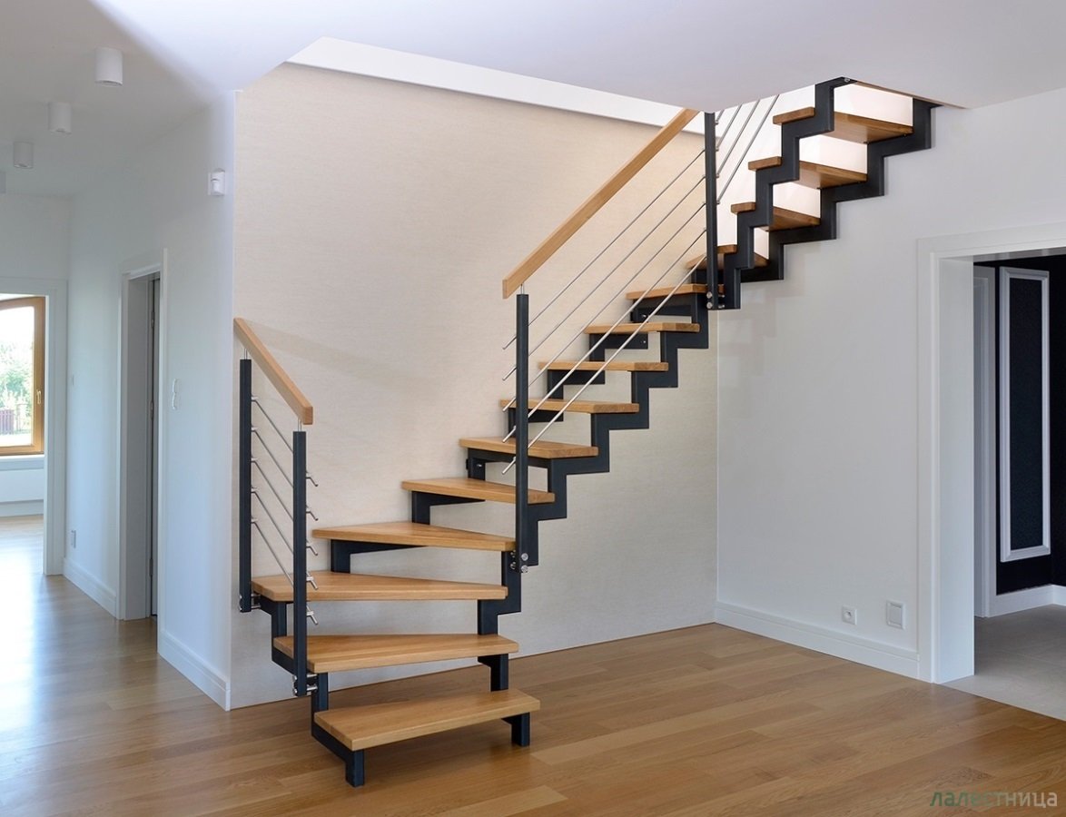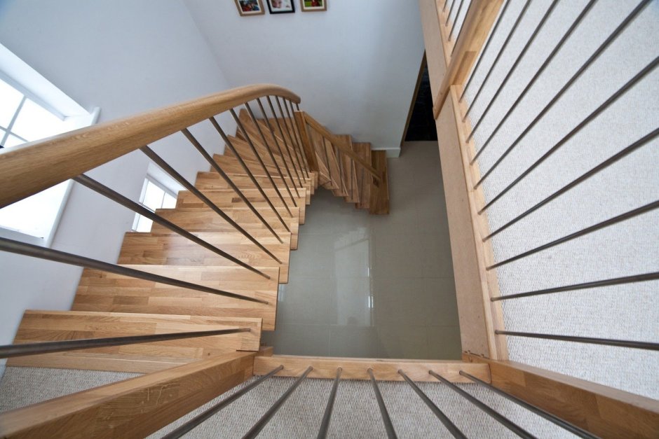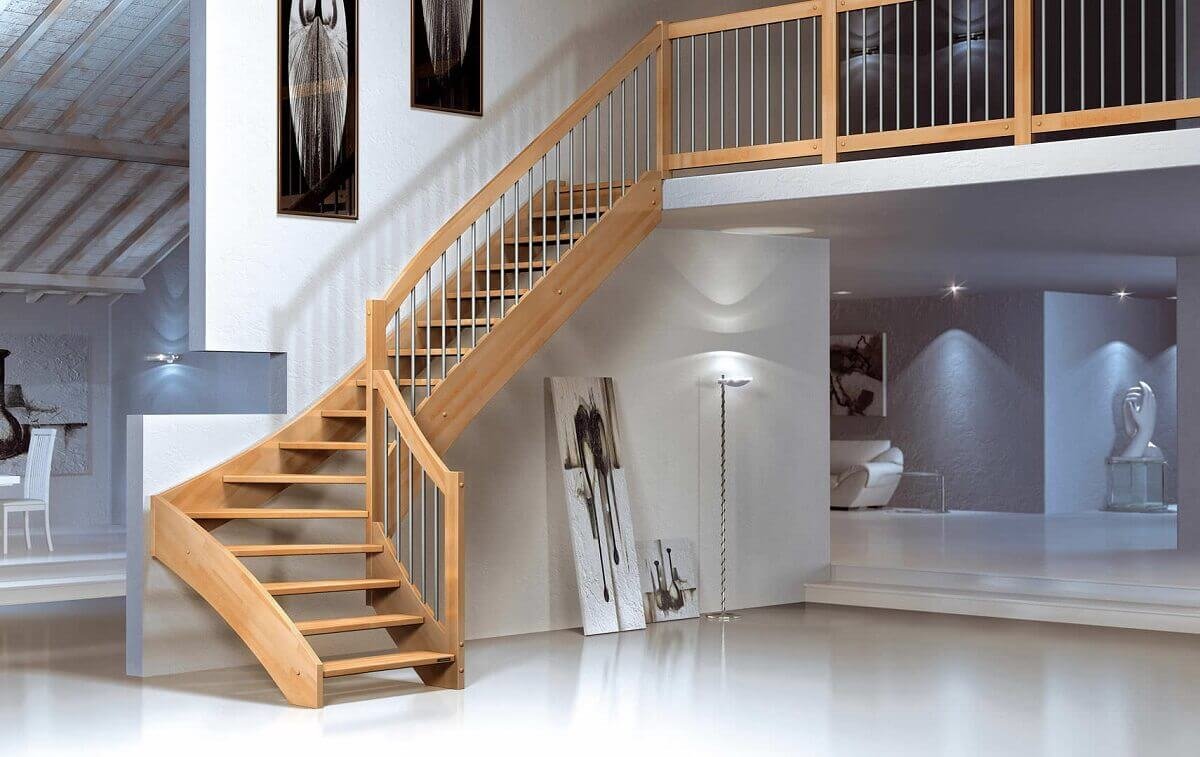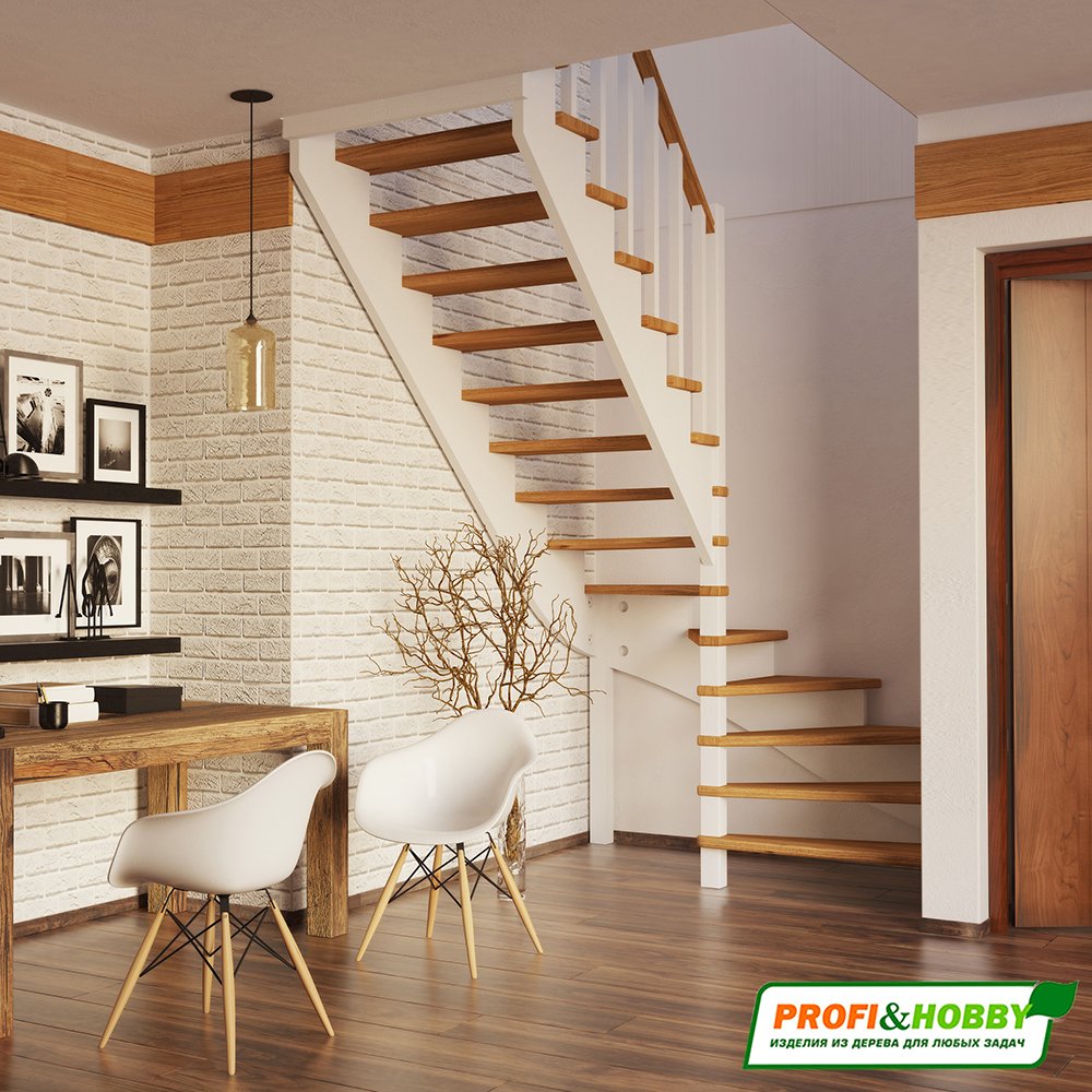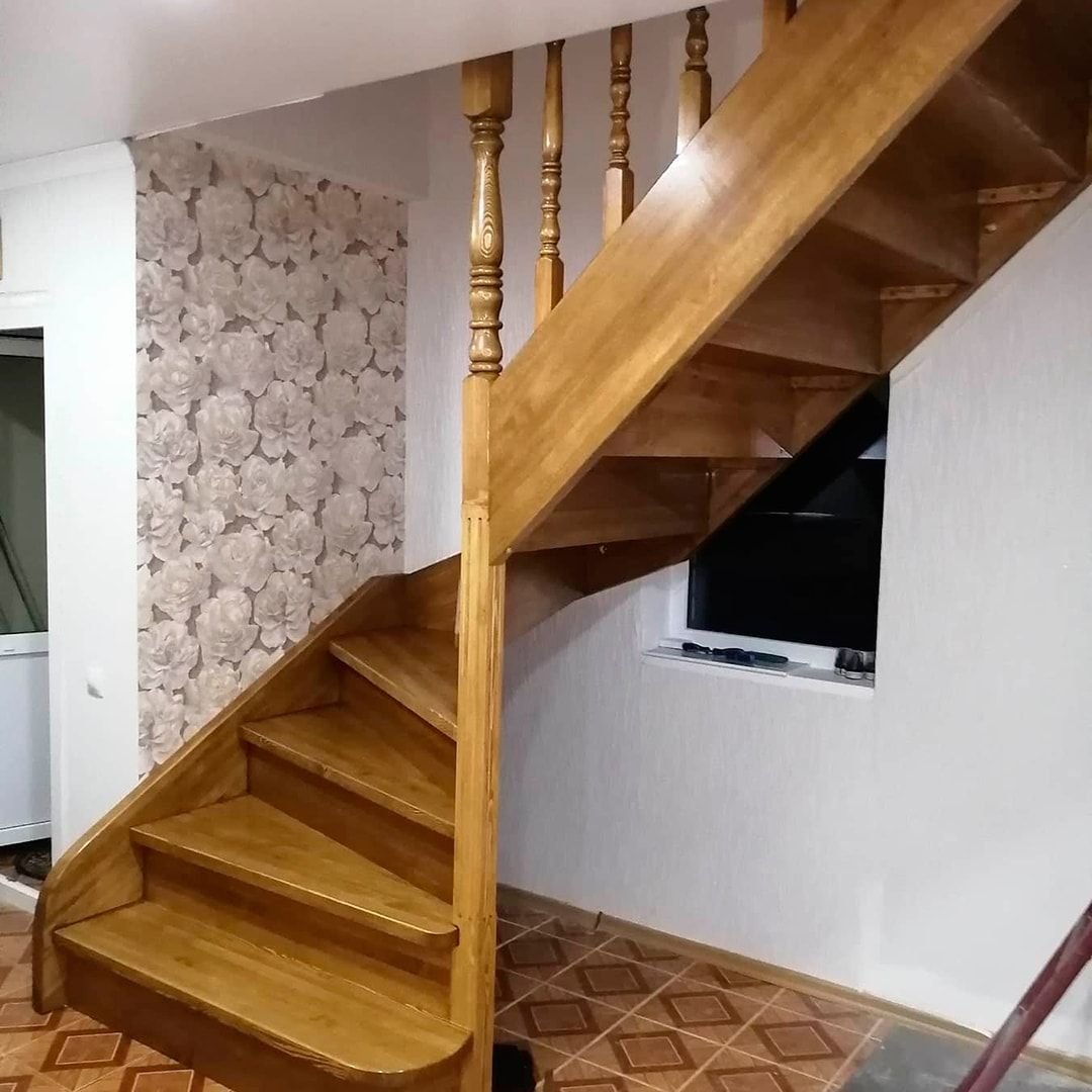 40. Лестница на 2 этаж с поворотом на 90 и забежными ступенями