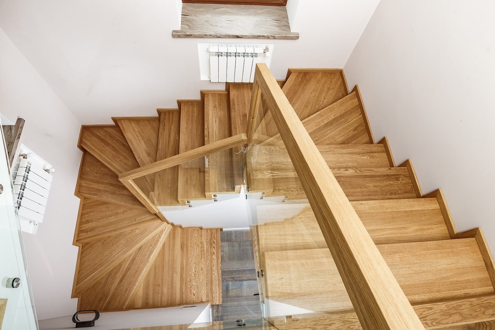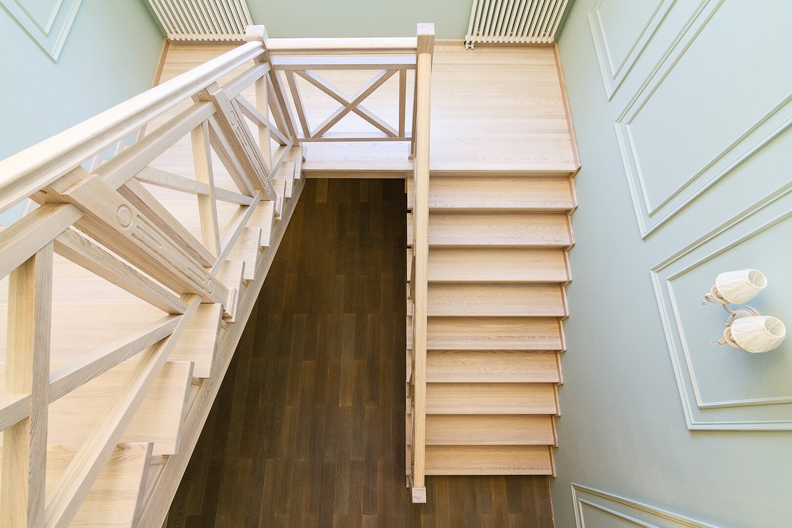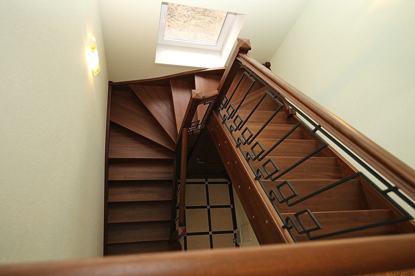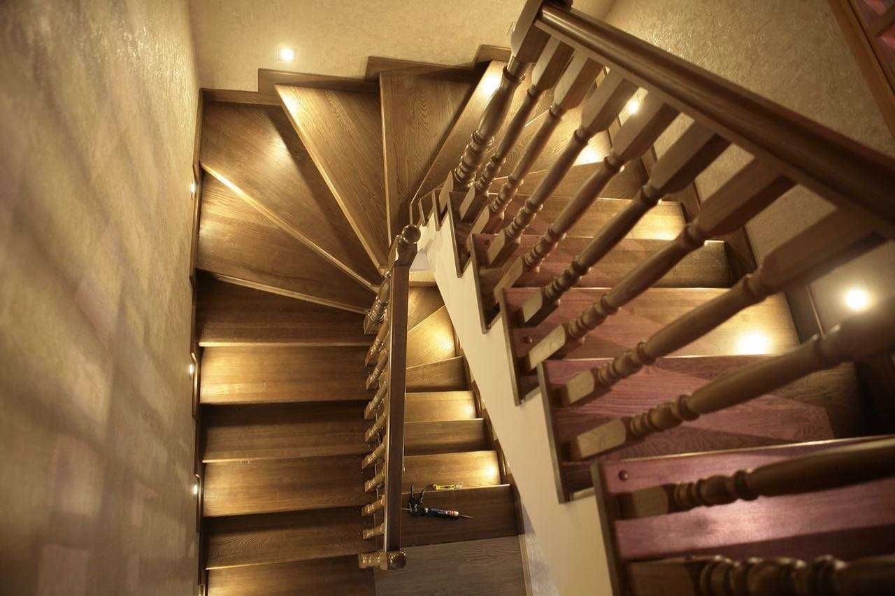 40. Лестница на 2 этаж с поворотом на 90 и забежными ступенями