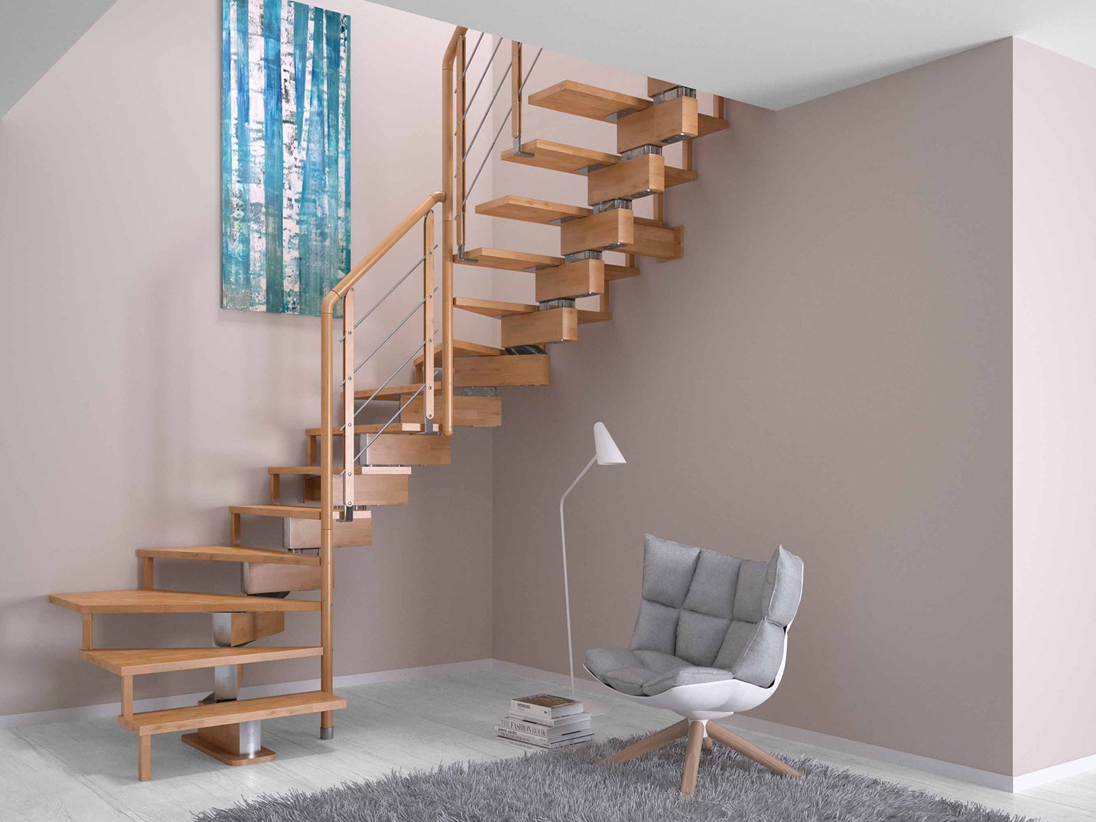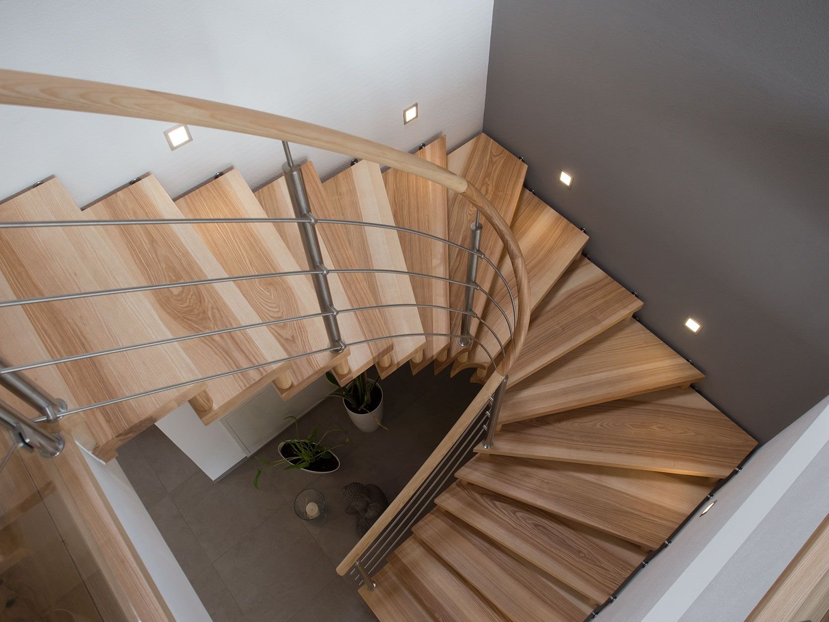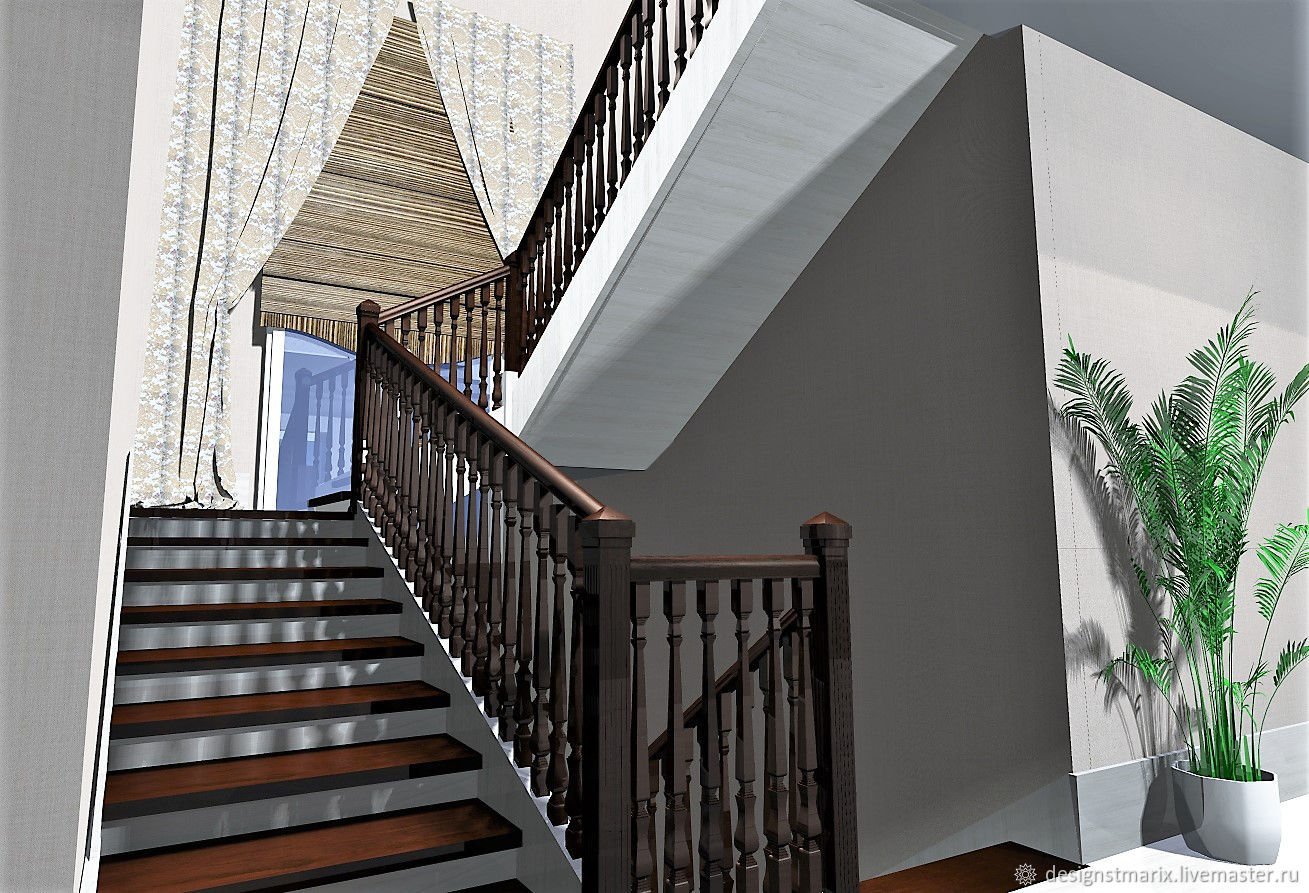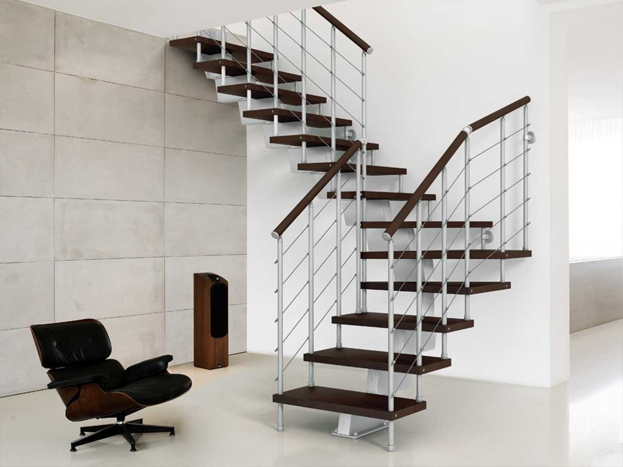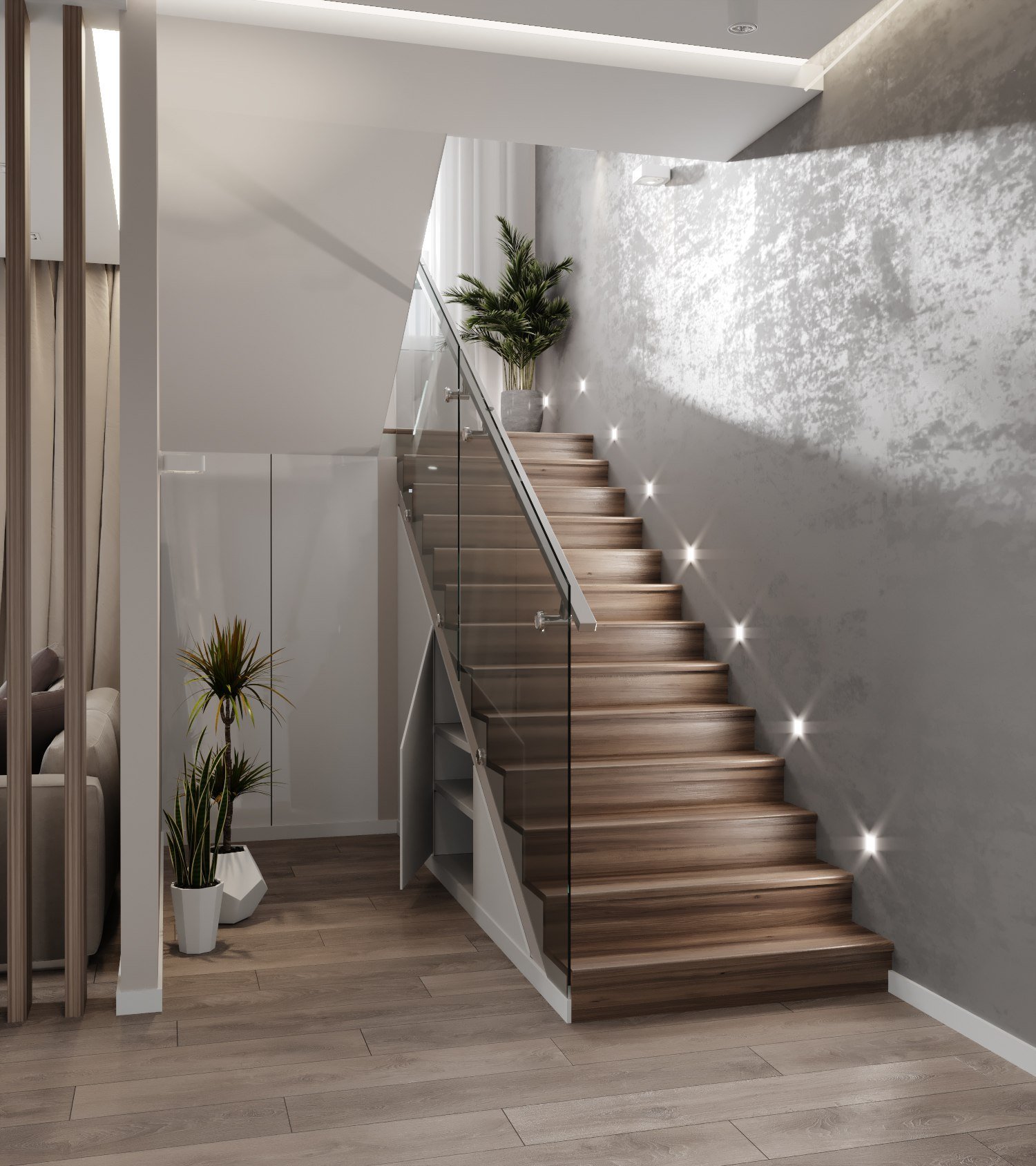 40. Лестница на 2 этаж с поворотом на 90 и забежными ступенями