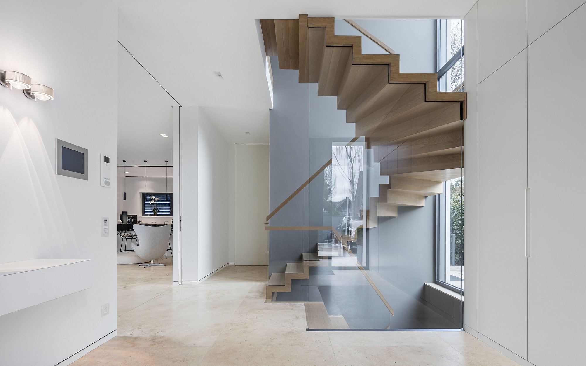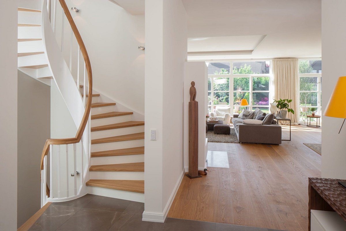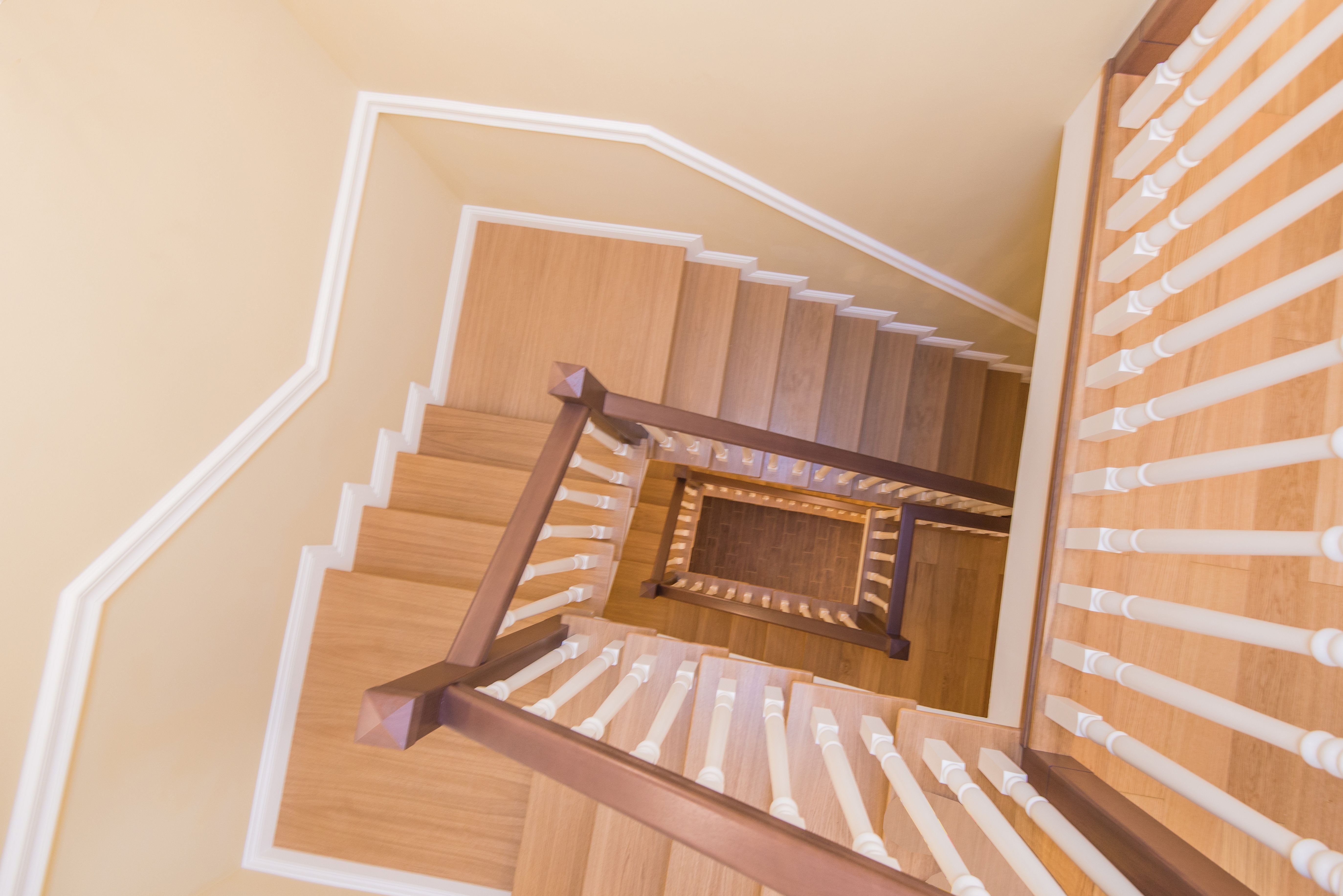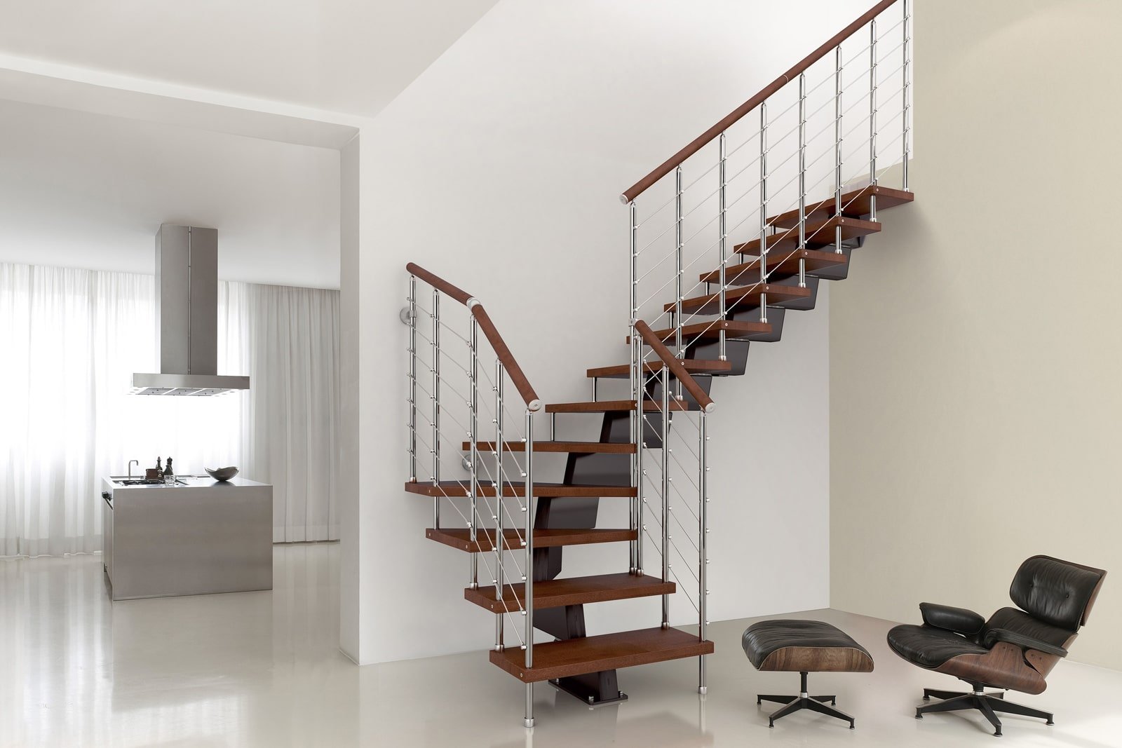 40. Лестница на 2 этаж с поворотом на 90 и забежными ступенями