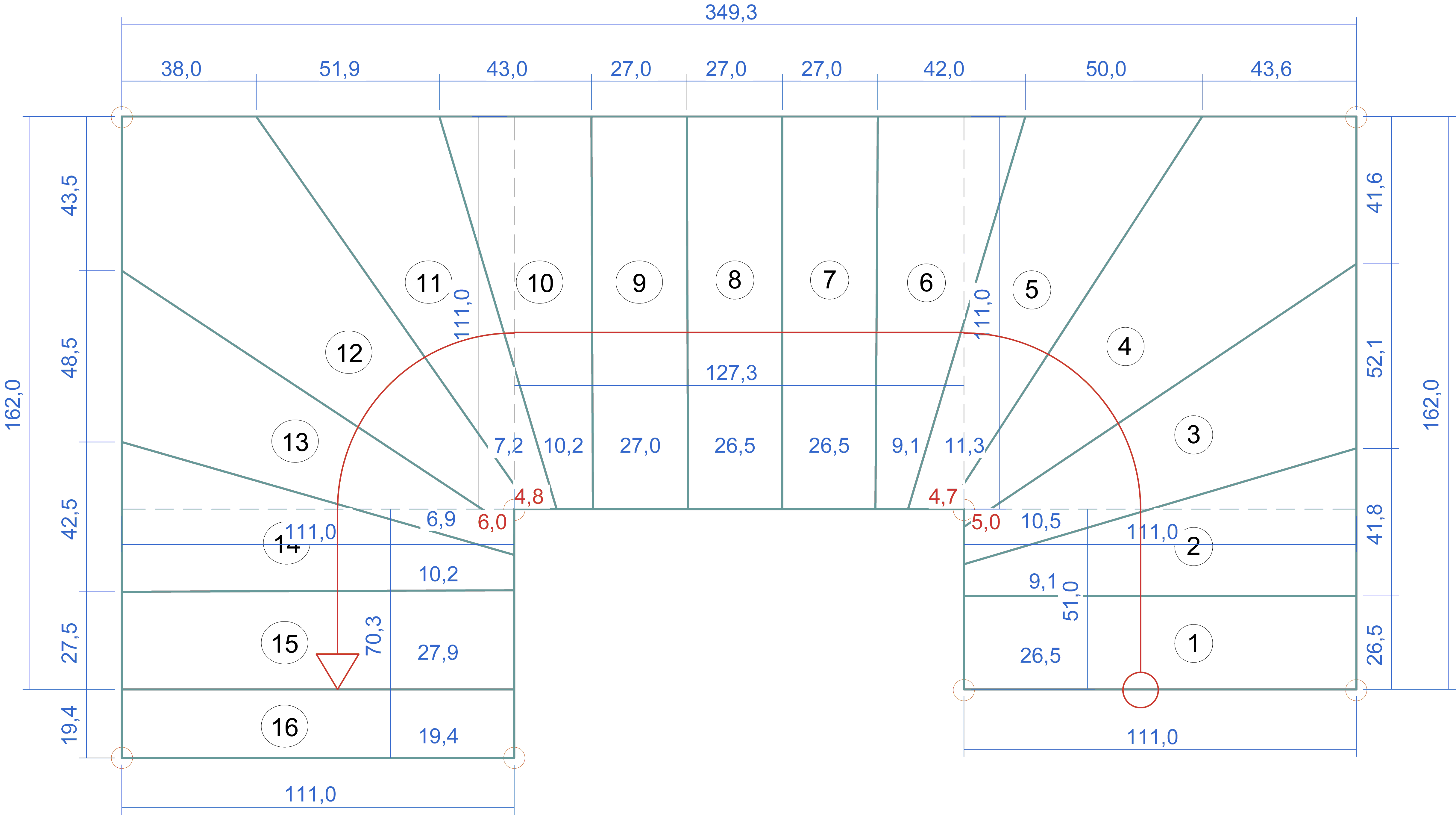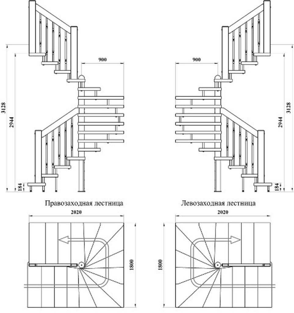 26. Бетонная лестница с забежными ступенями с поворотом на 90