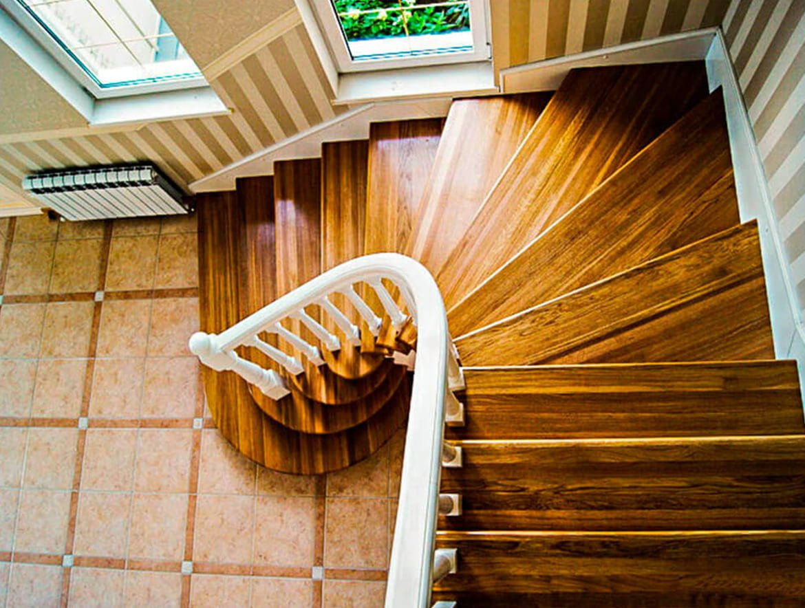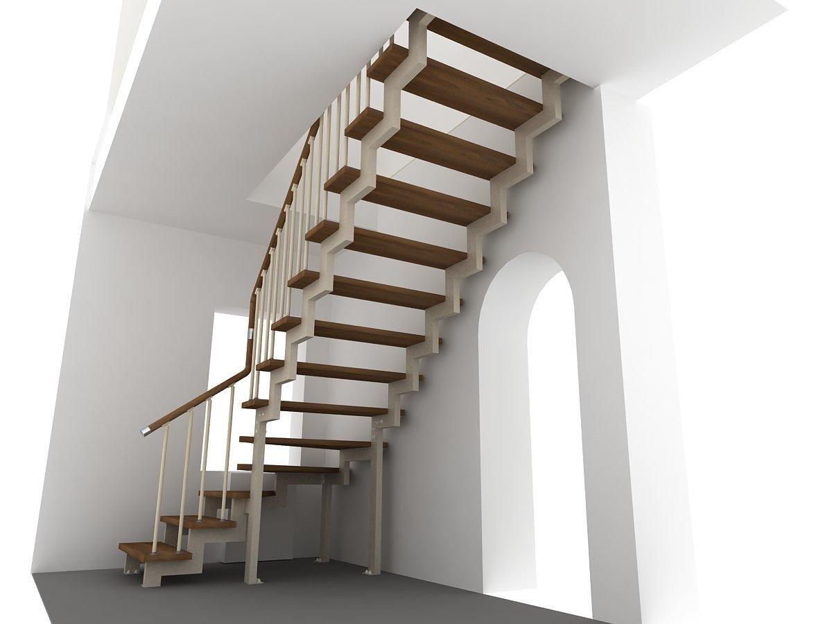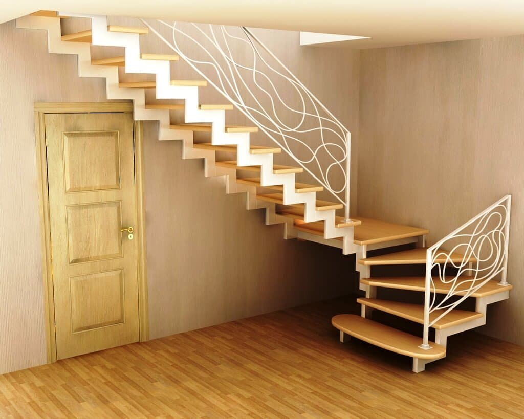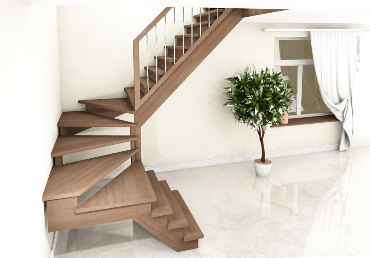 33. Лестница на тетивах с забежными ступенями с поворотом на 90