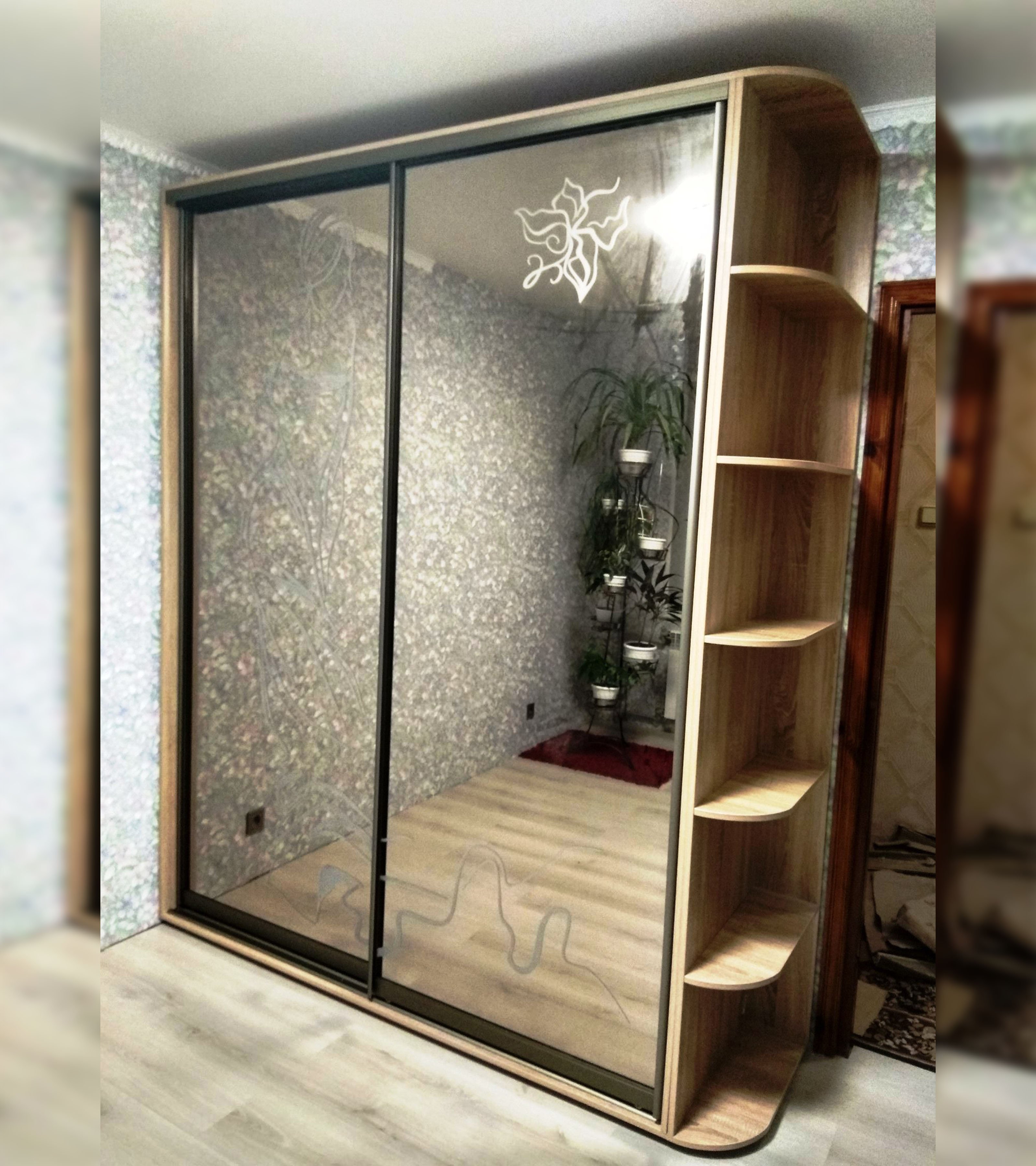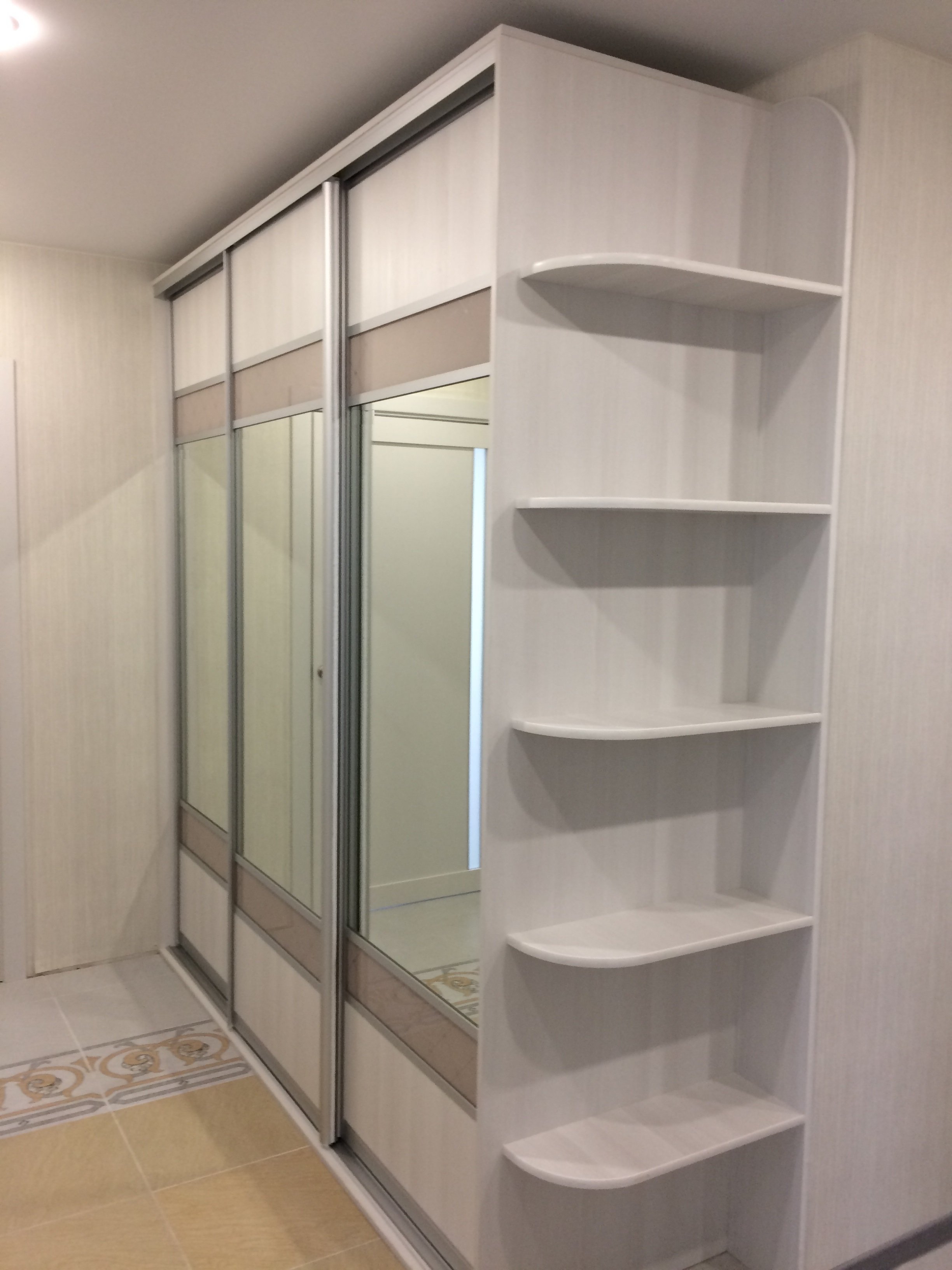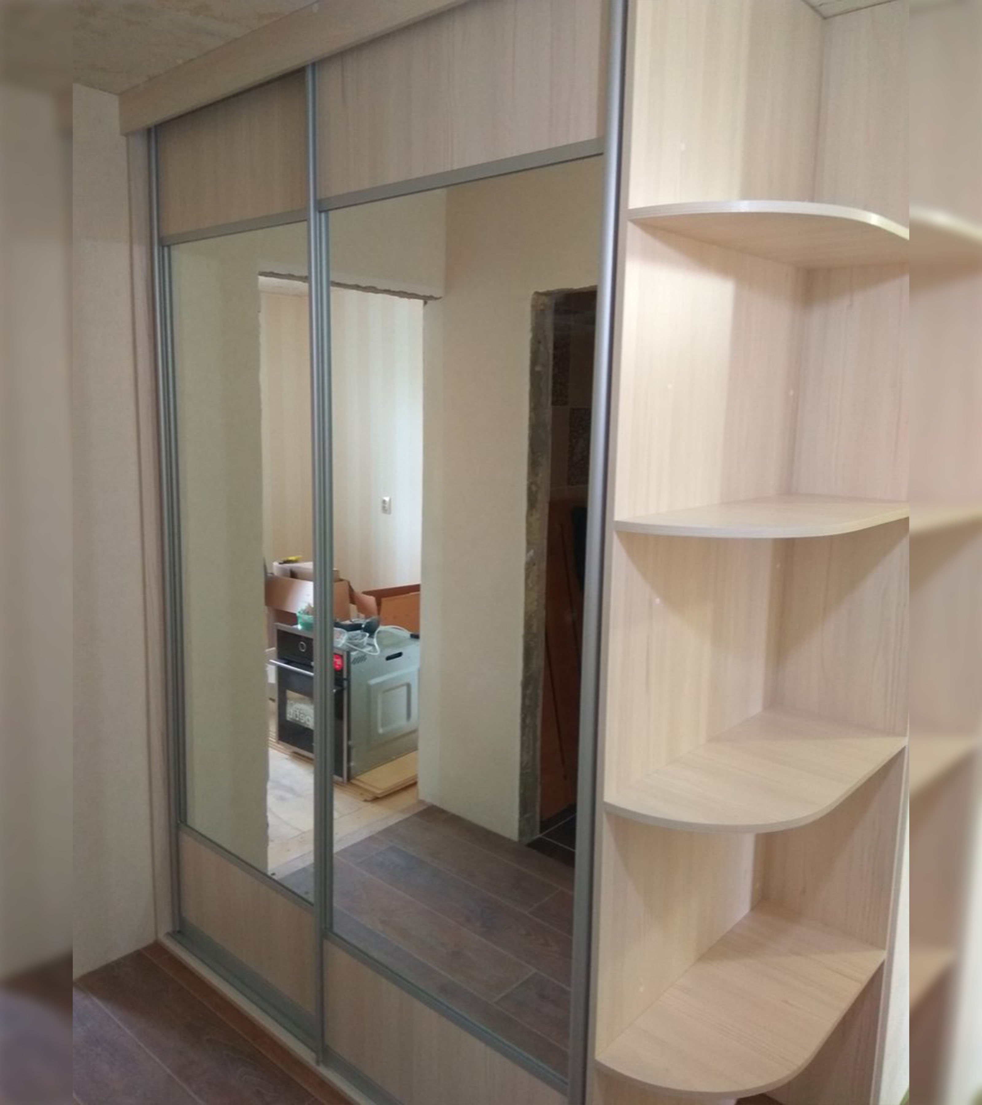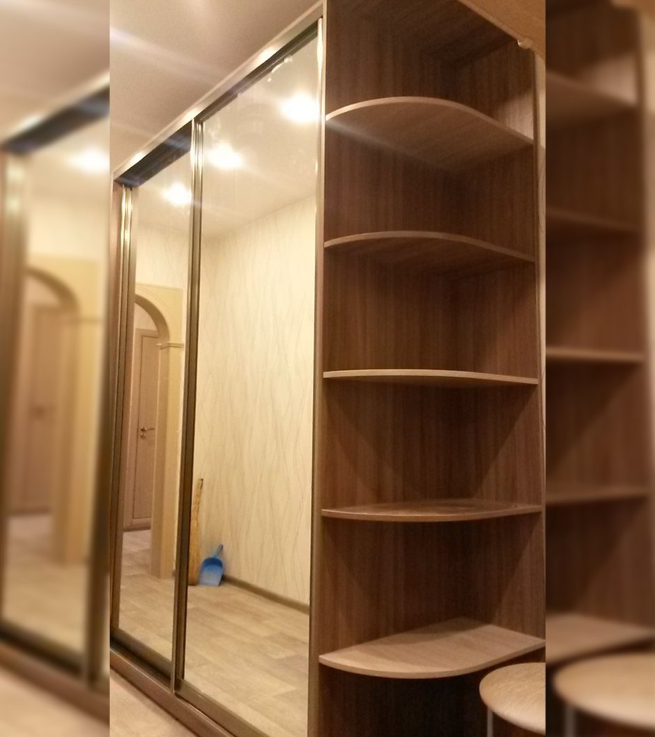 21. Шкаф купе угловой с зеркалом и полочками сбоку