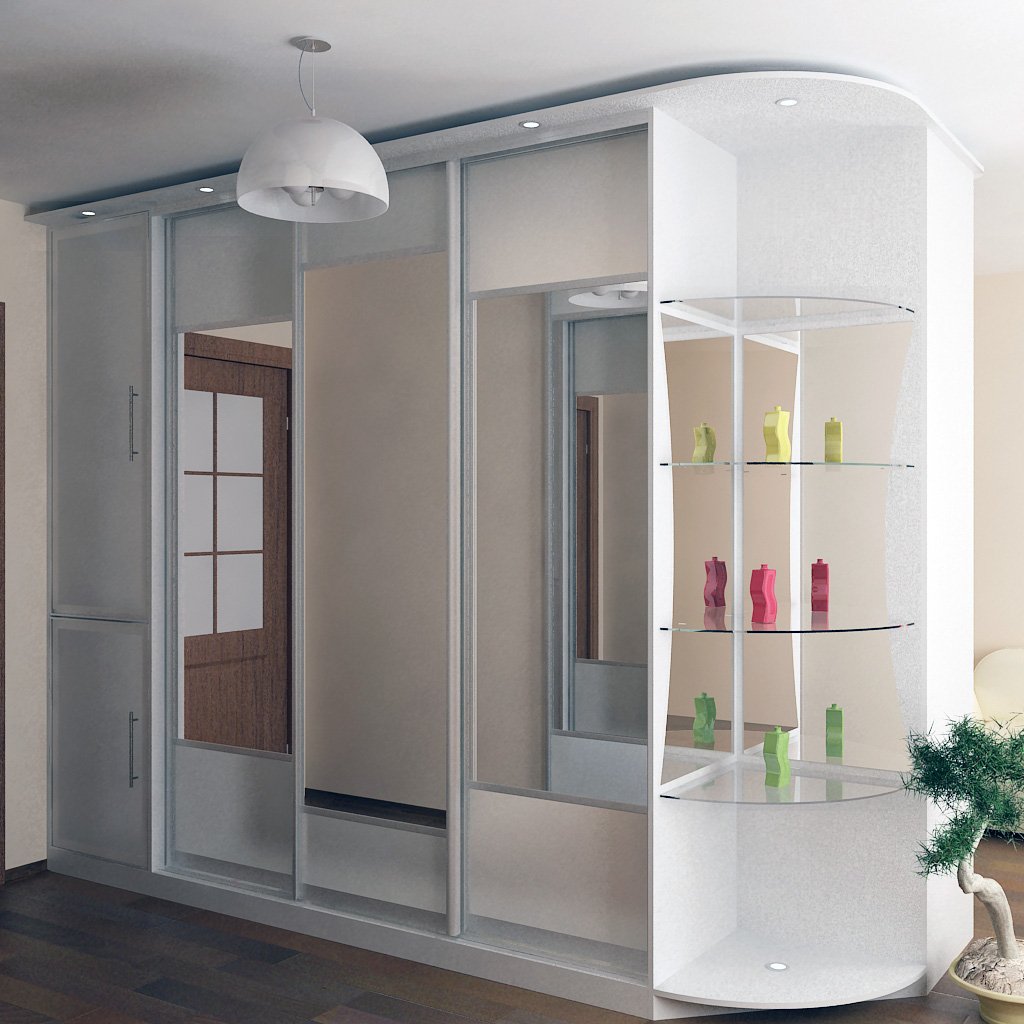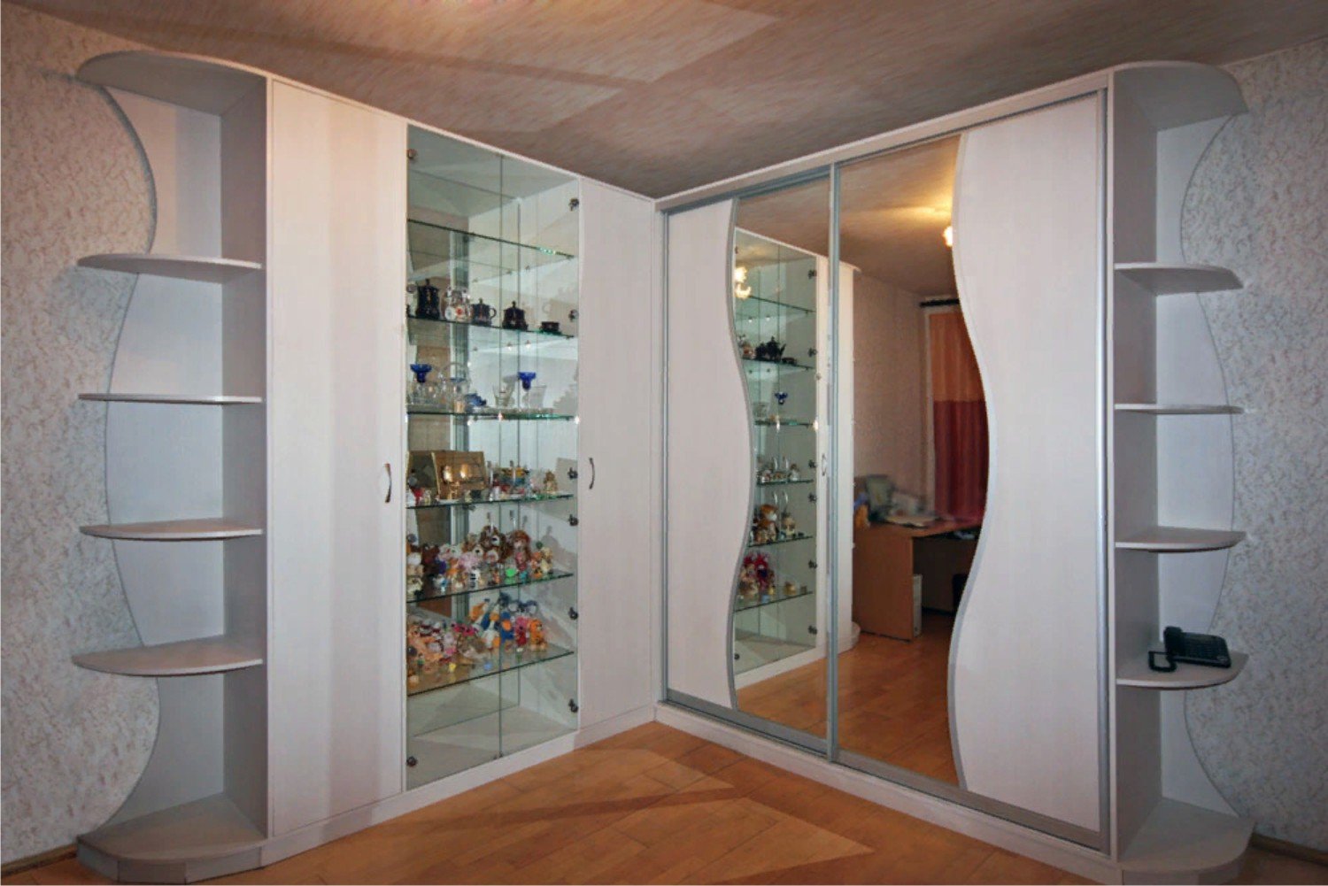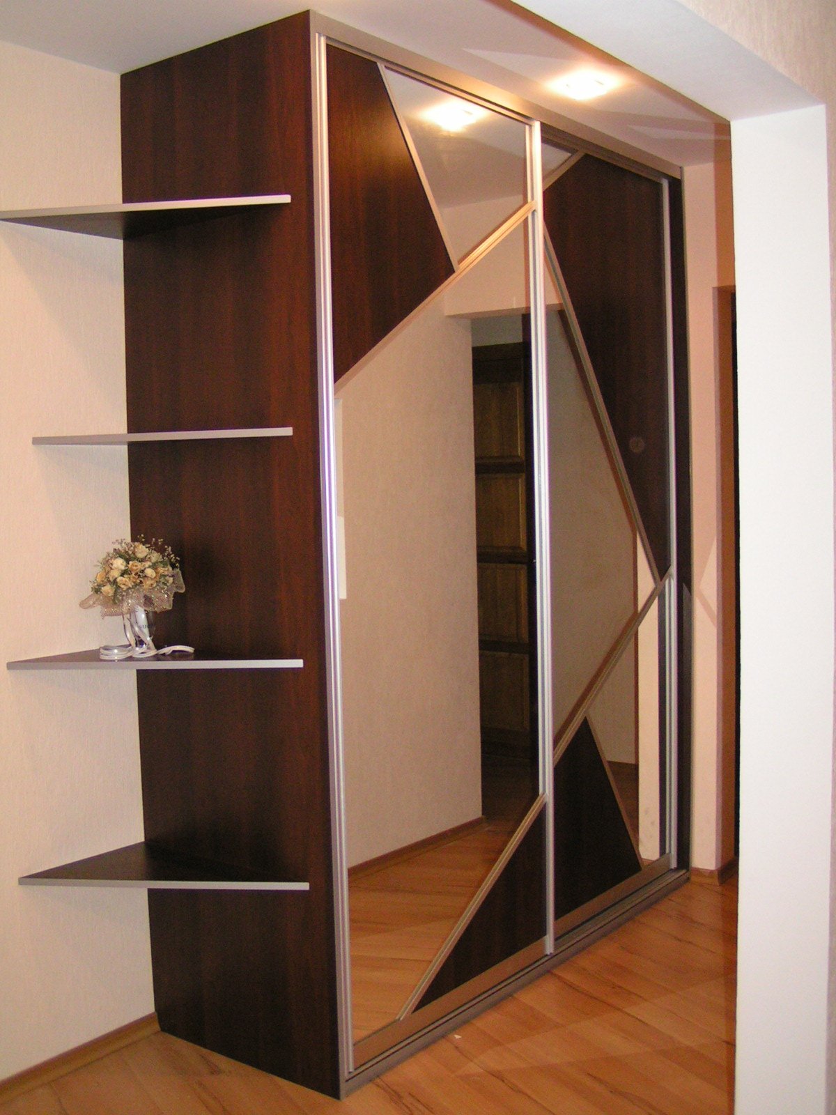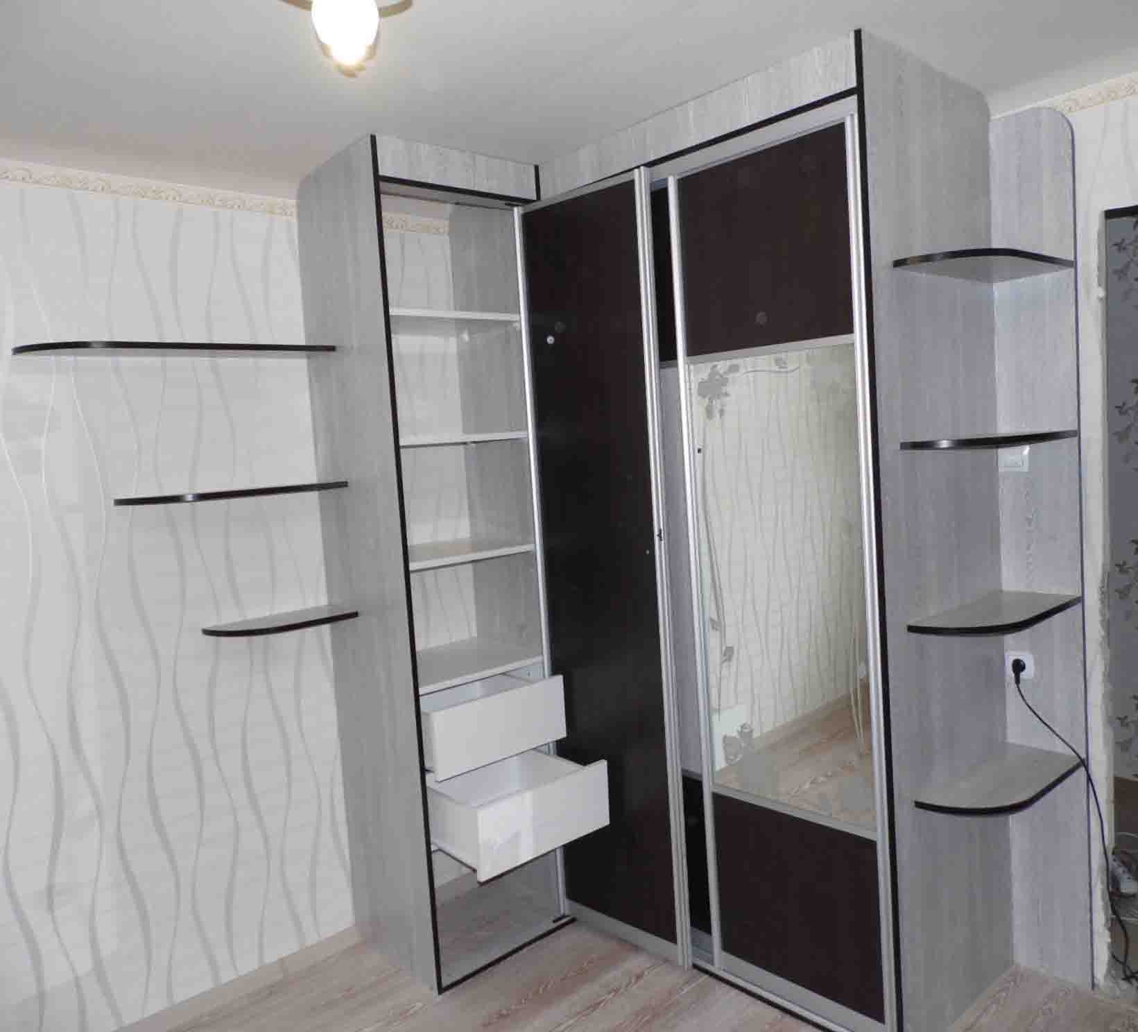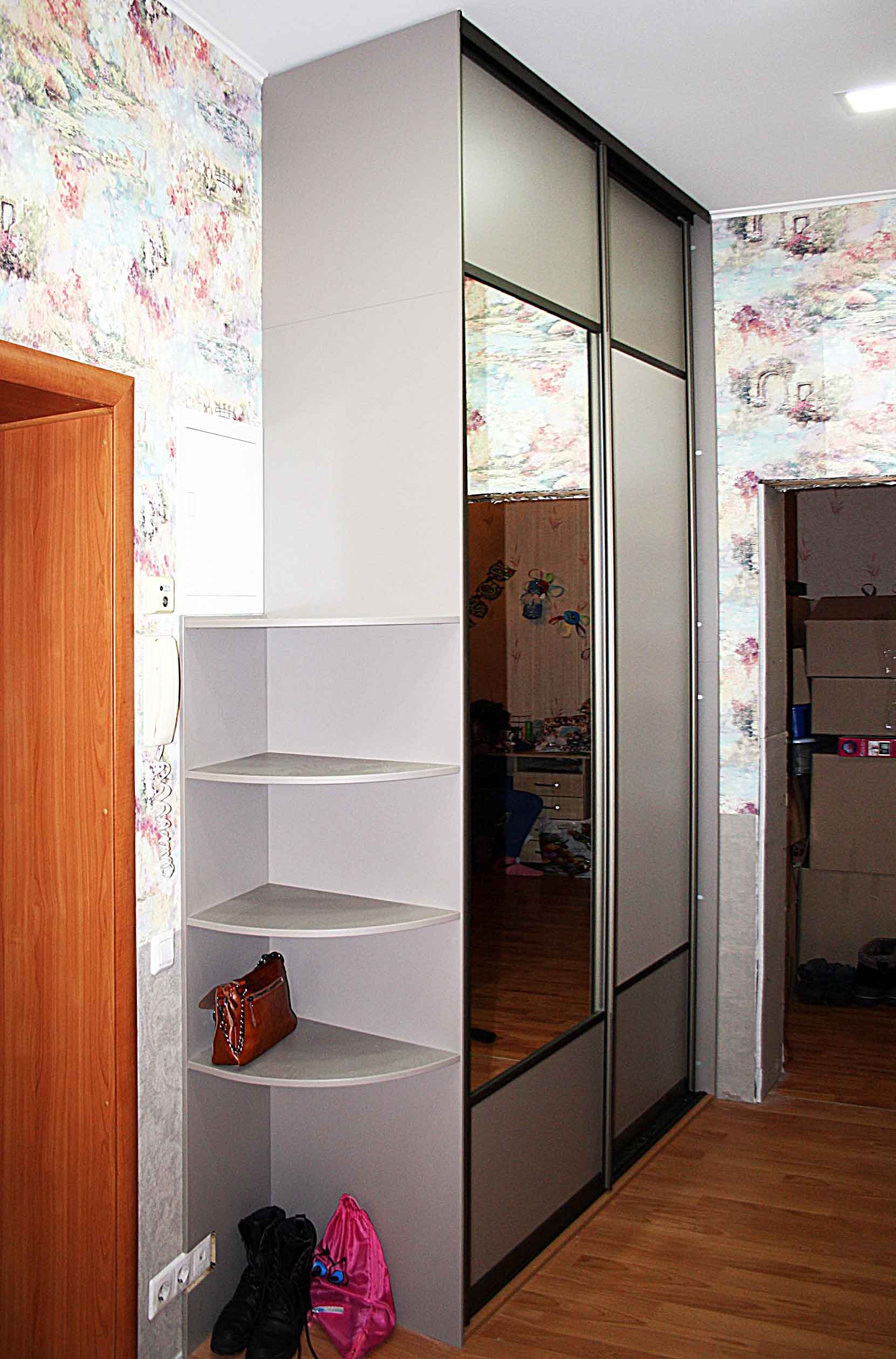 21. Шкаф купе угловой с зеркалом и полочками сбоку