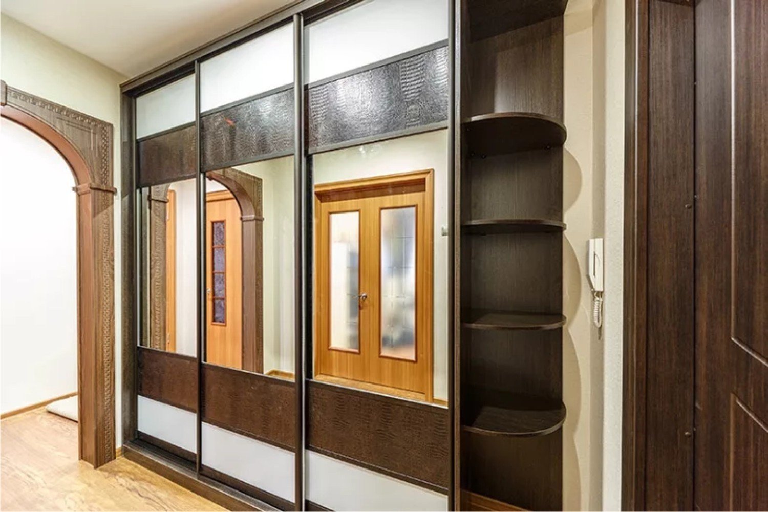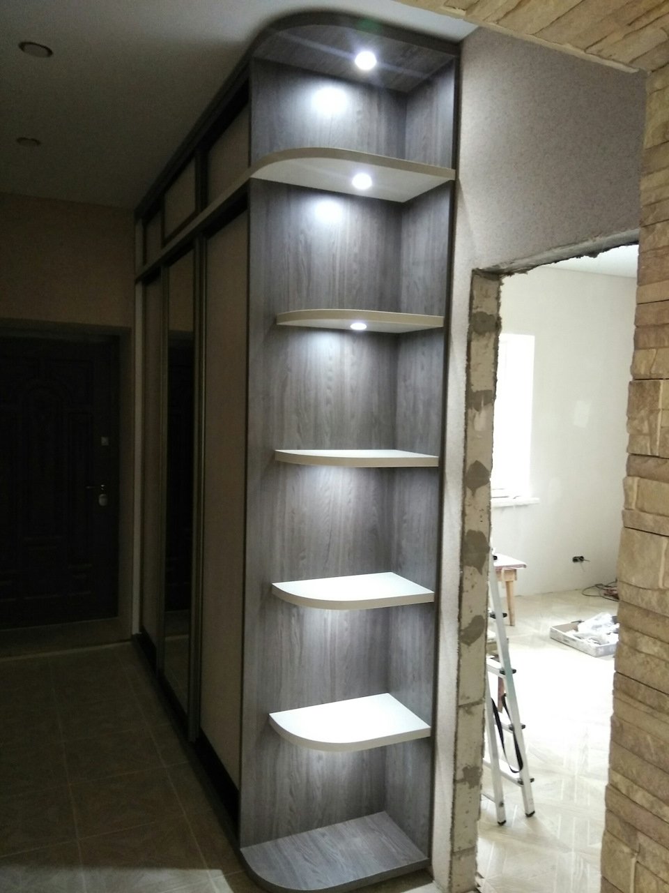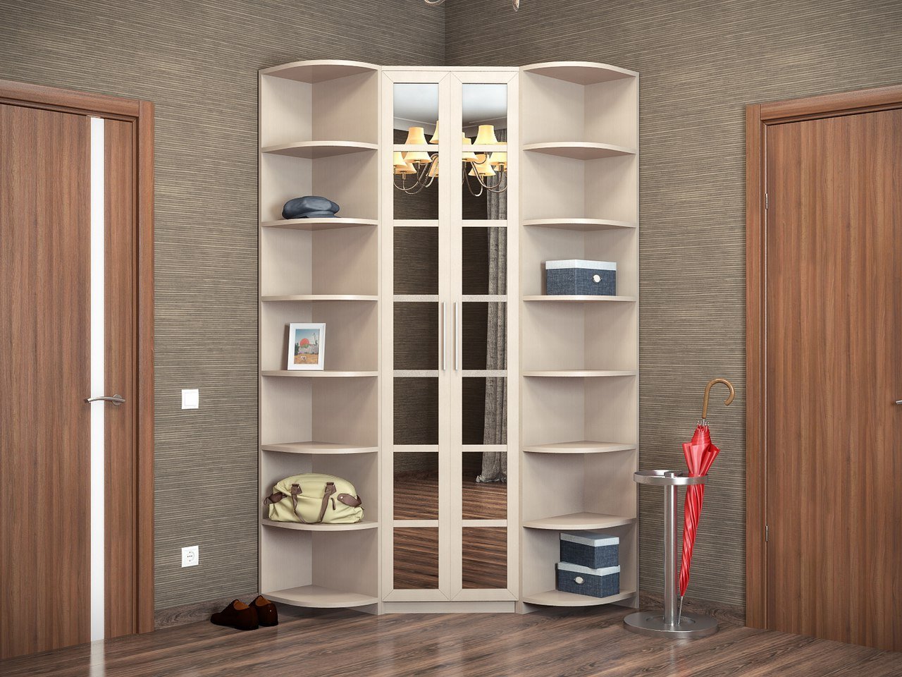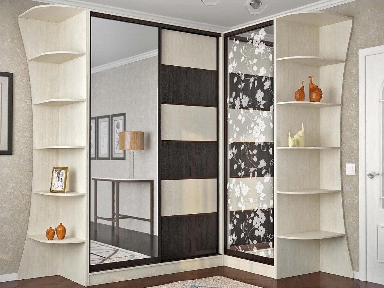 21. Шкаф купе угловой с зеркалом и полочками сбоку