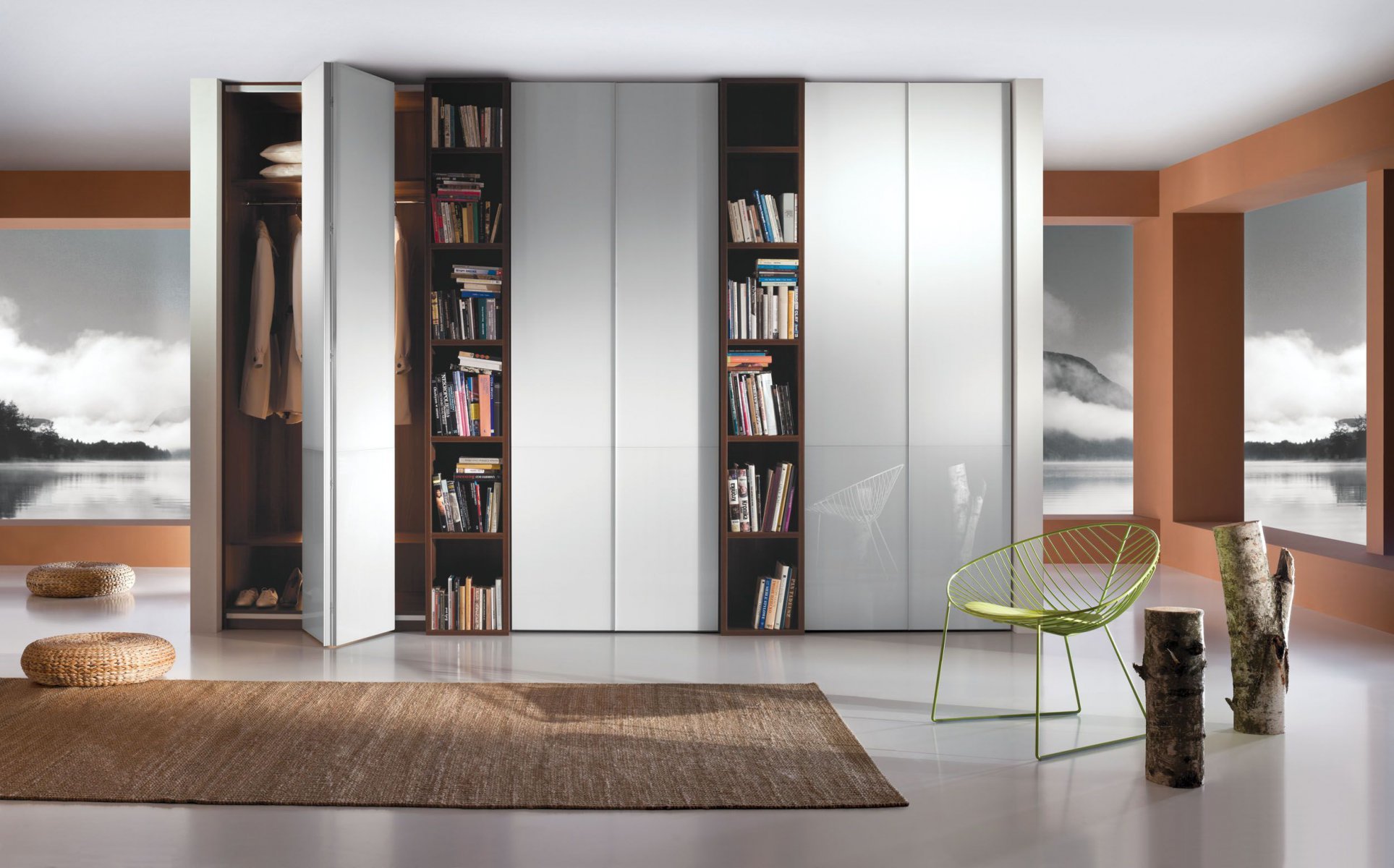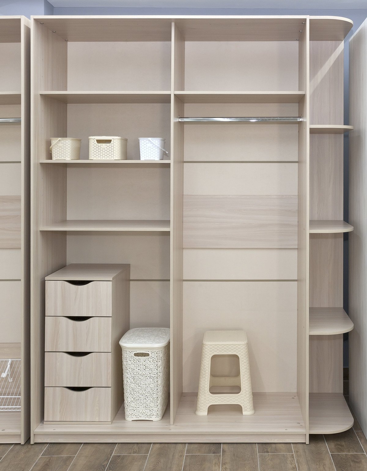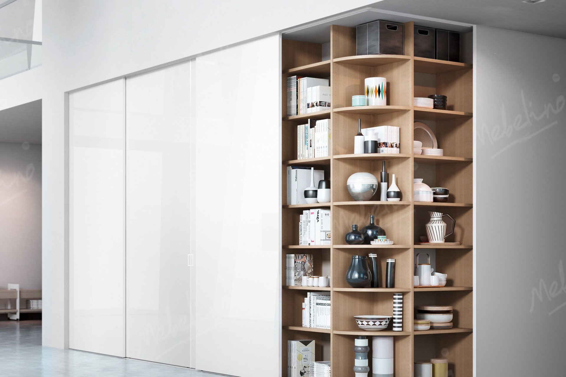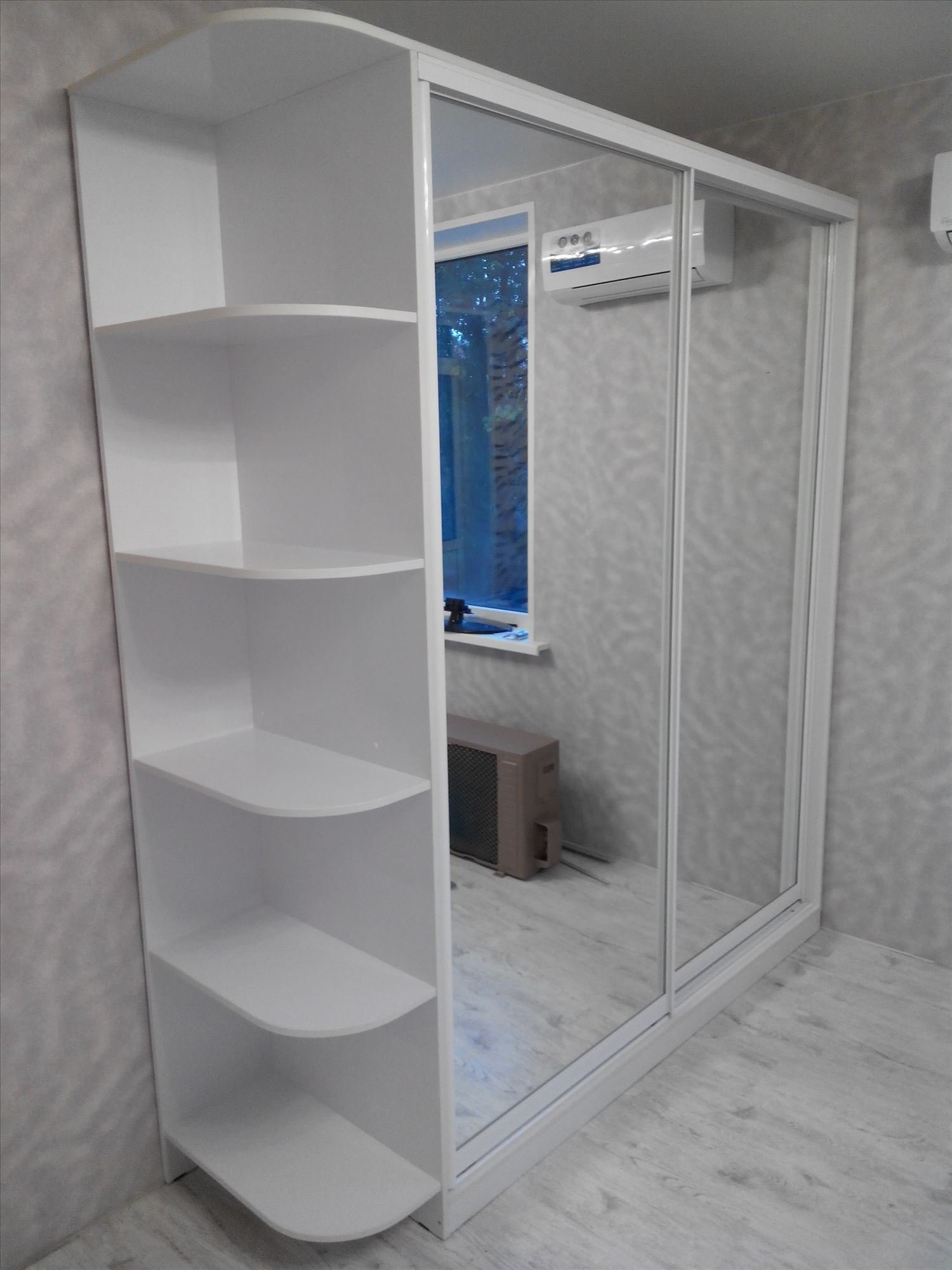 28. Шкаф купе с открытыми полками сбоку белый аристо