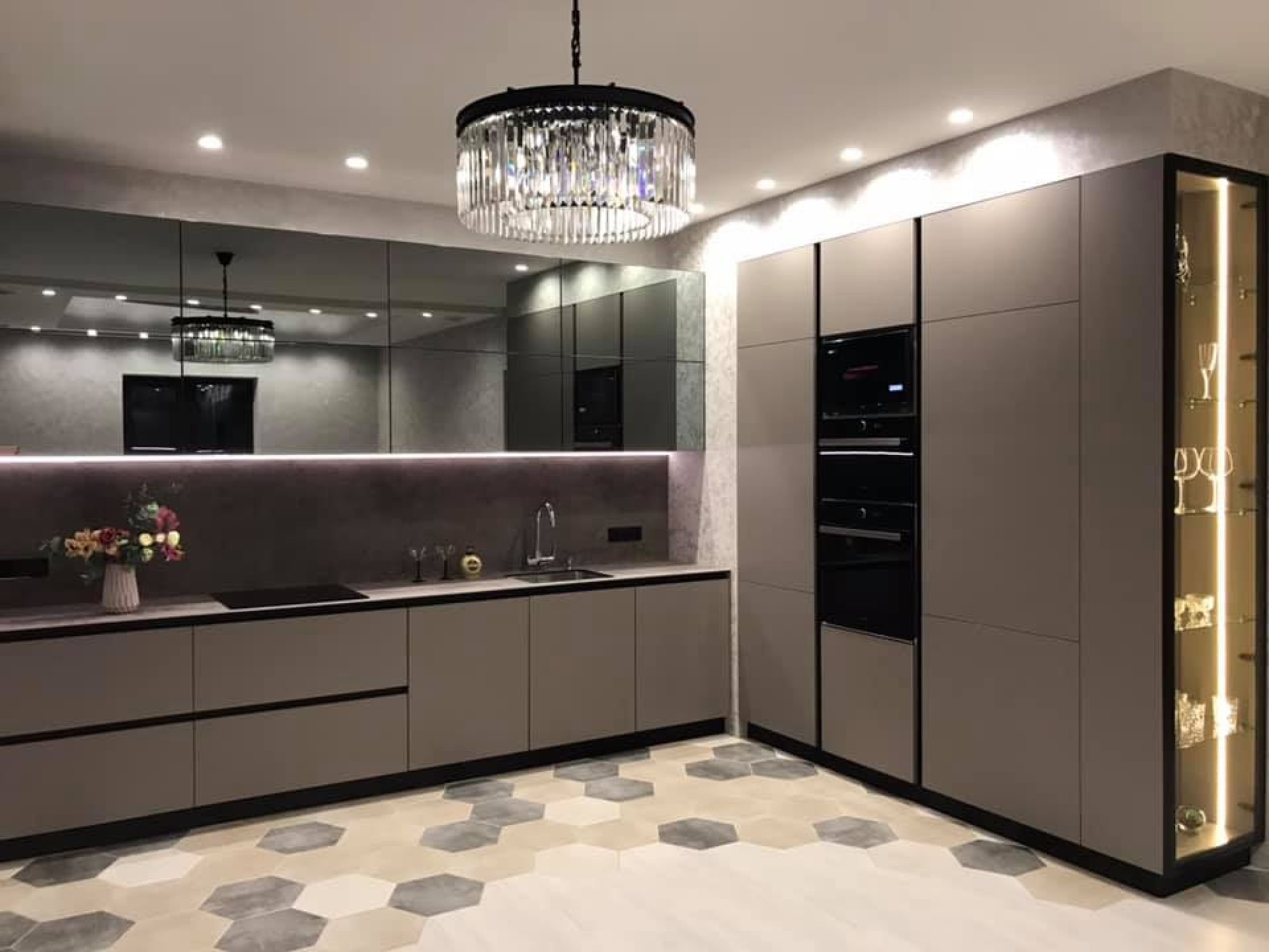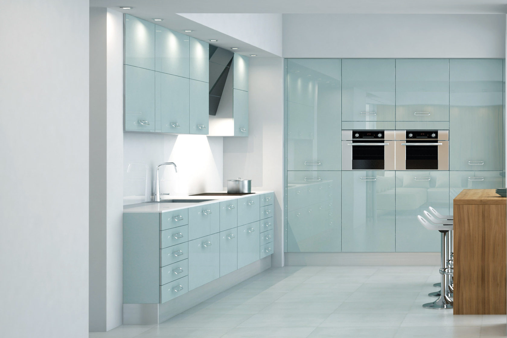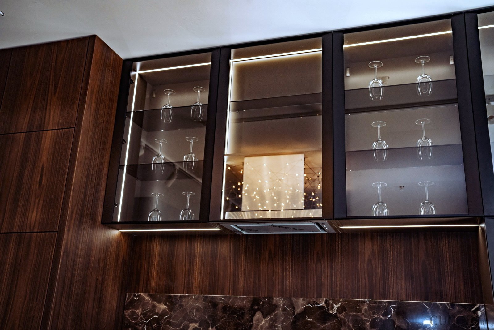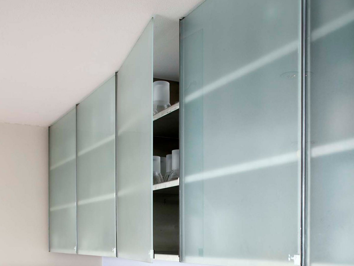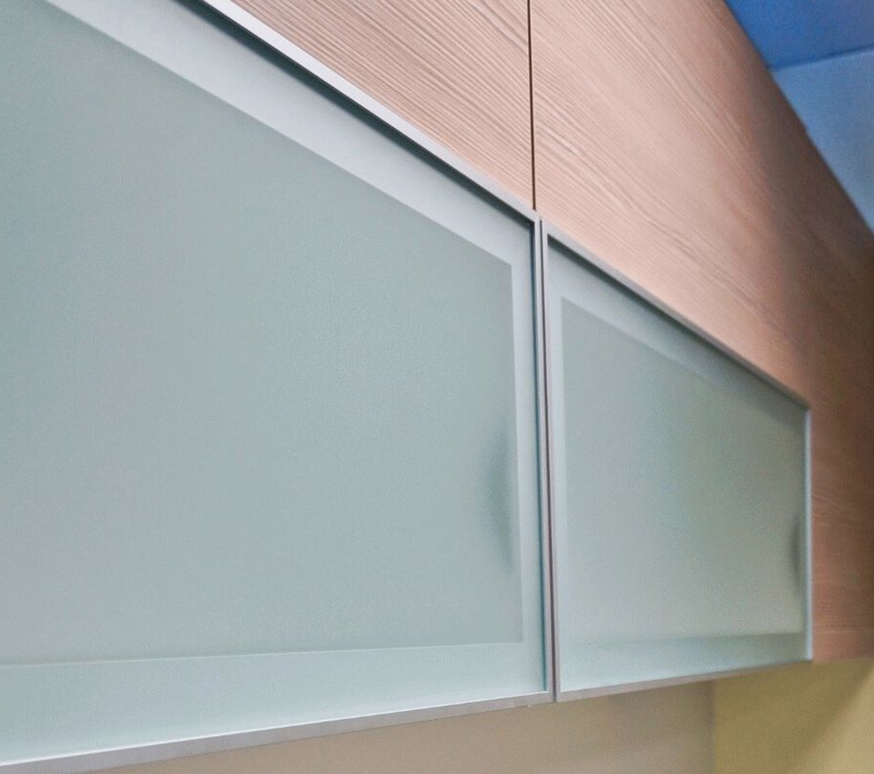 53. Стеклянные фасады для кухни в алюминиевой рамке