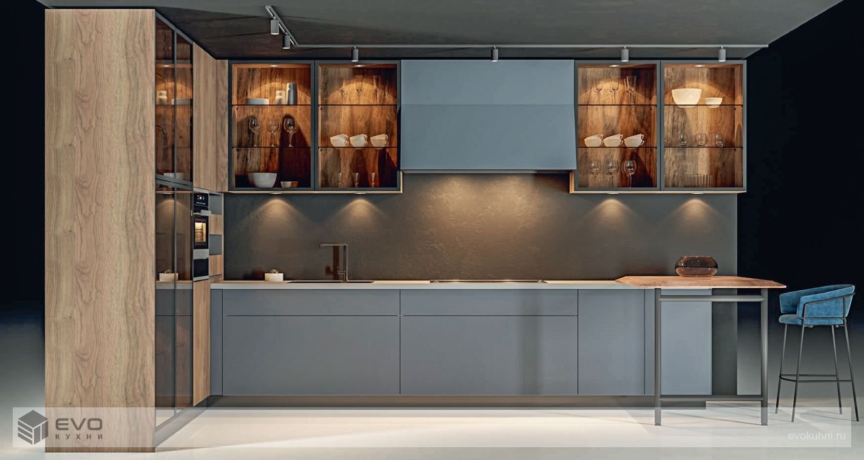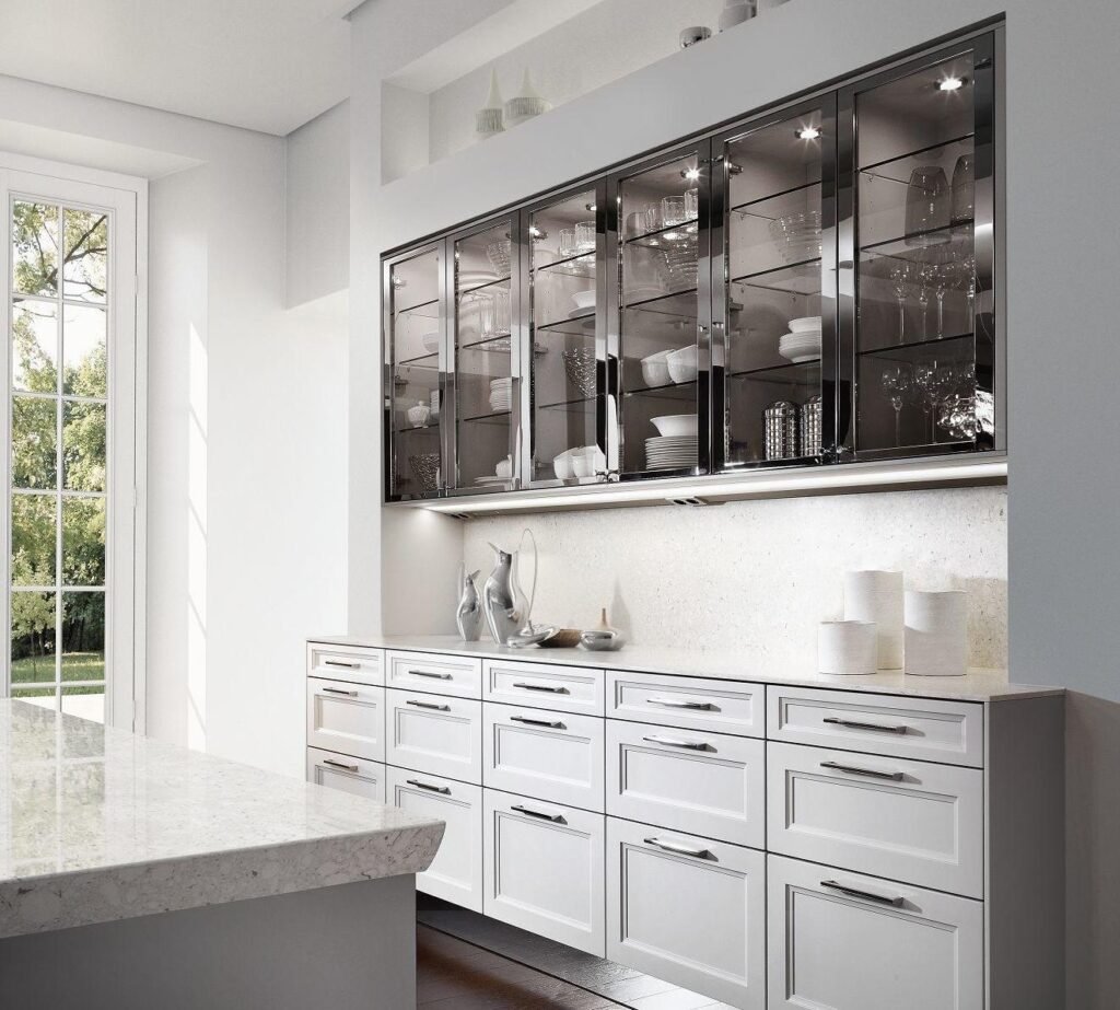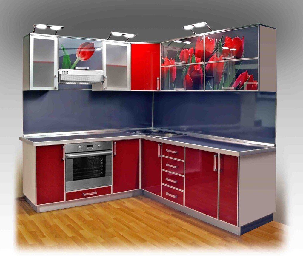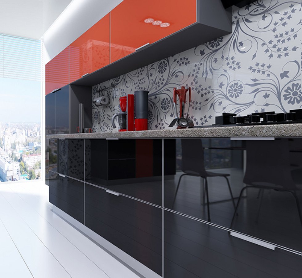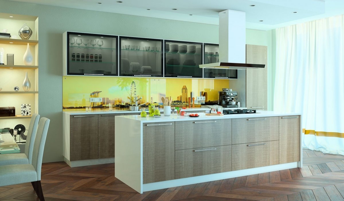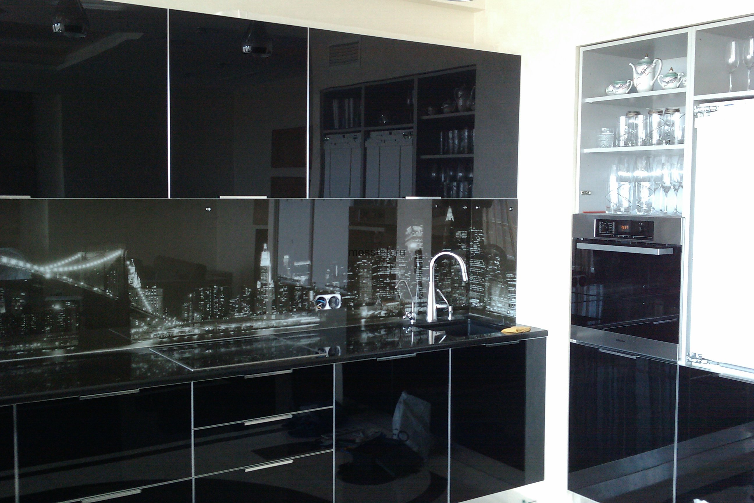53. Стеклянные фасады для кухни в алюминиевой рамке