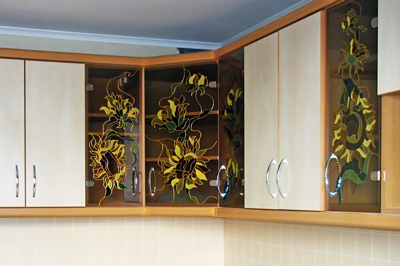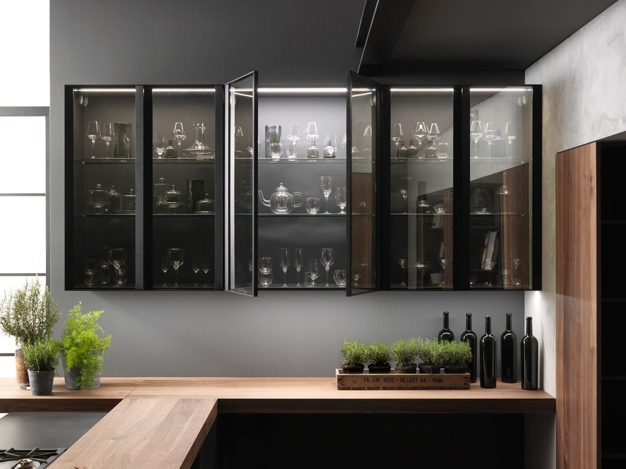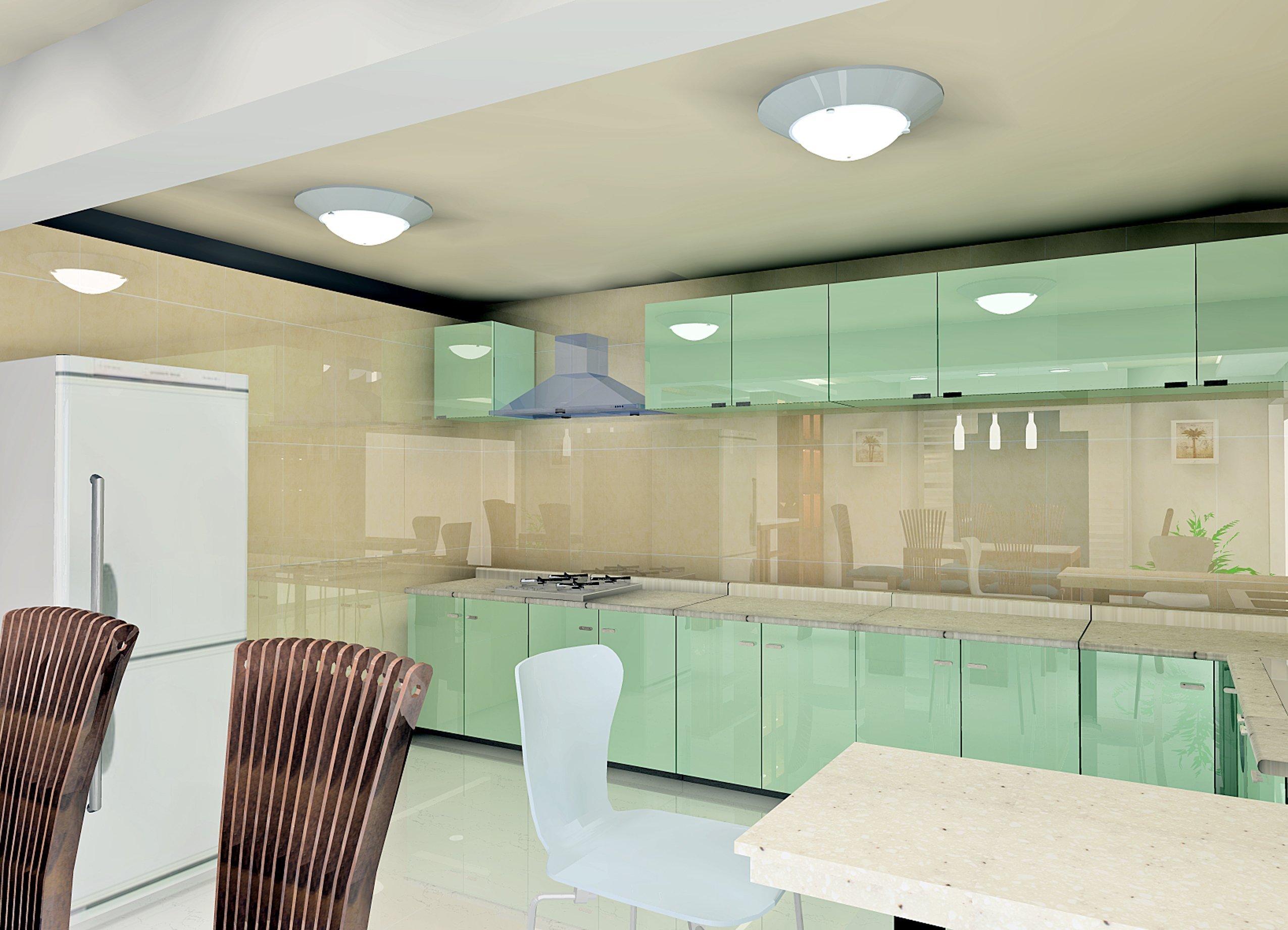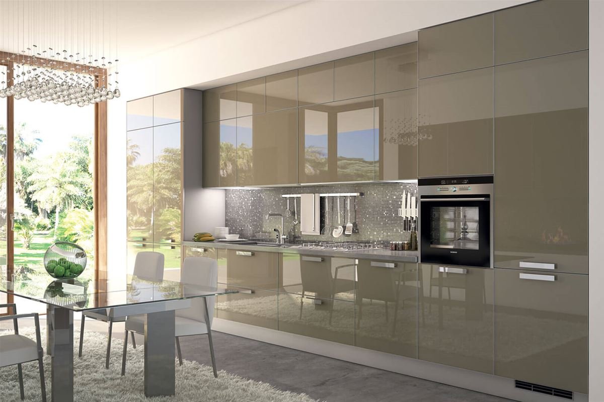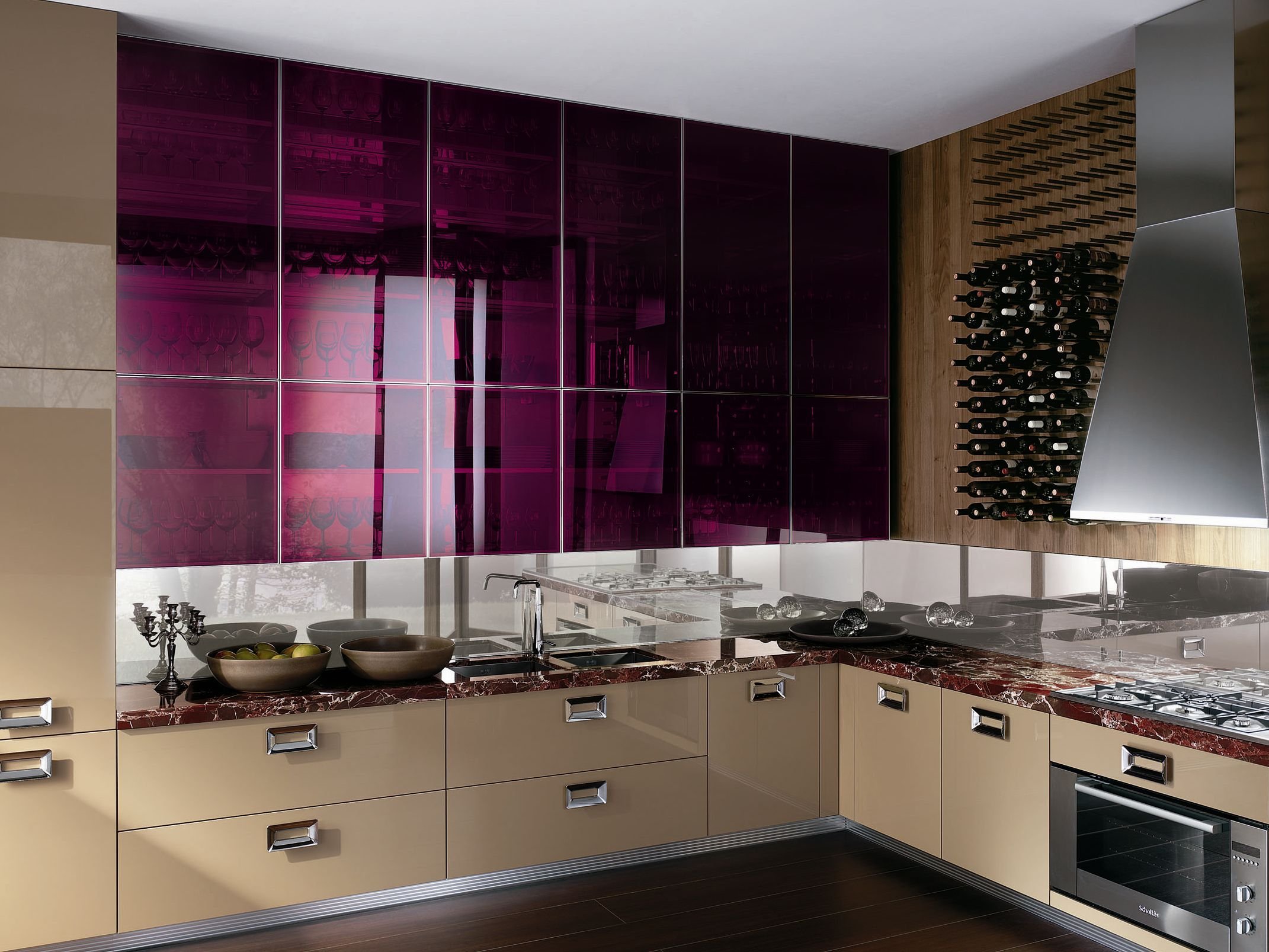 53. Стеклянные фасады для кухни в алюминиевой рамке
