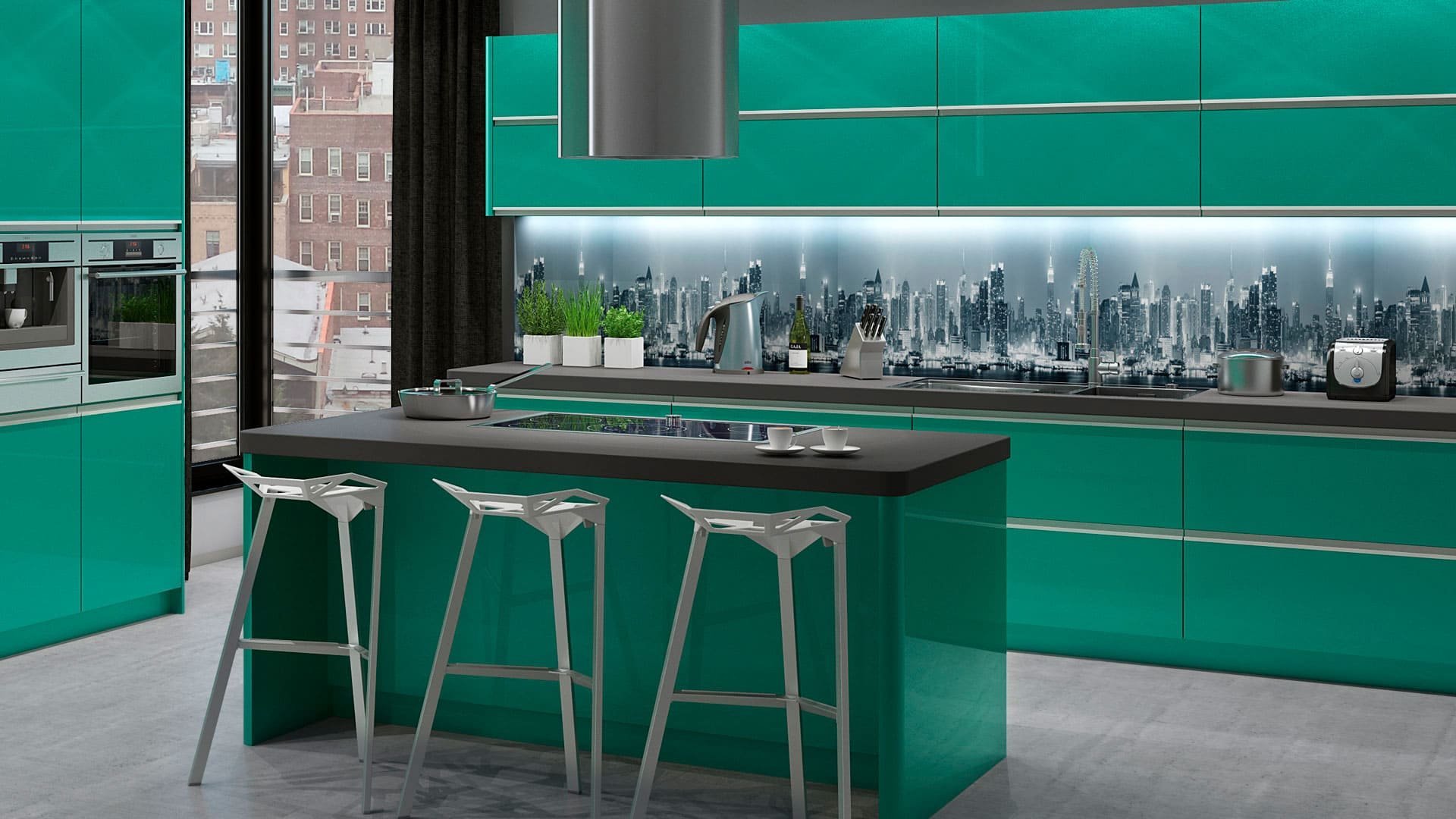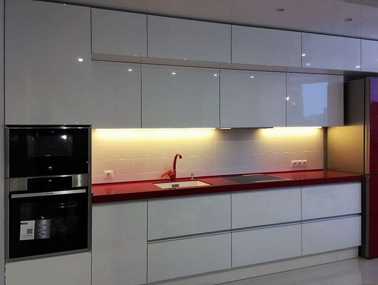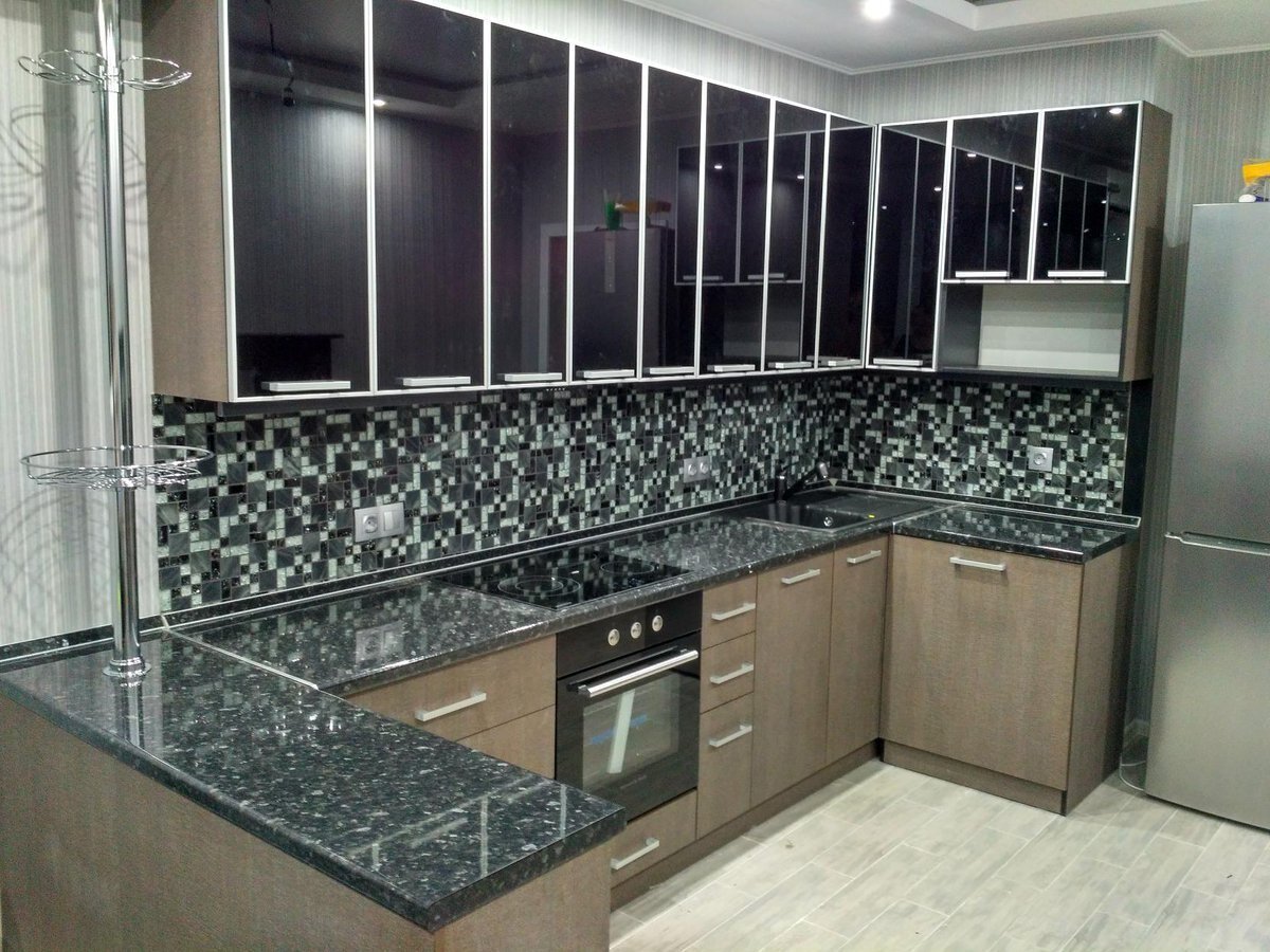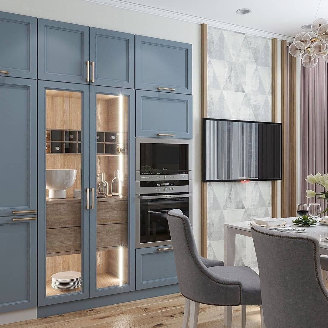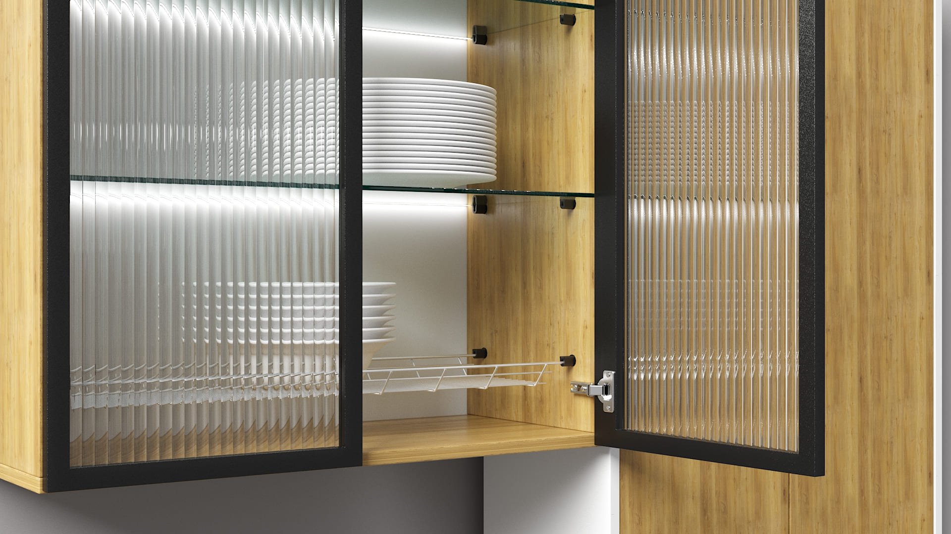 53. Стеклянные фасады для кухни в алюминиевой рамке
