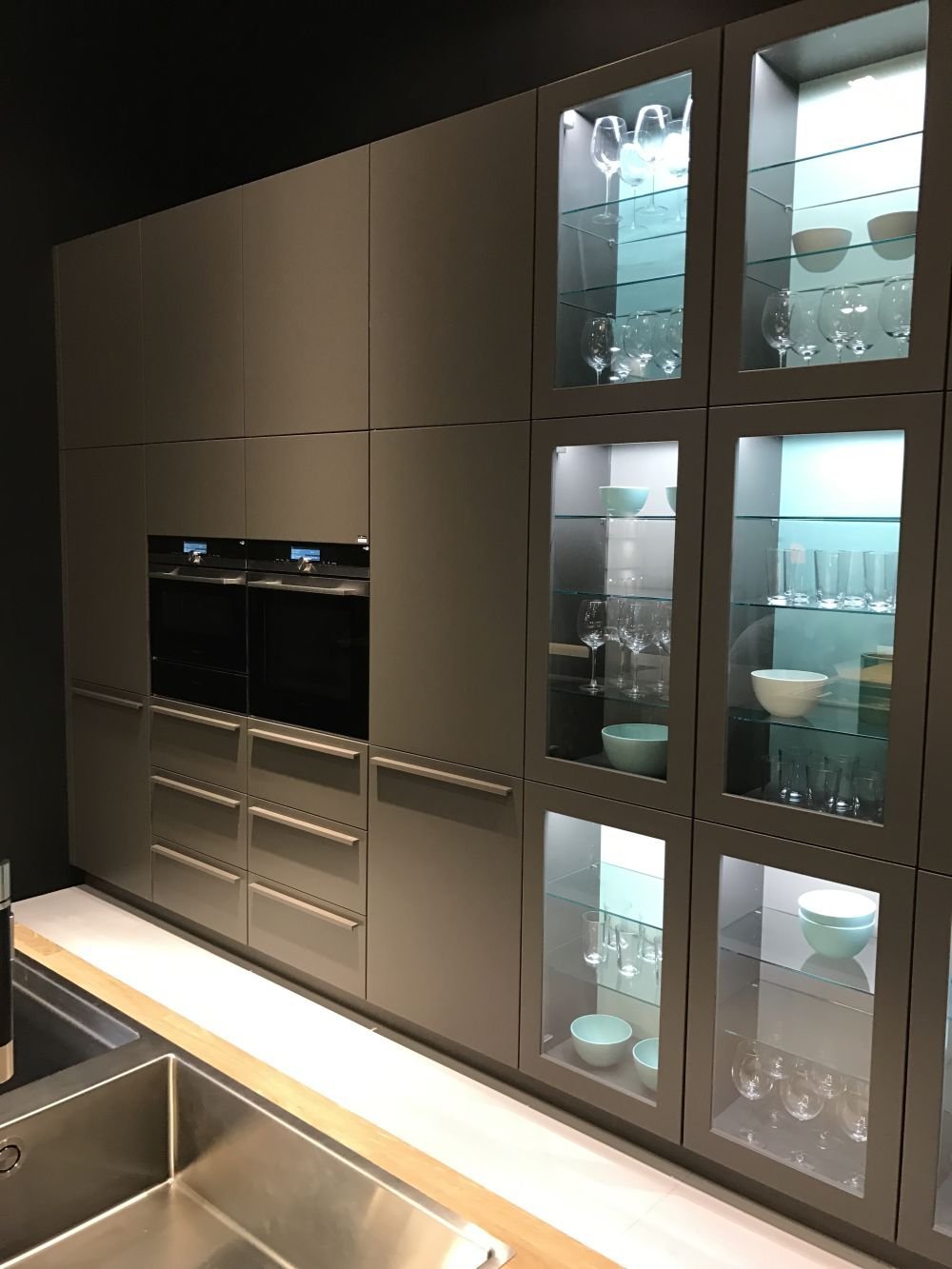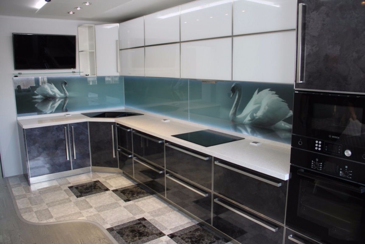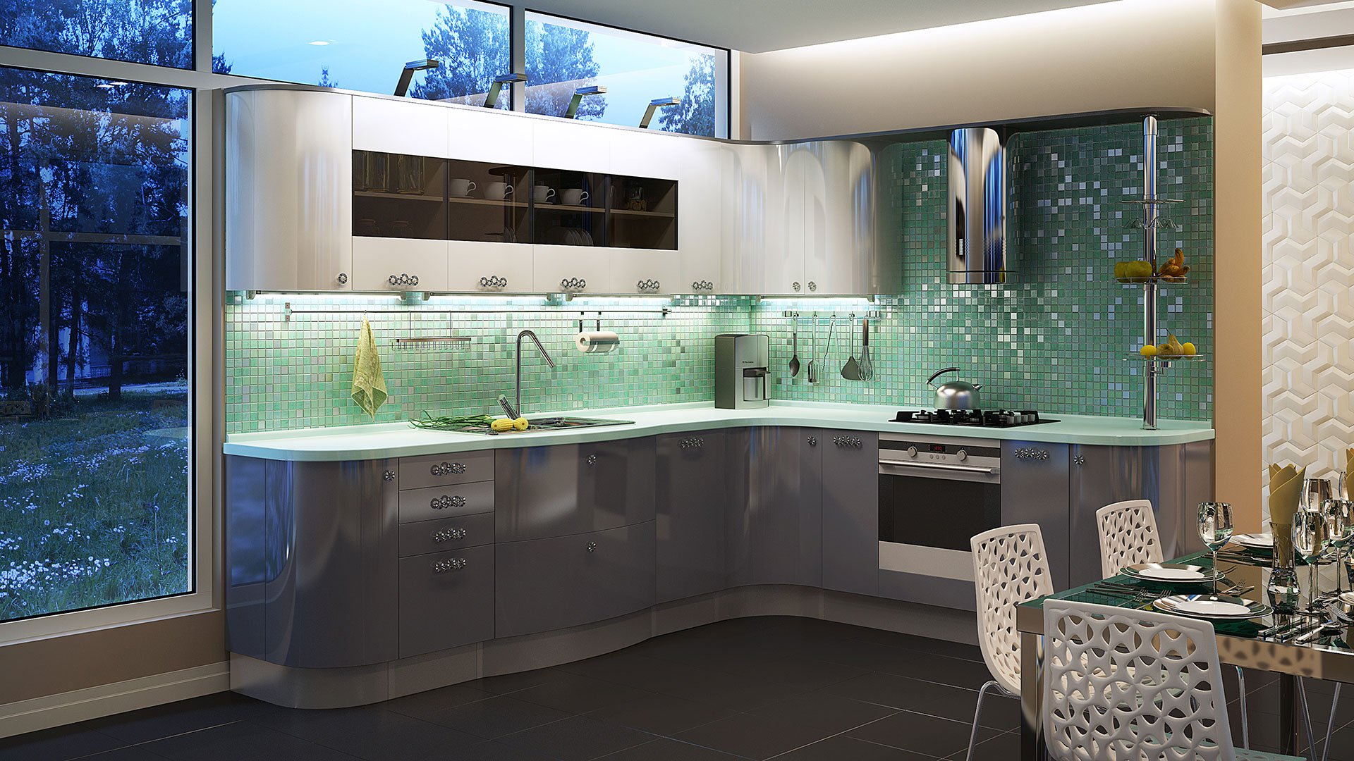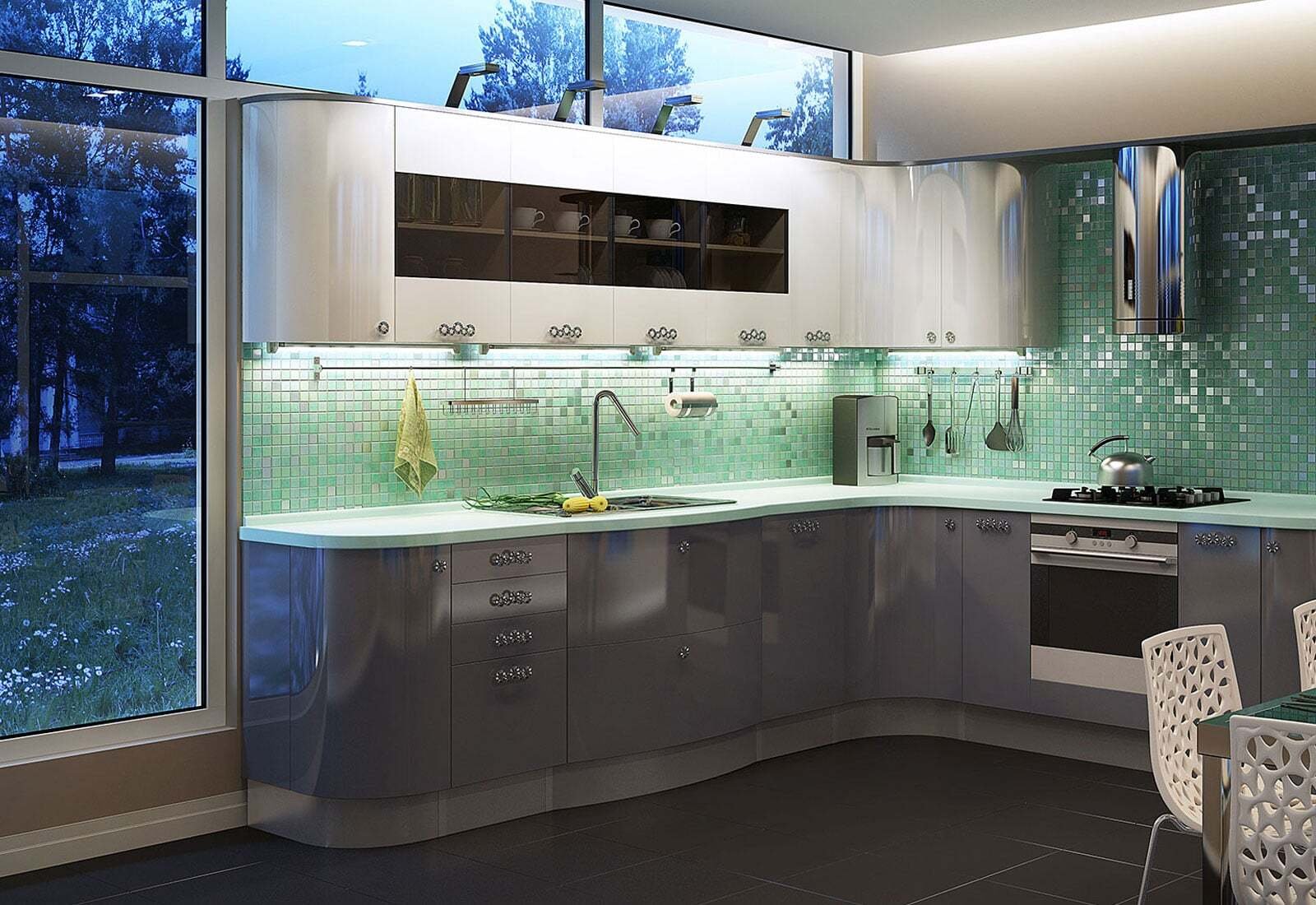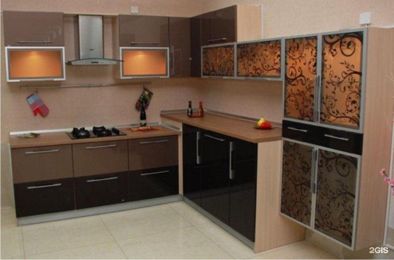 53. Стеклянные фасады для кухни в алюминиевой рамке