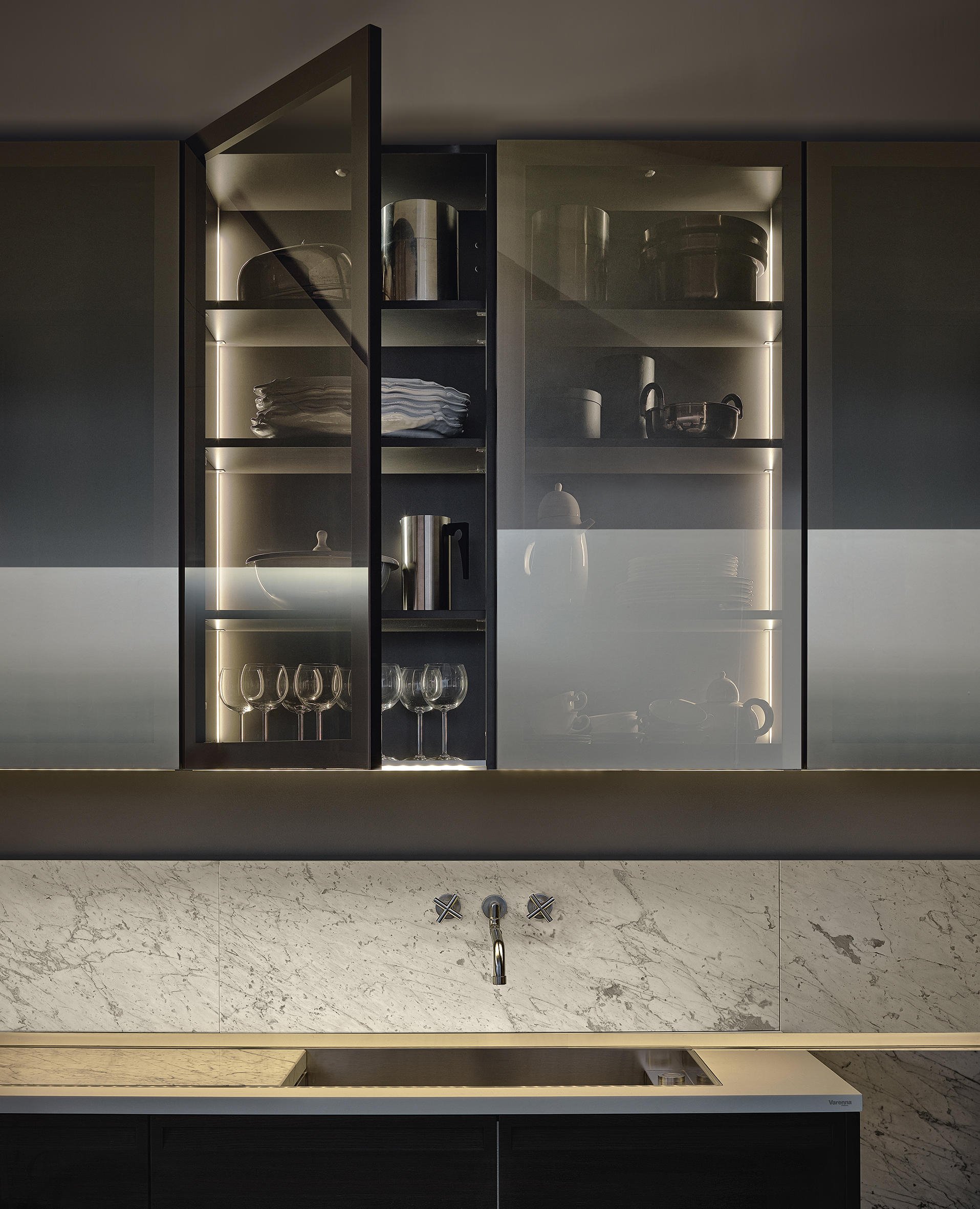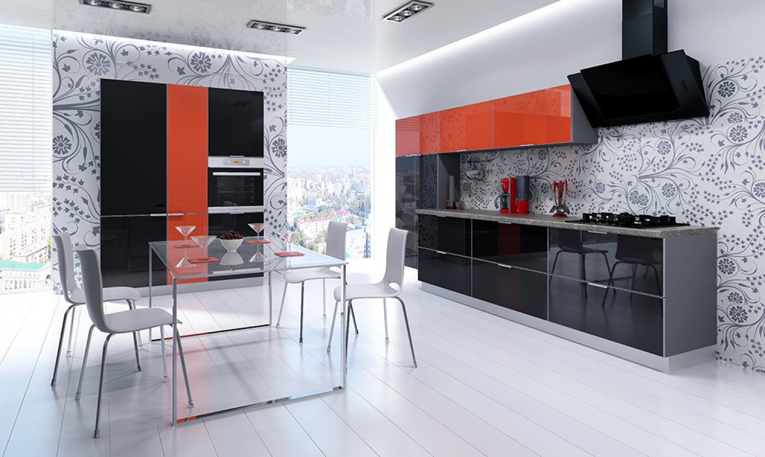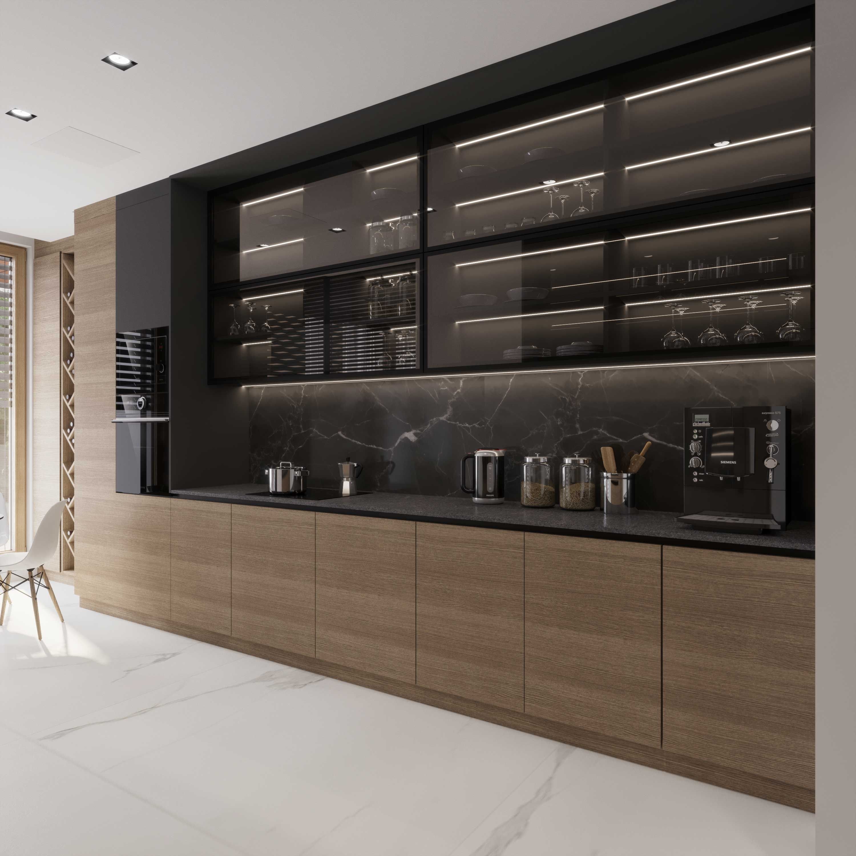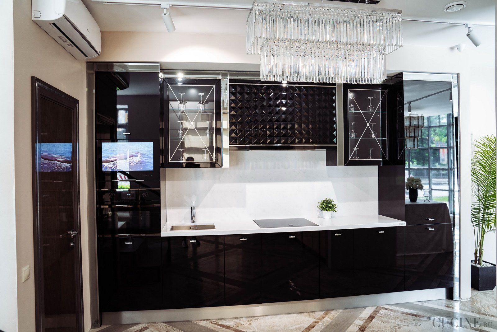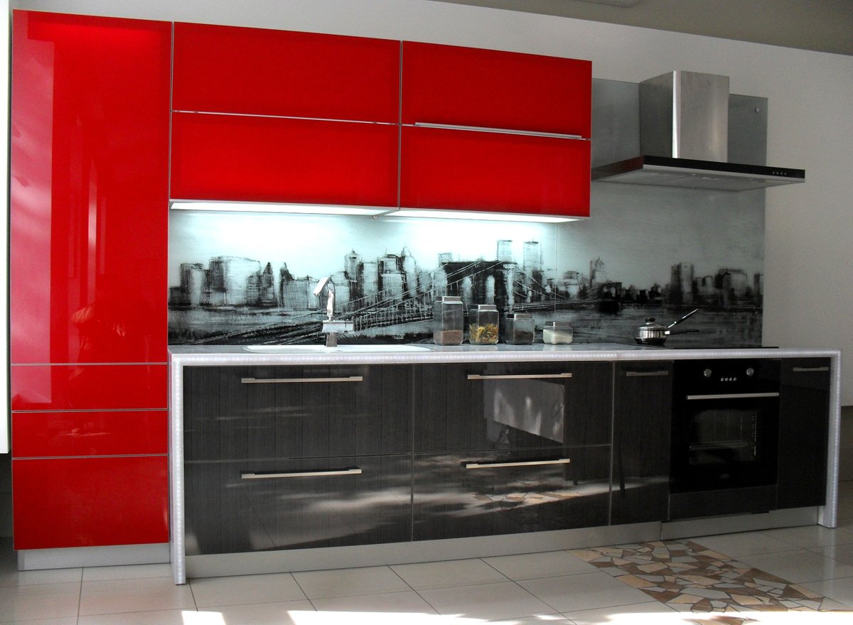 53. Стеклянные фасады для кухни в алюминиевой рамке