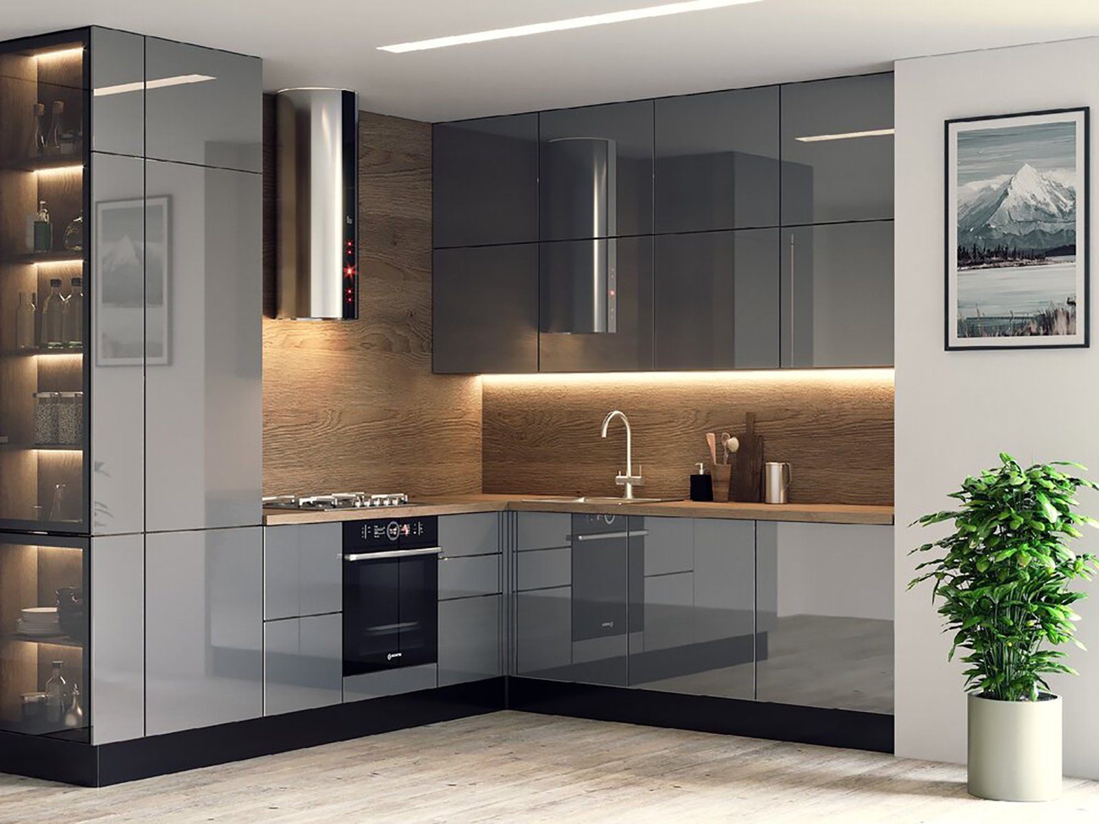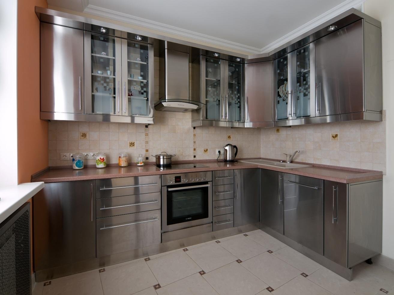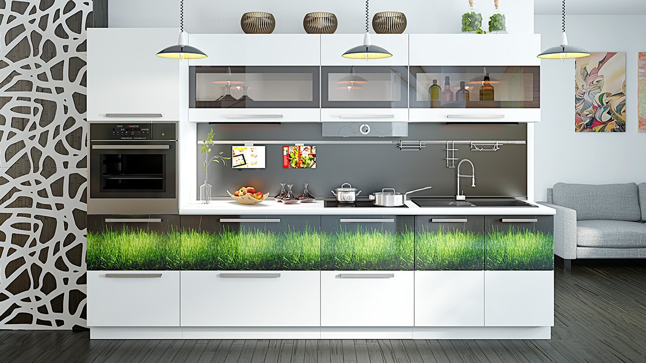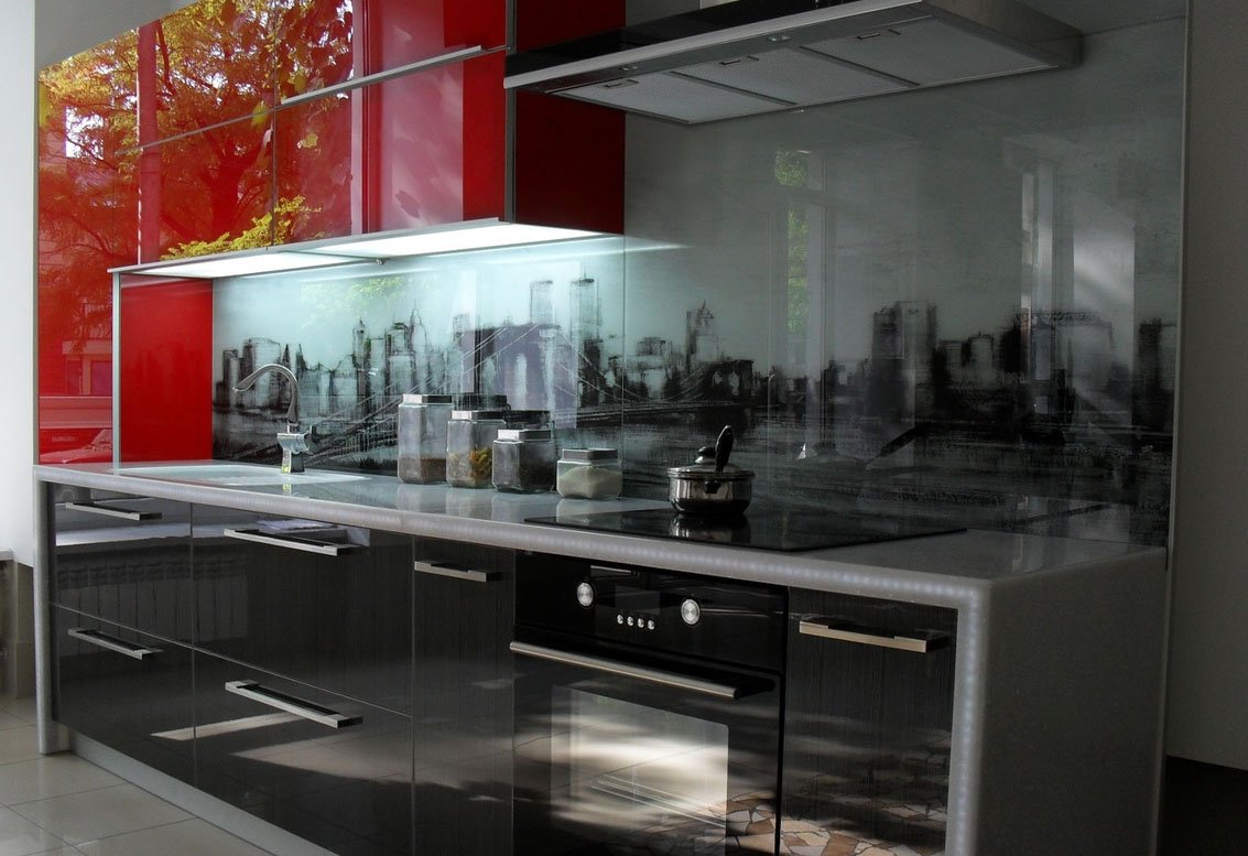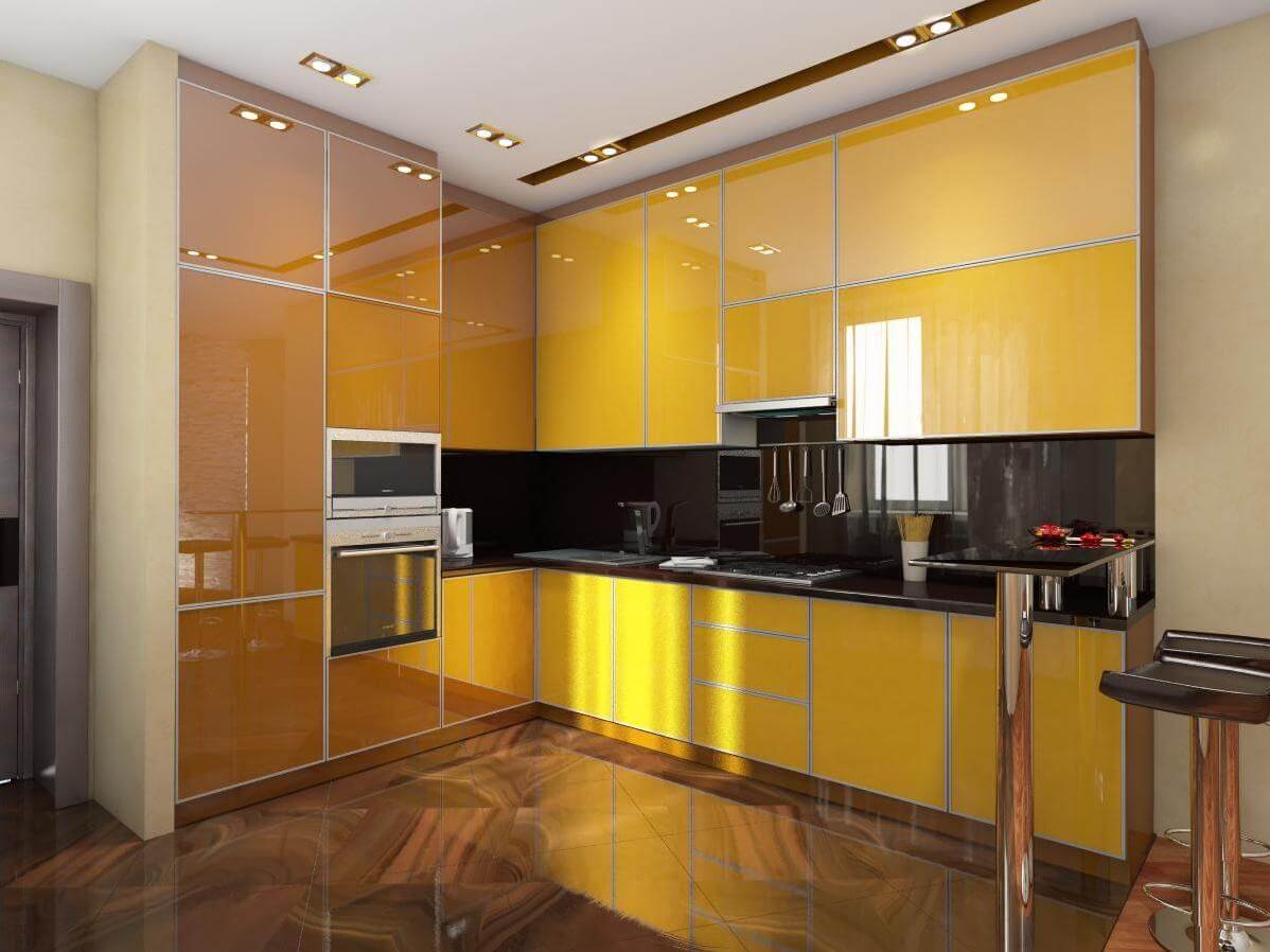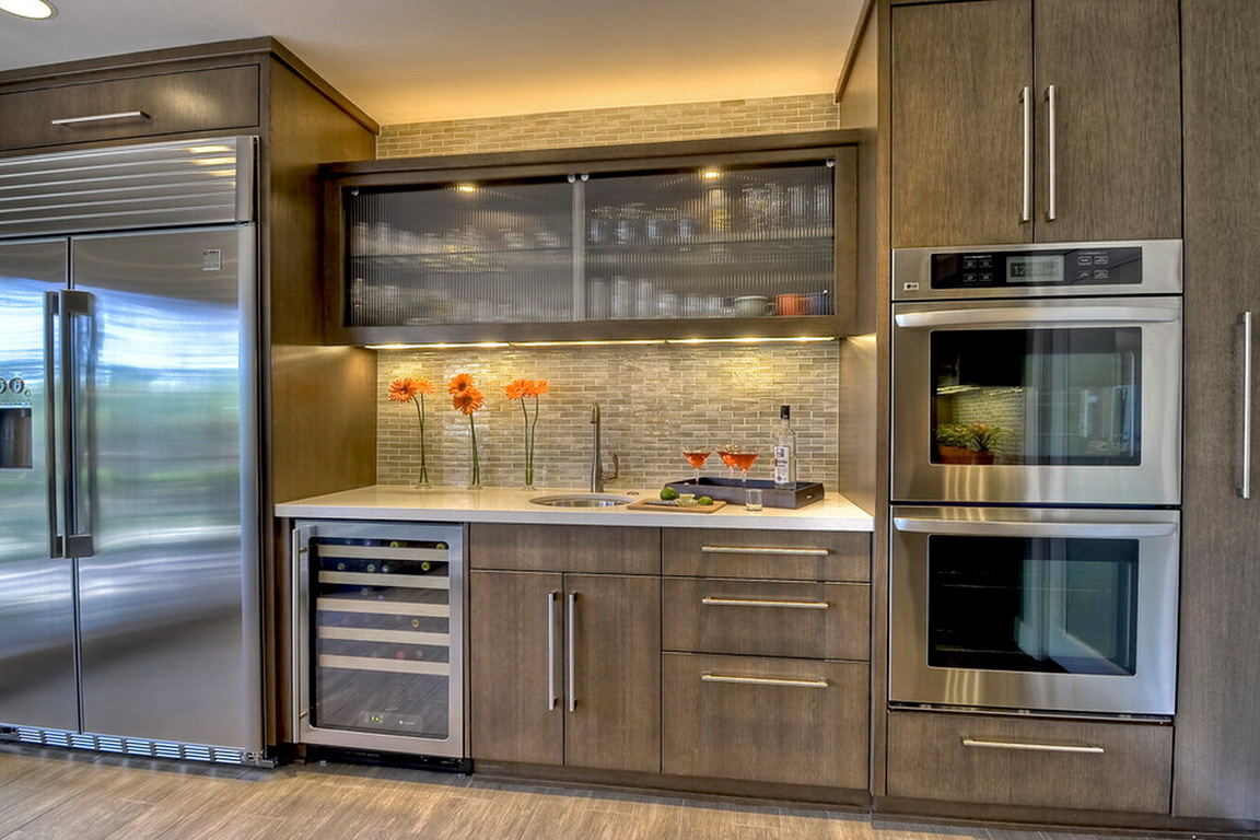 53. Стеклянные фасады для кухни в алюминиевой рамке