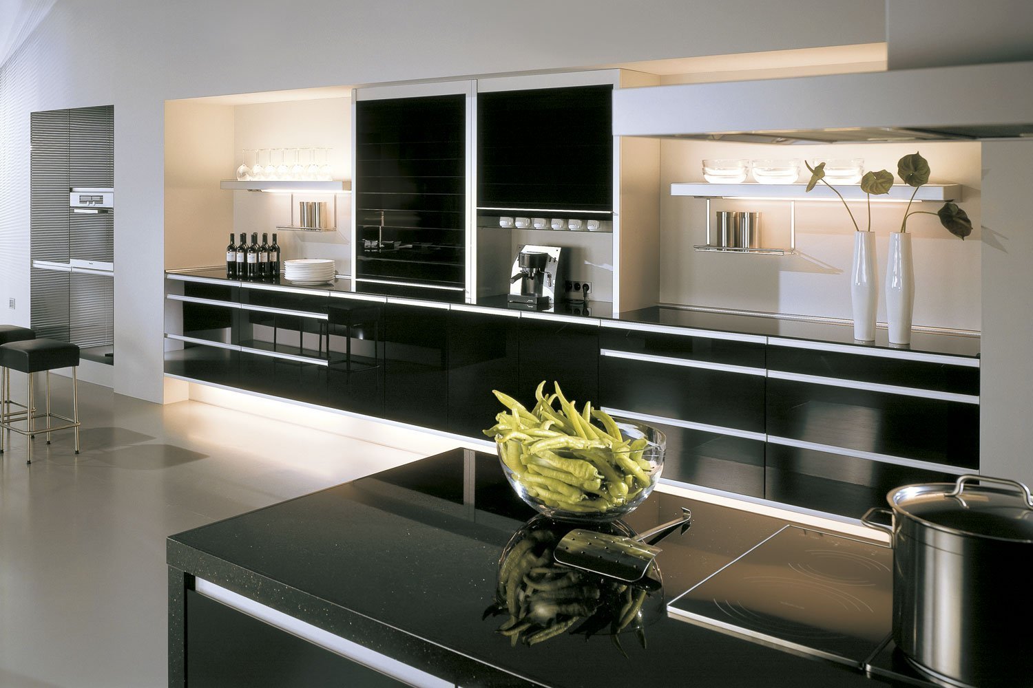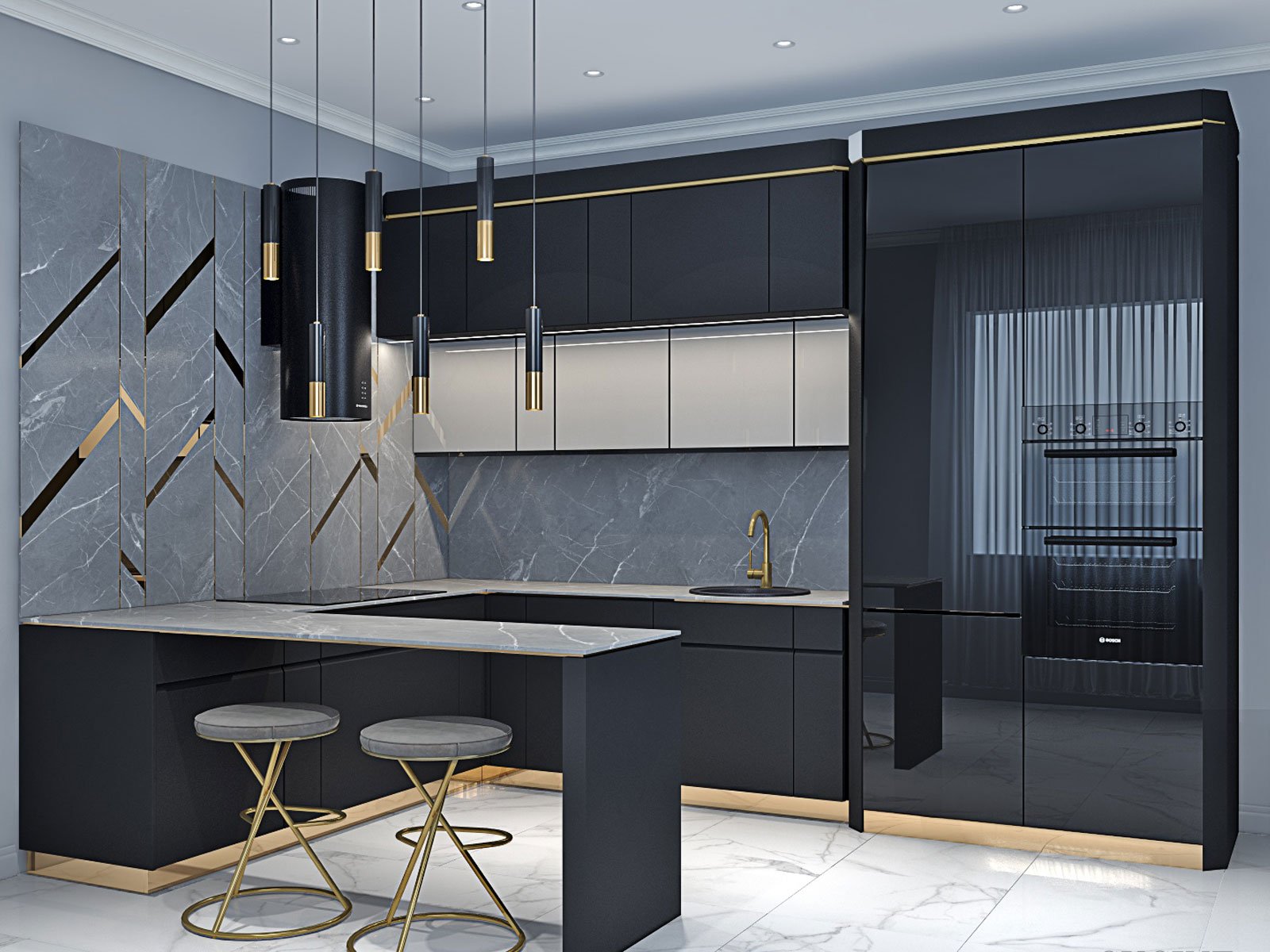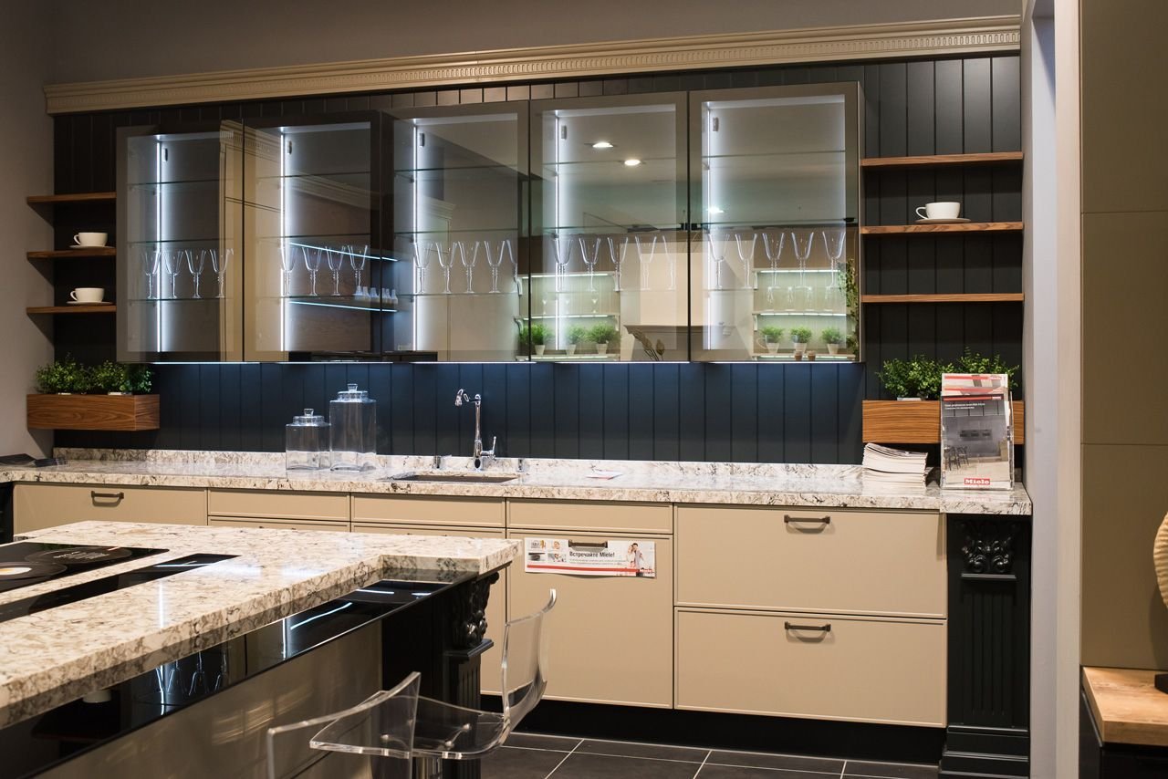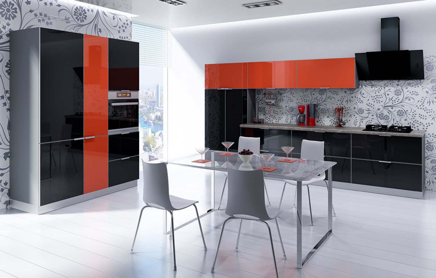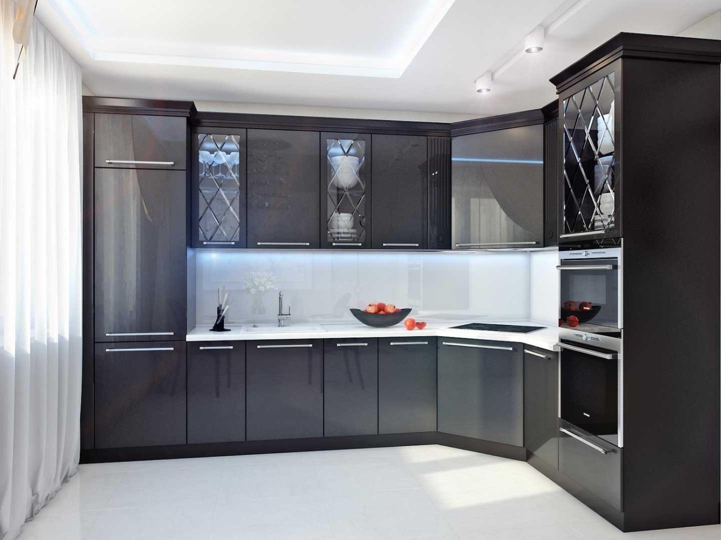53. Стеклянные фасады для кухни в алюминиевой рамке