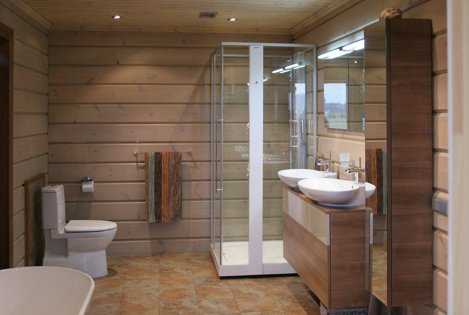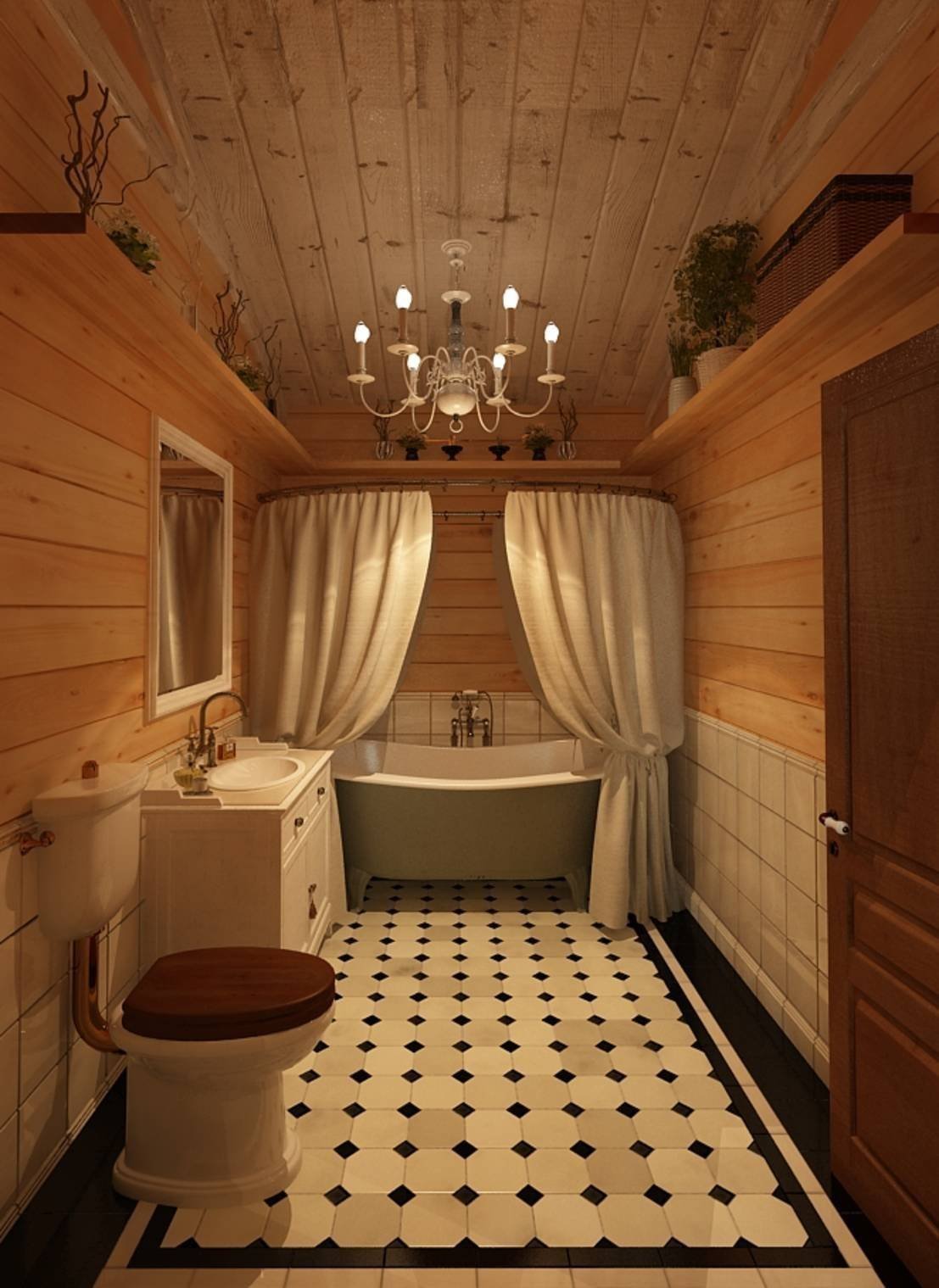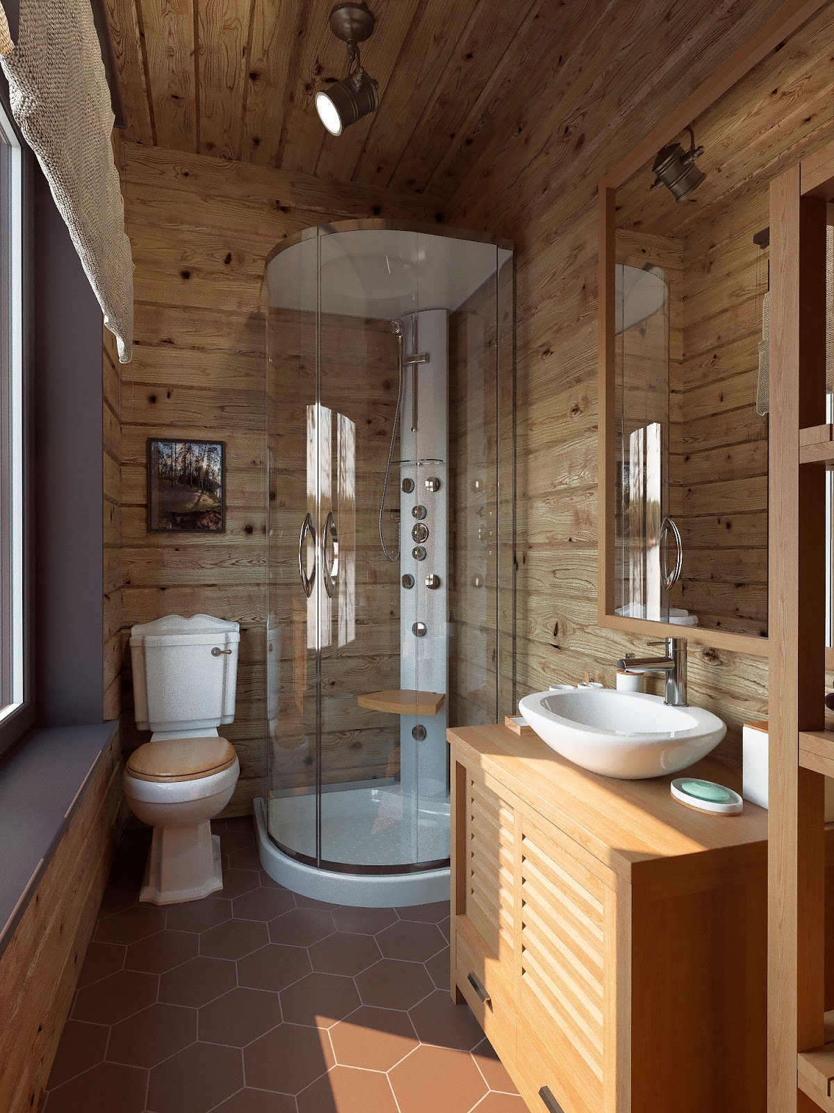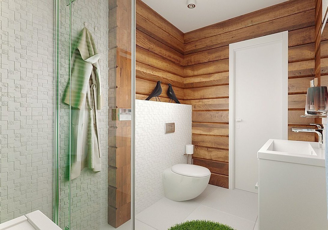 31. Ванная комната в скандинавском стиле в деревянном доме