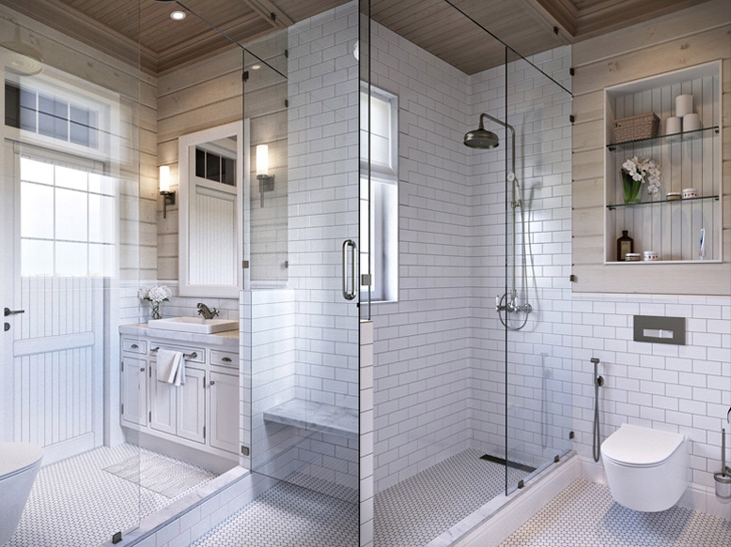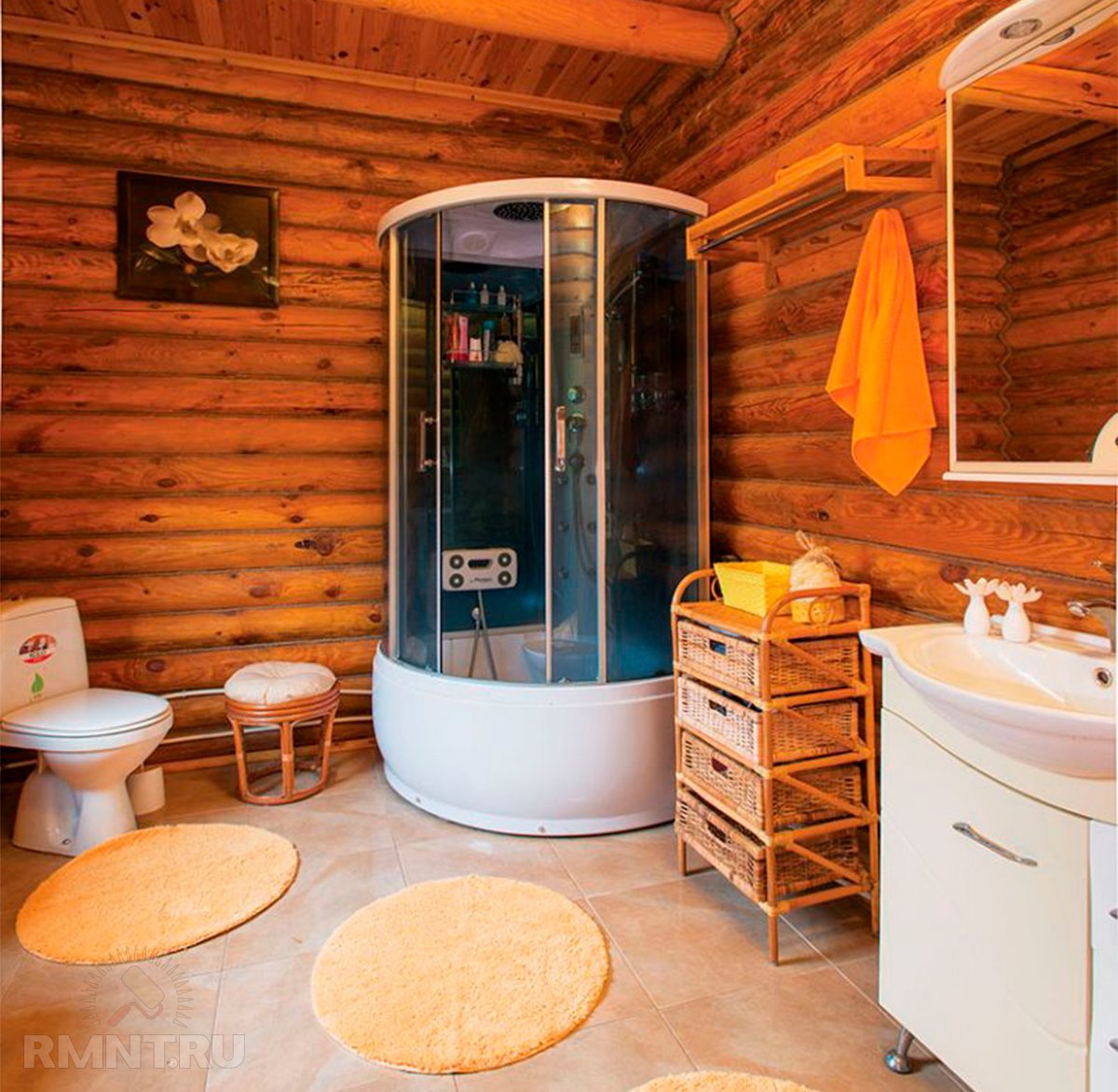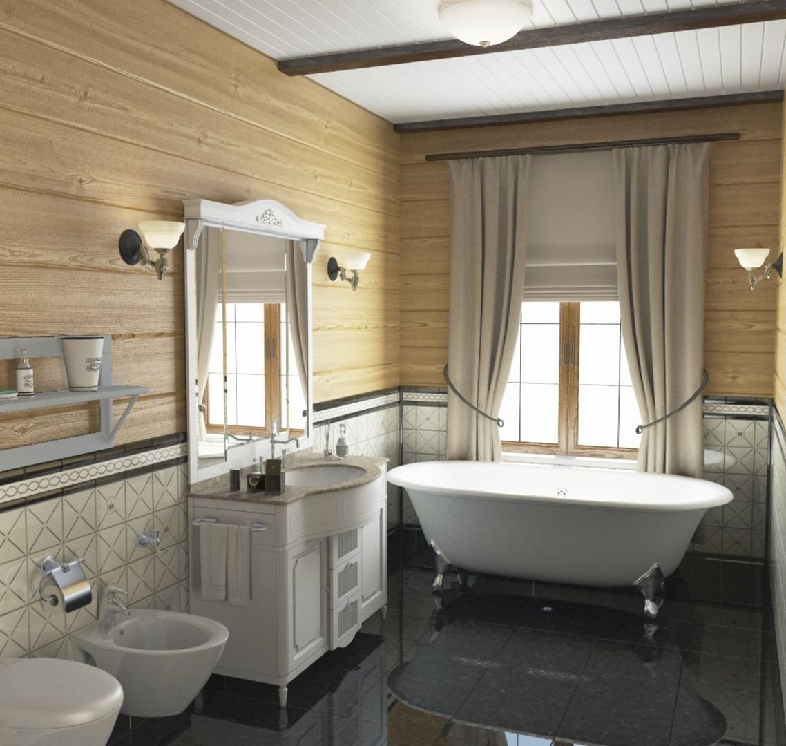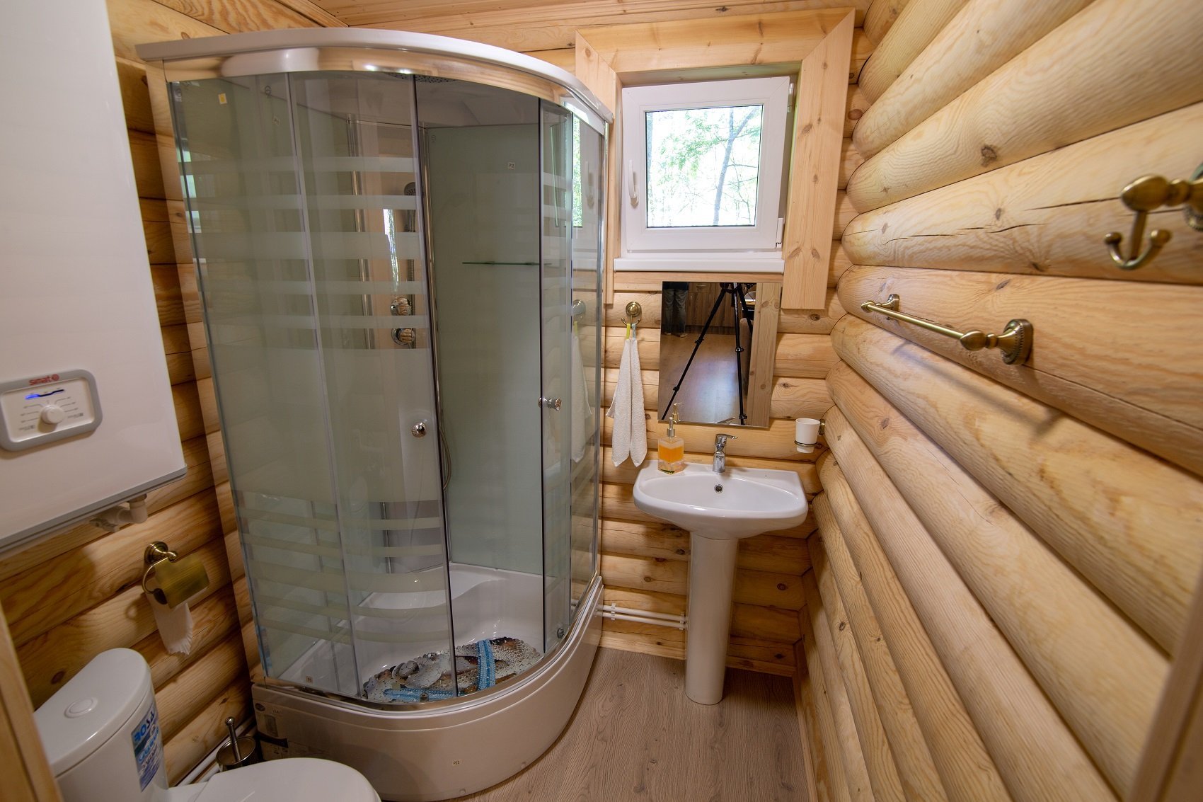 31. Ванная комната в скандинавском стиле в деревянном доме