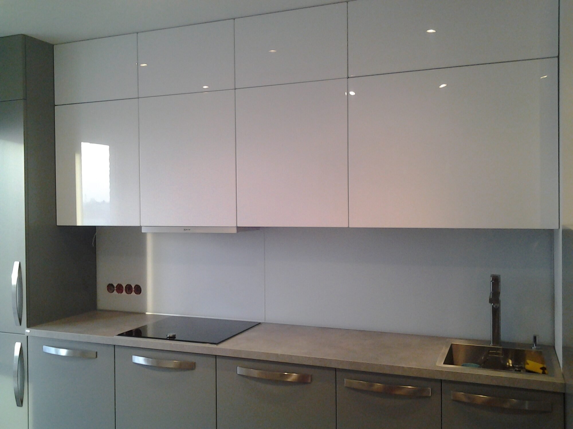 42. Стеклянный фартук для белой кухни