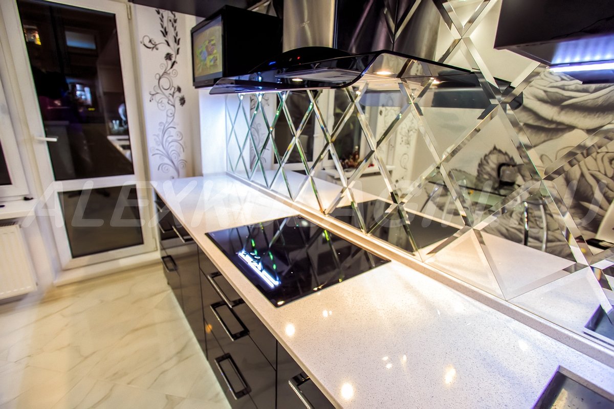 61. Зеркальный фартук для кухни