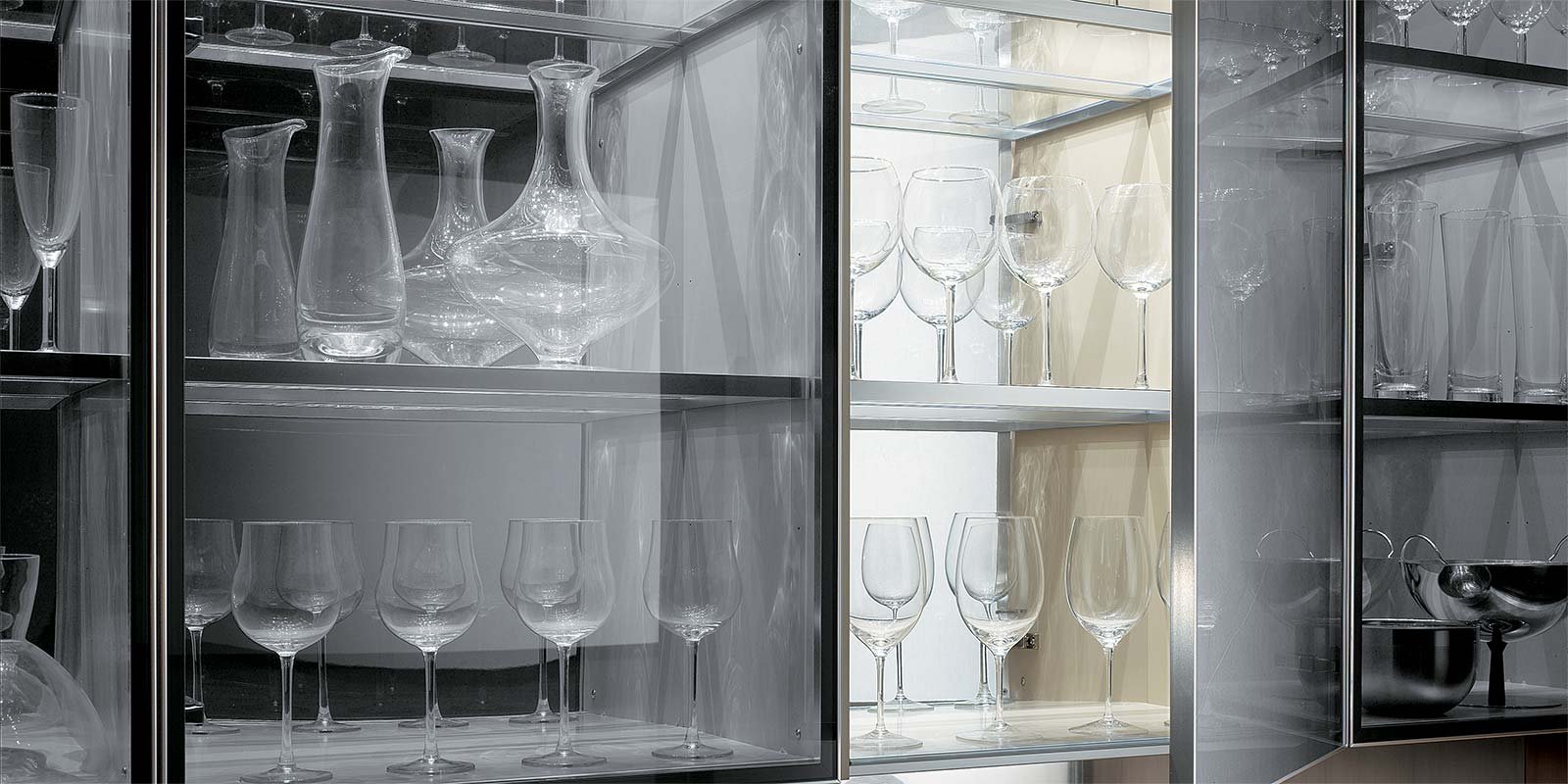 16. Стеклянные шкафы на кухне
