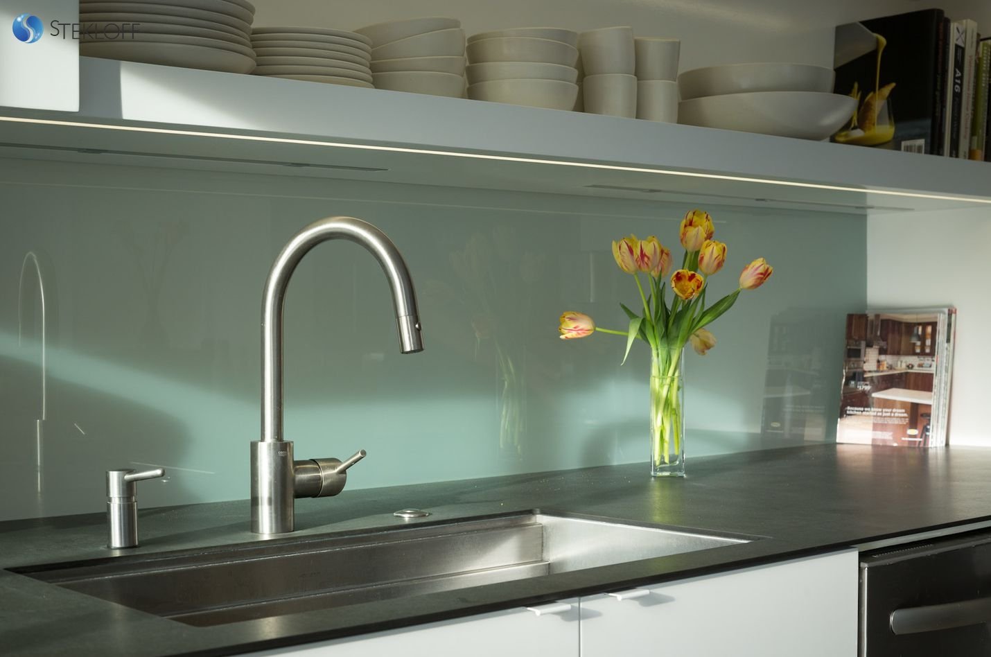 19. Стеклянный кухонный фартук
