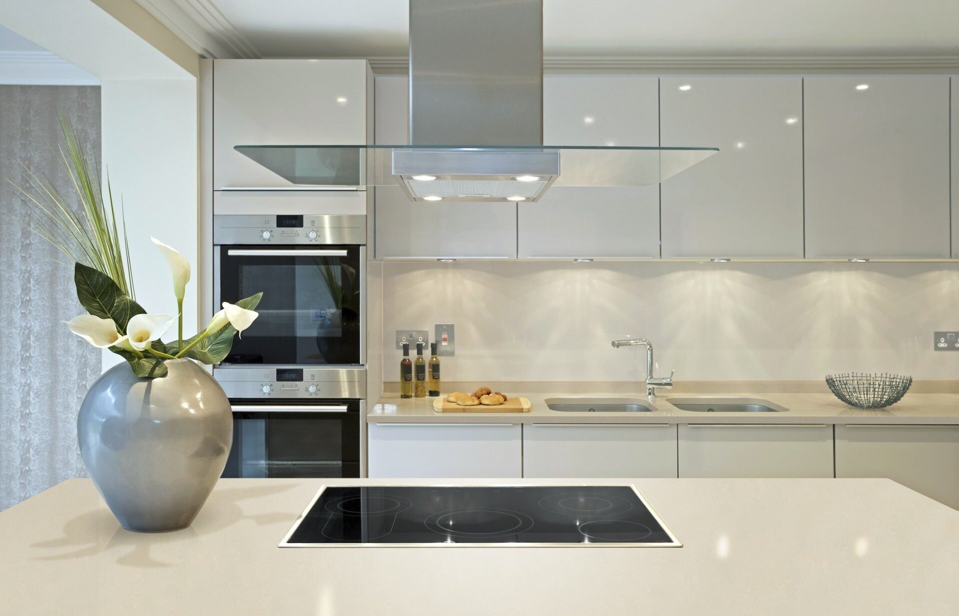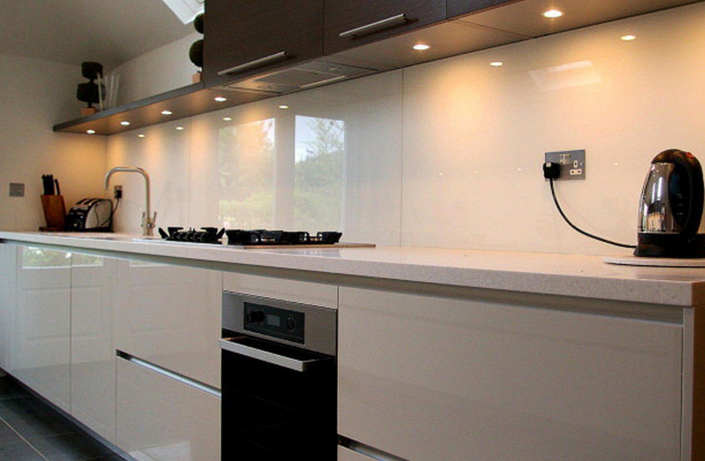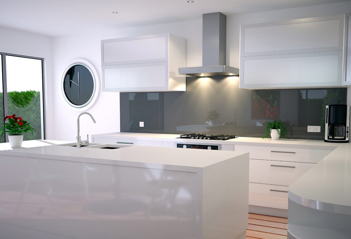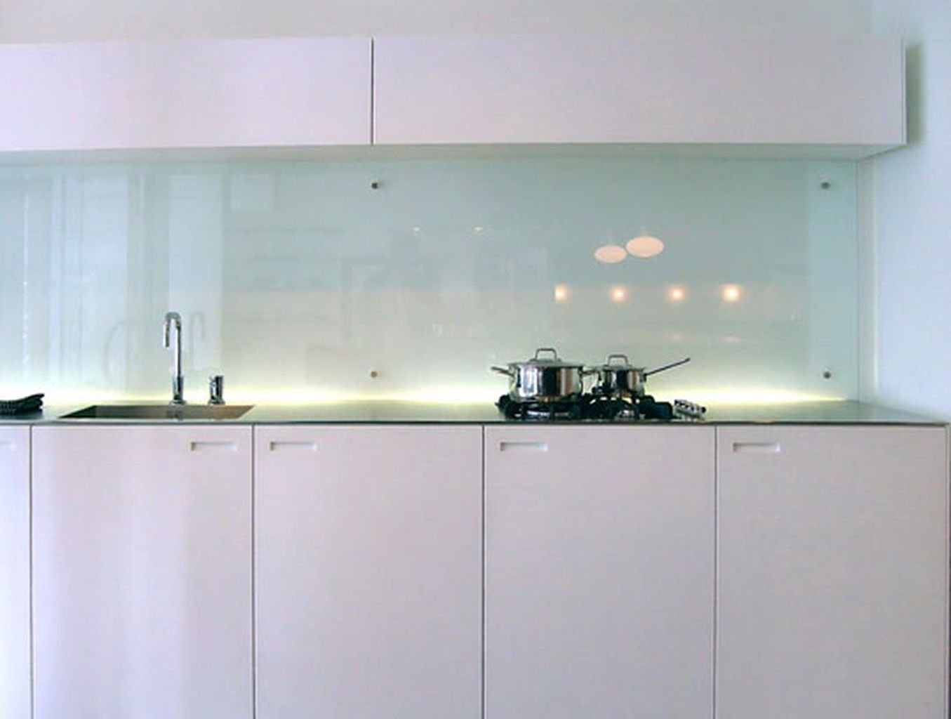 18. Стеклянный фартук для белой кухни