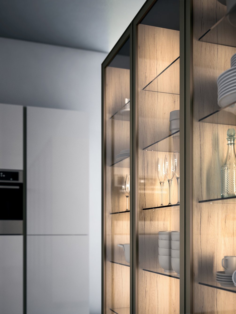 72. Кухня со стеклянными фасадами