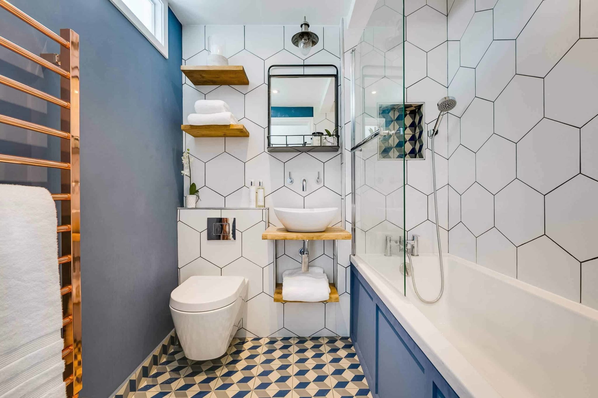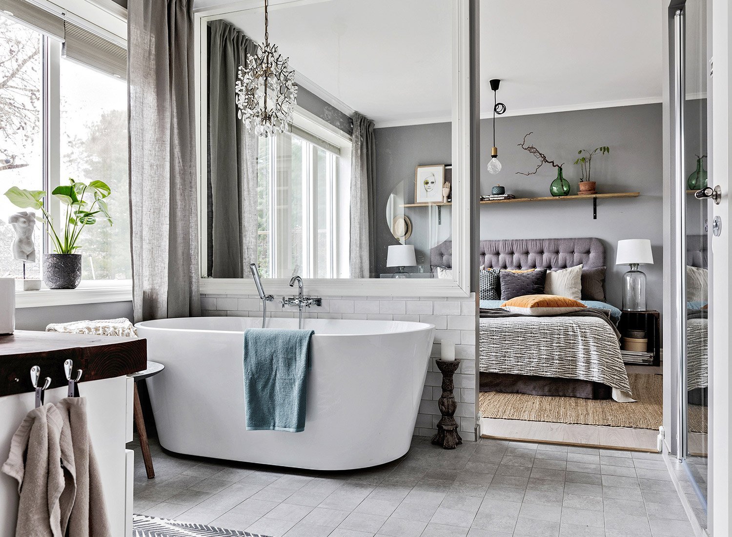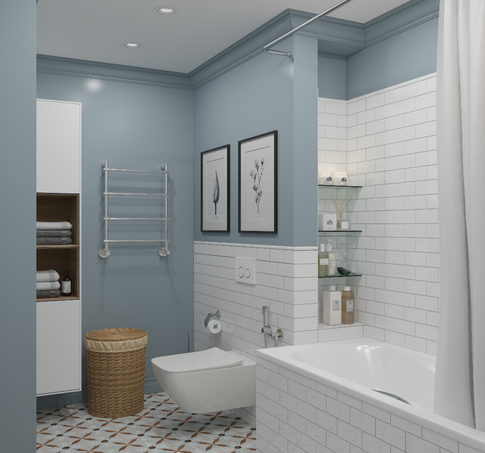 47. Ванная в серо голубых тонах в скандинавском стиле